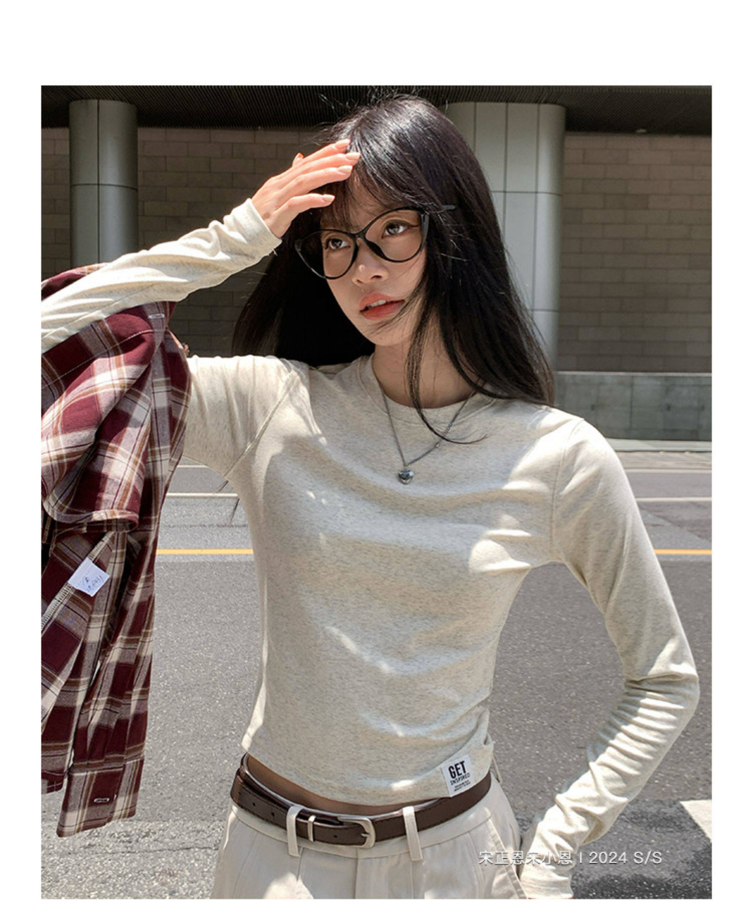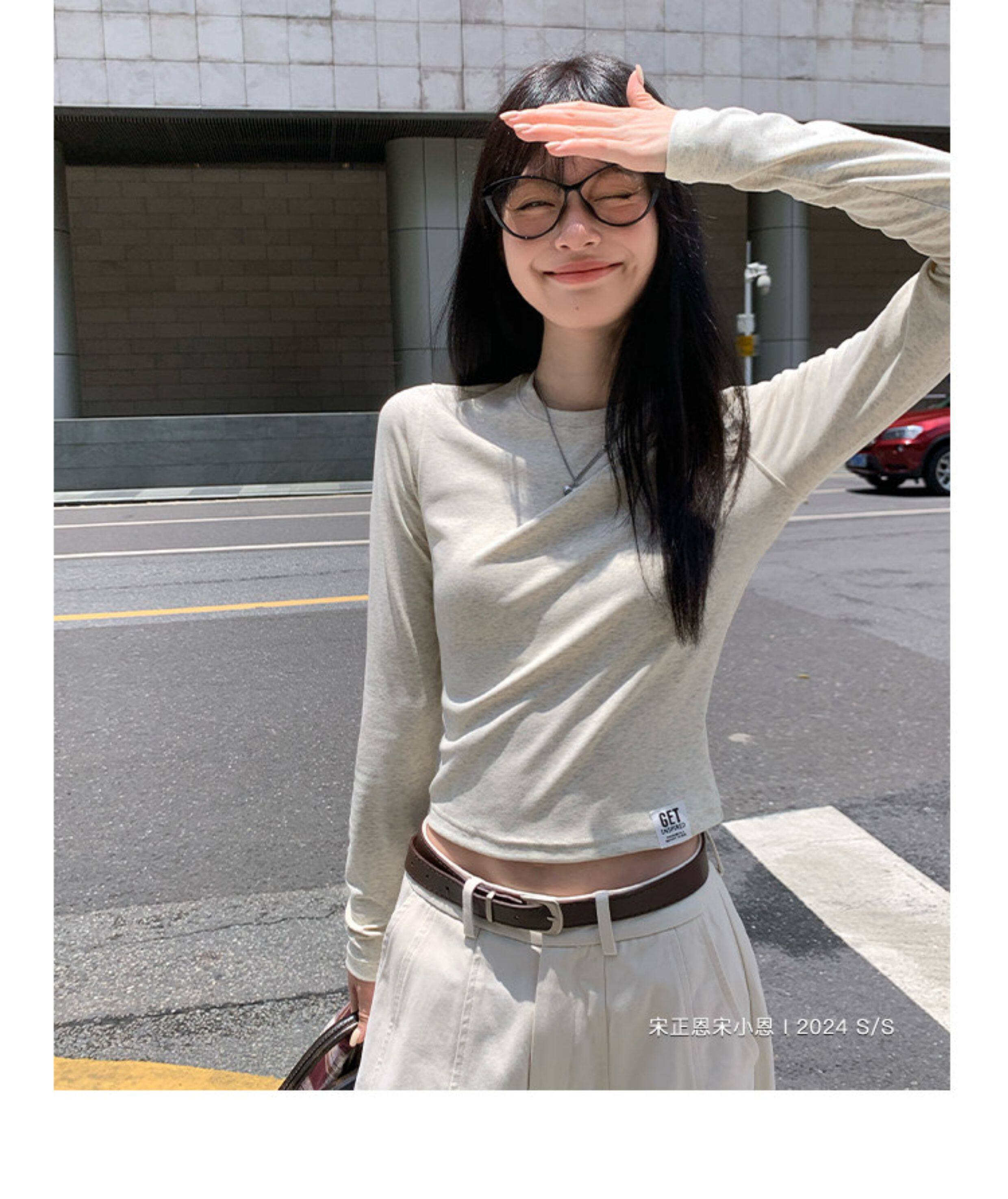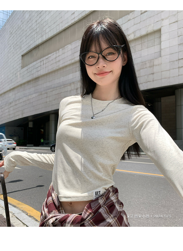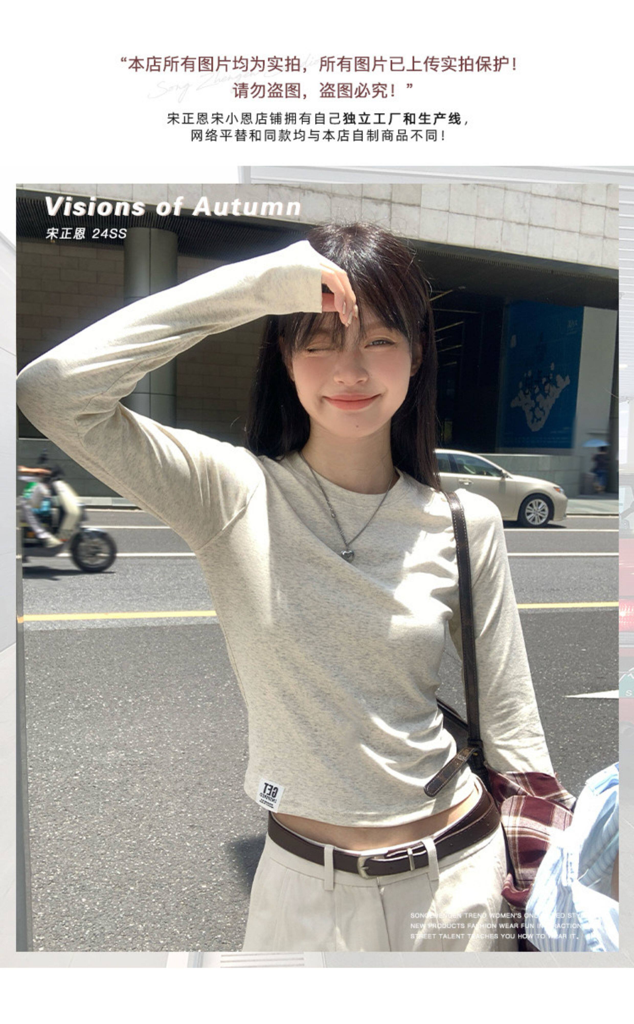 宋正恩短款打底衫女秋季新款內搭純棉修身磨毛正肩長袖t恤女上衣