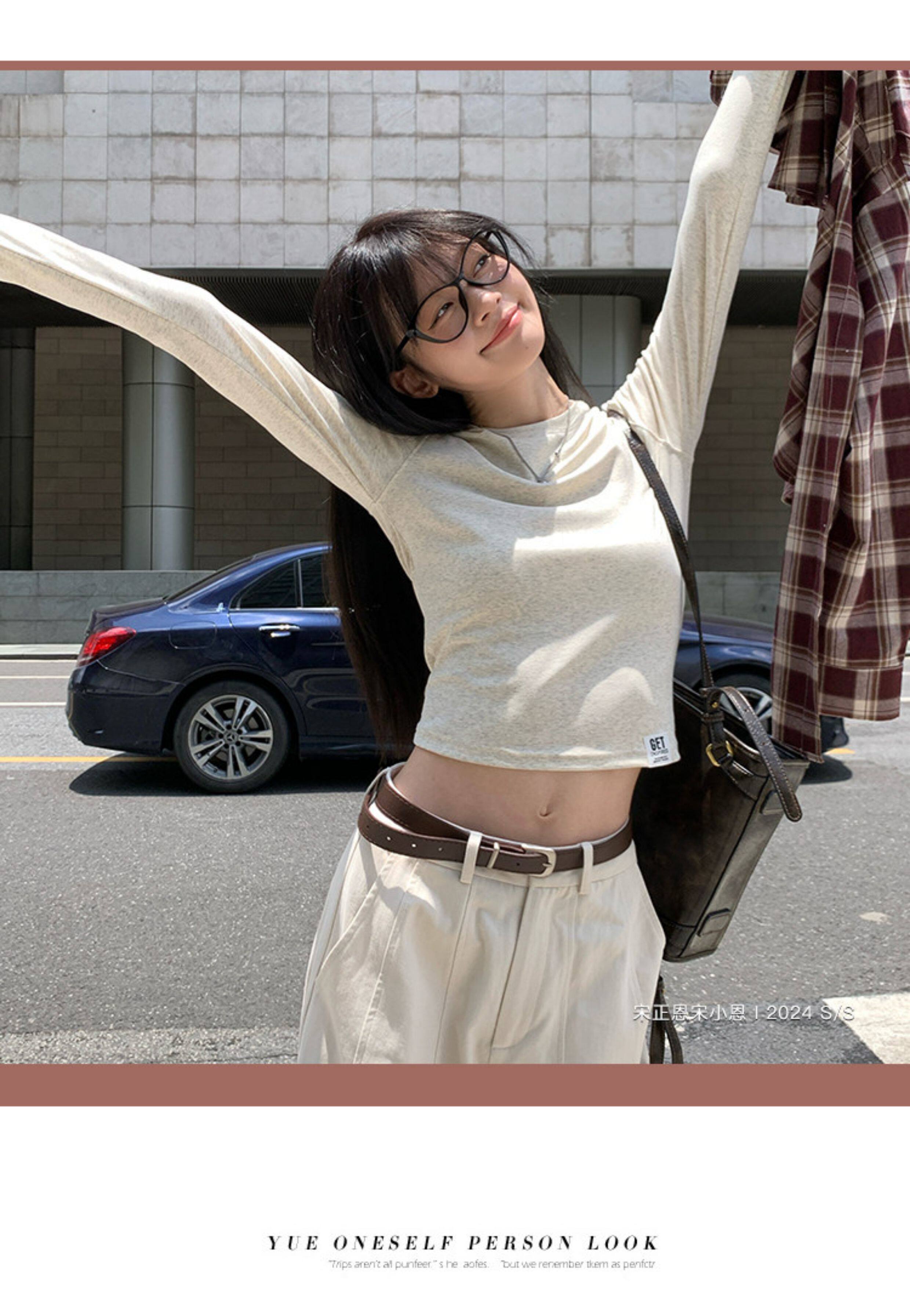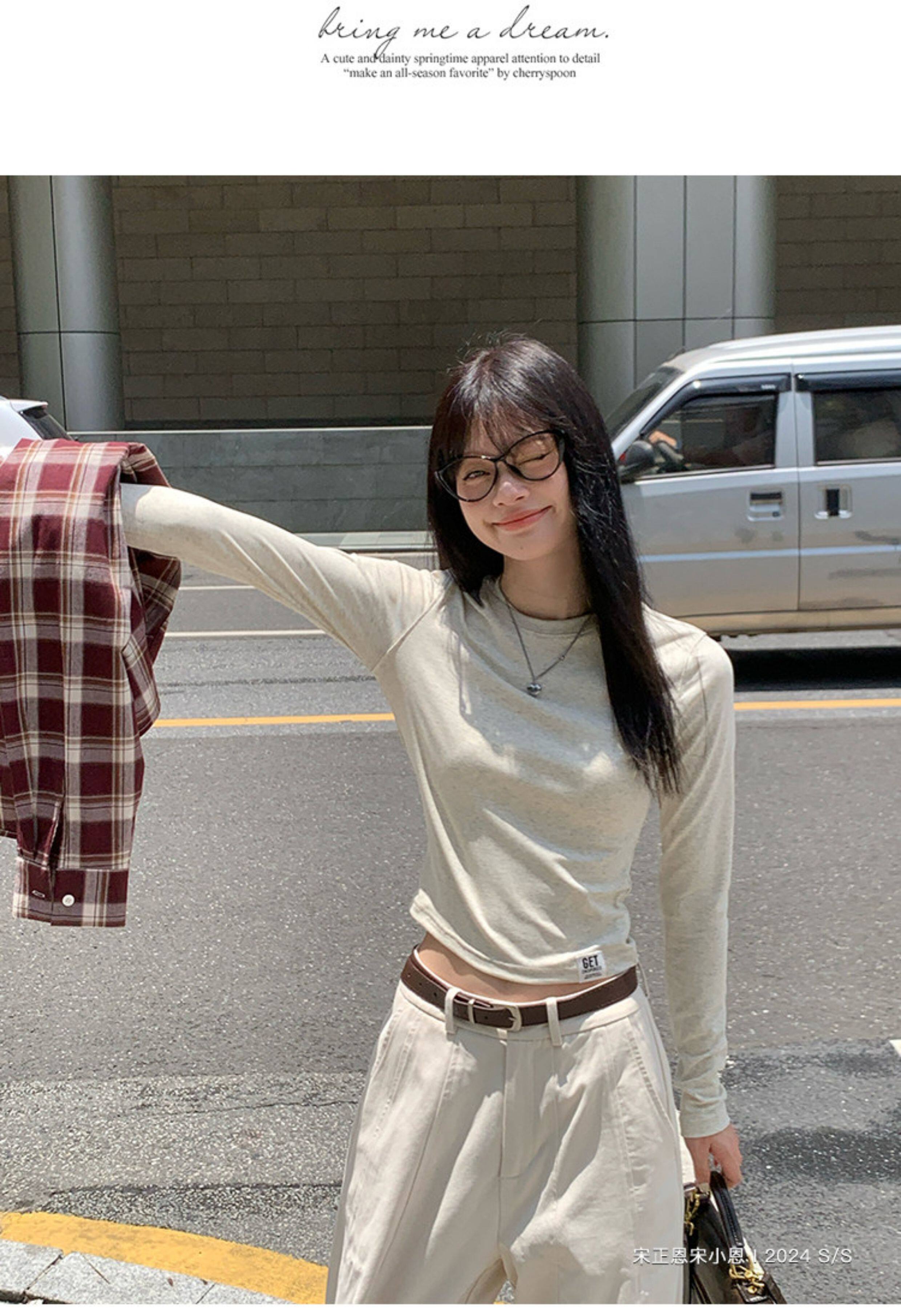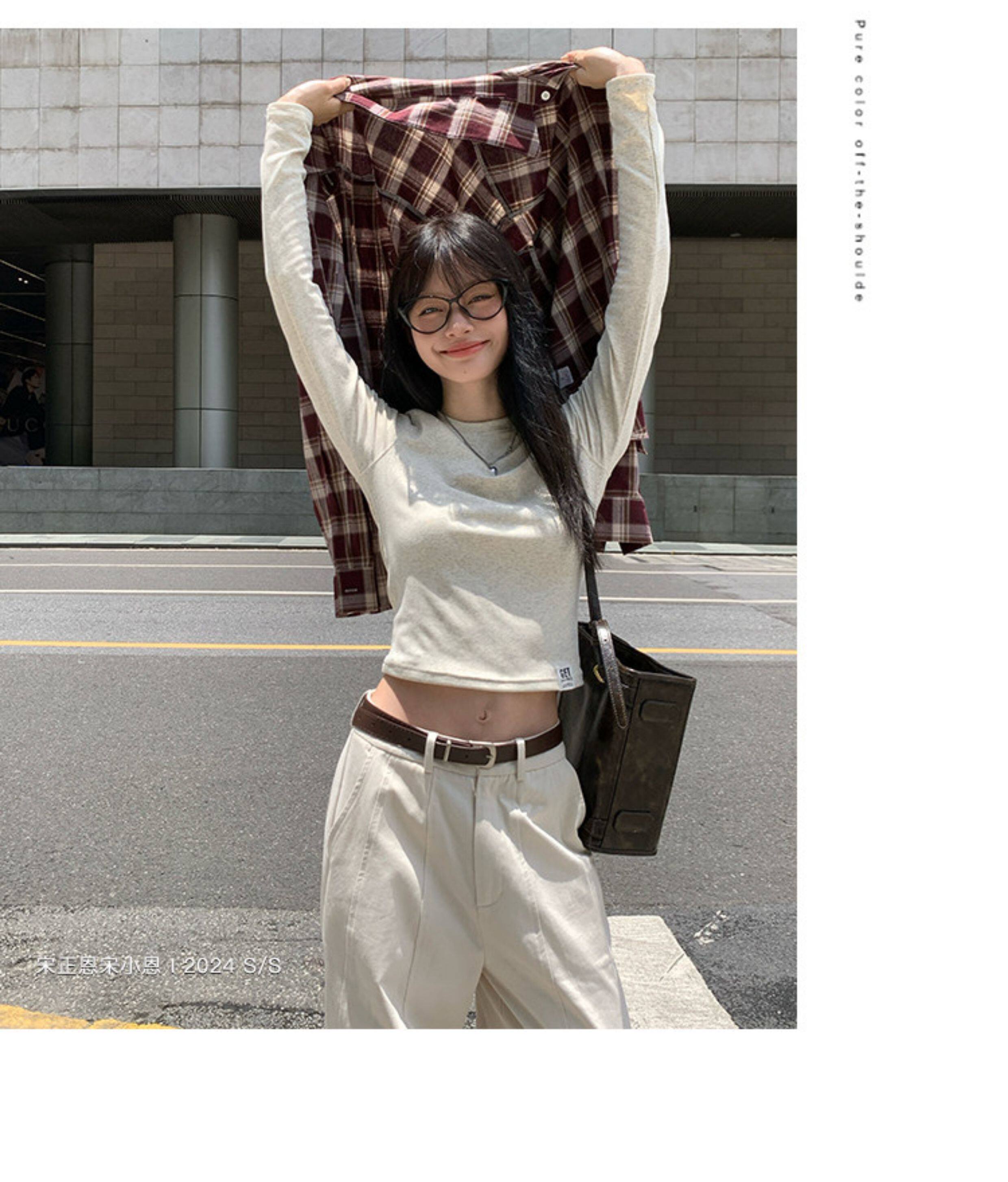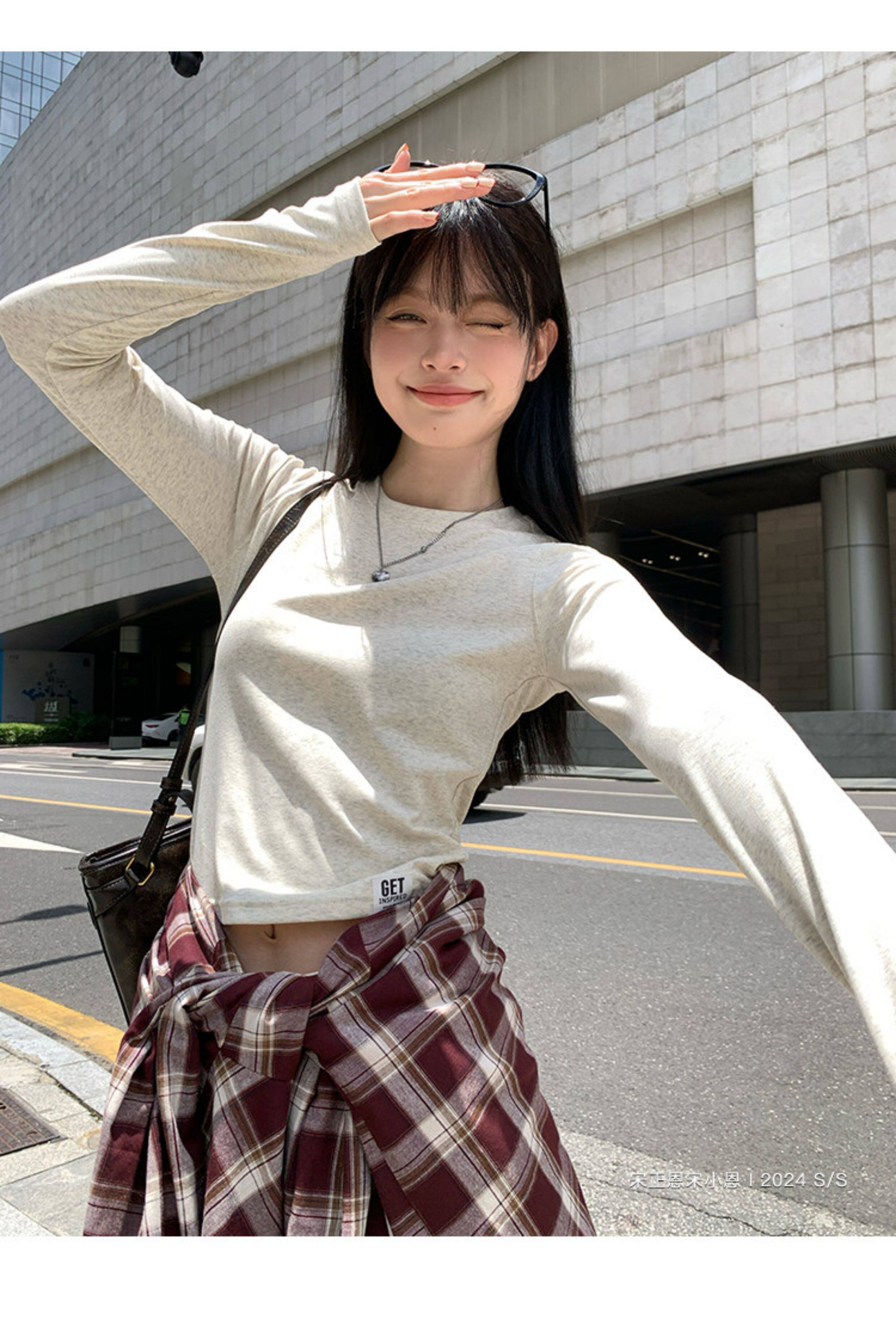 宋正恩短款打底衫女秋季新款內搭純棉修身磨毛正肩長袖t恤女上衣