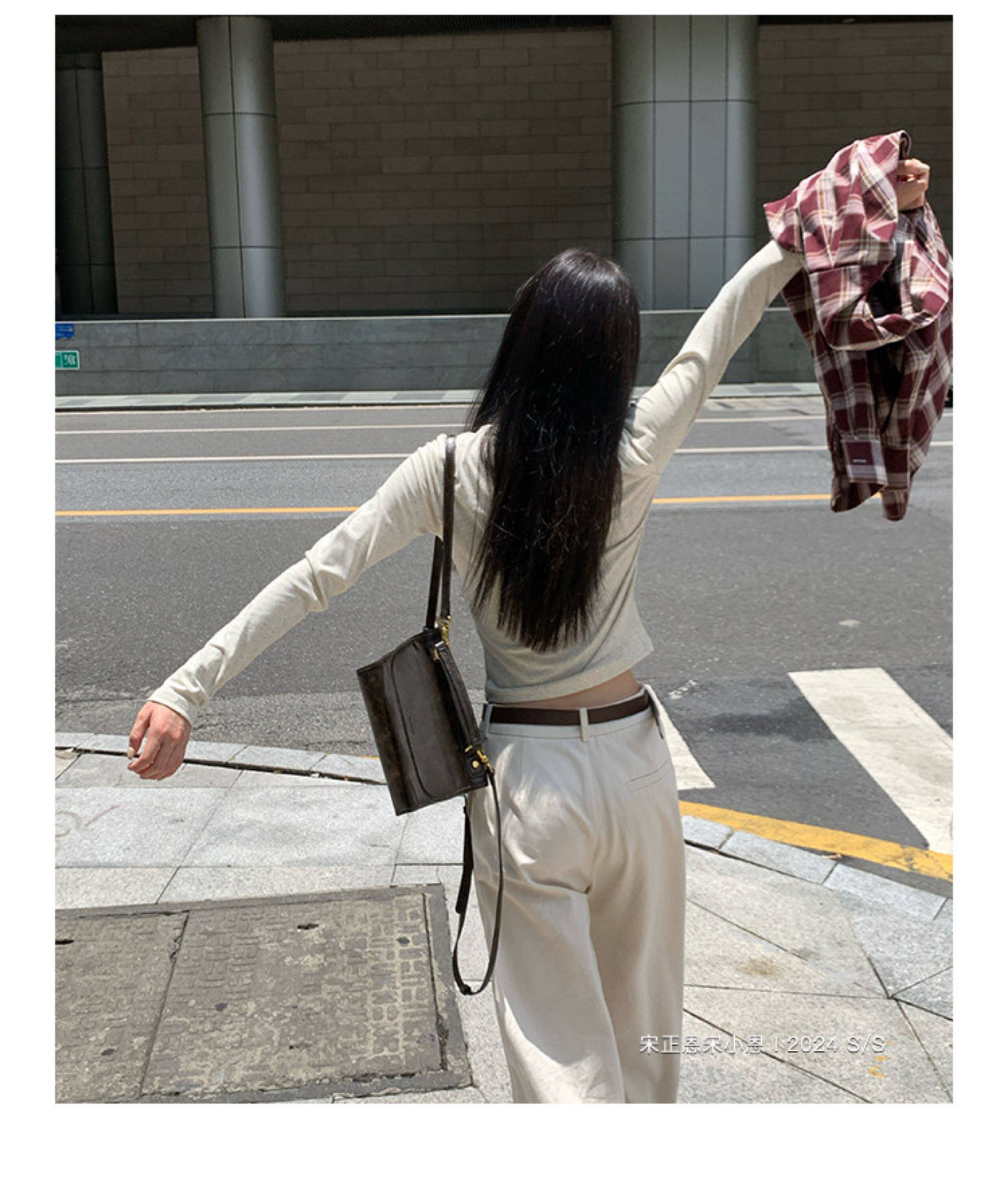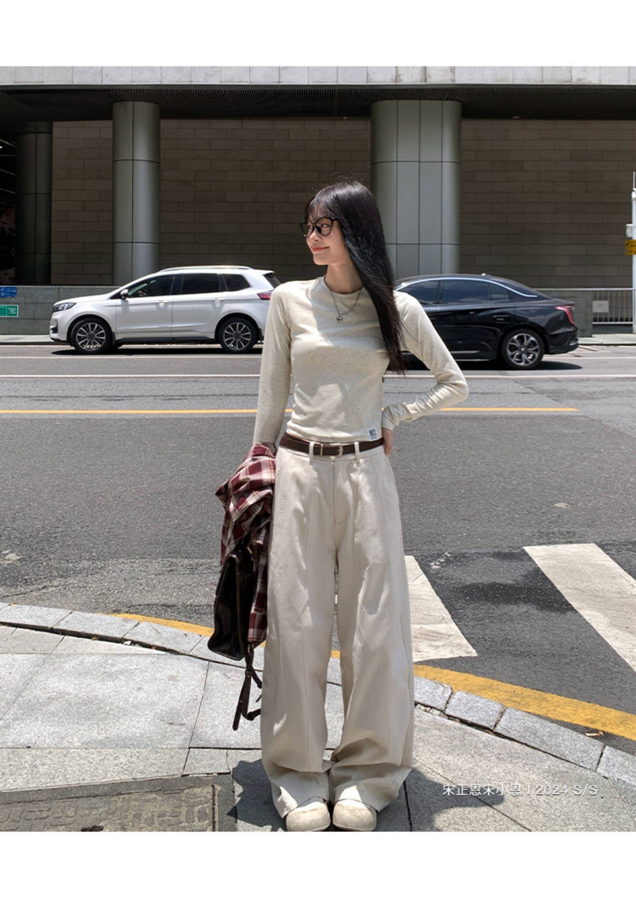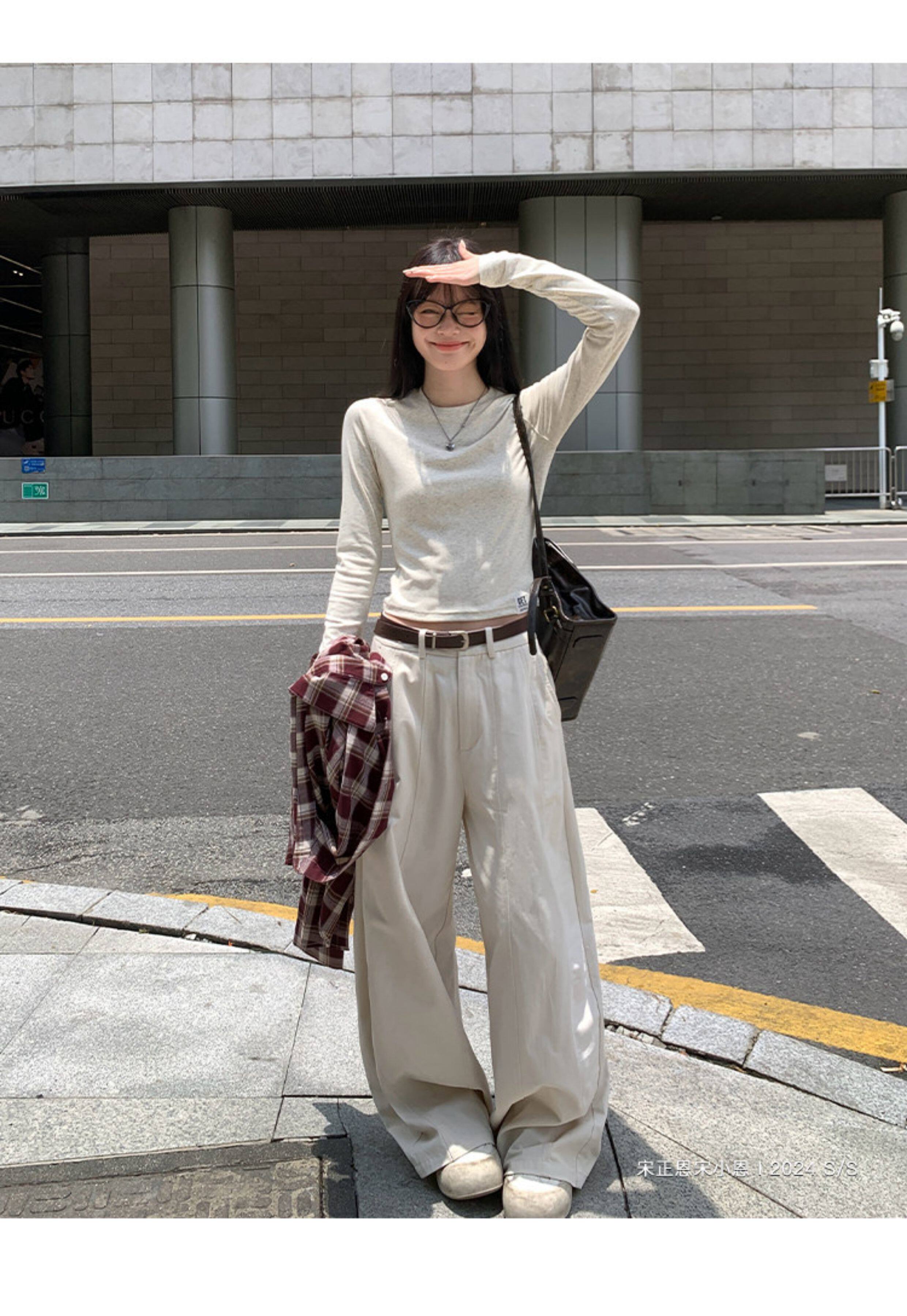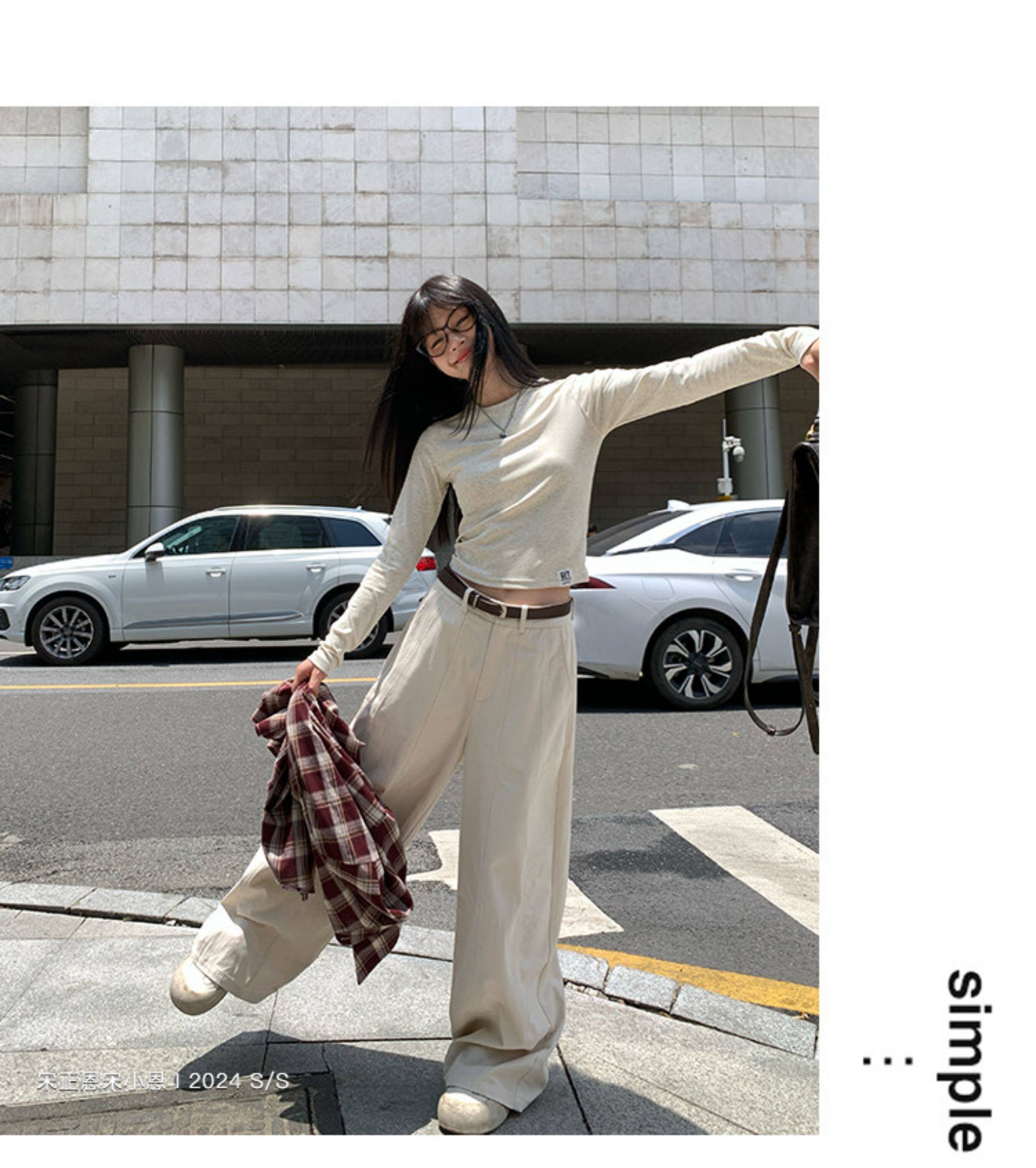 宋正恩短款打底衫女秋季新款內搭純棉修身磨毛正肩長袖t恤女上衣