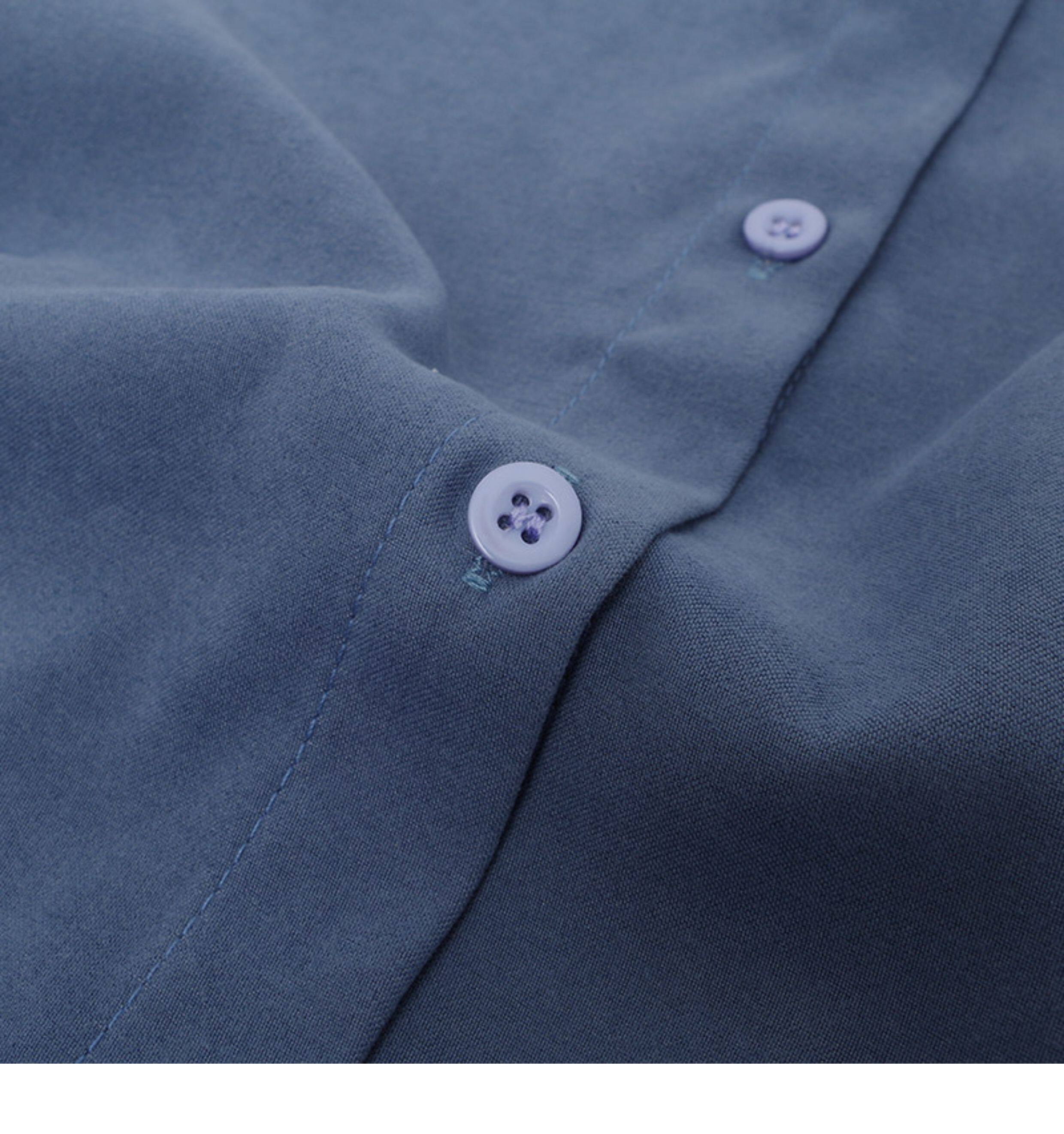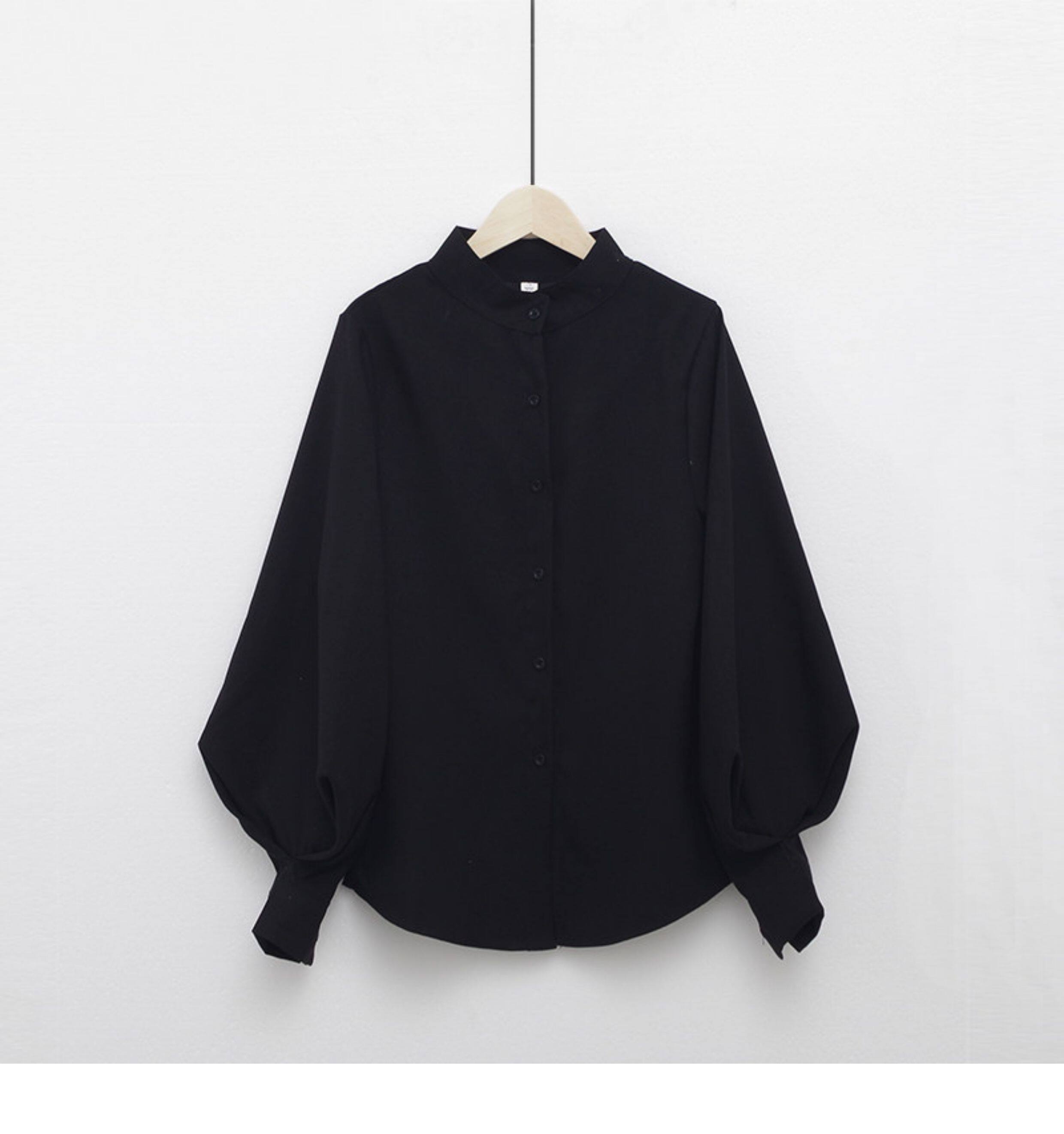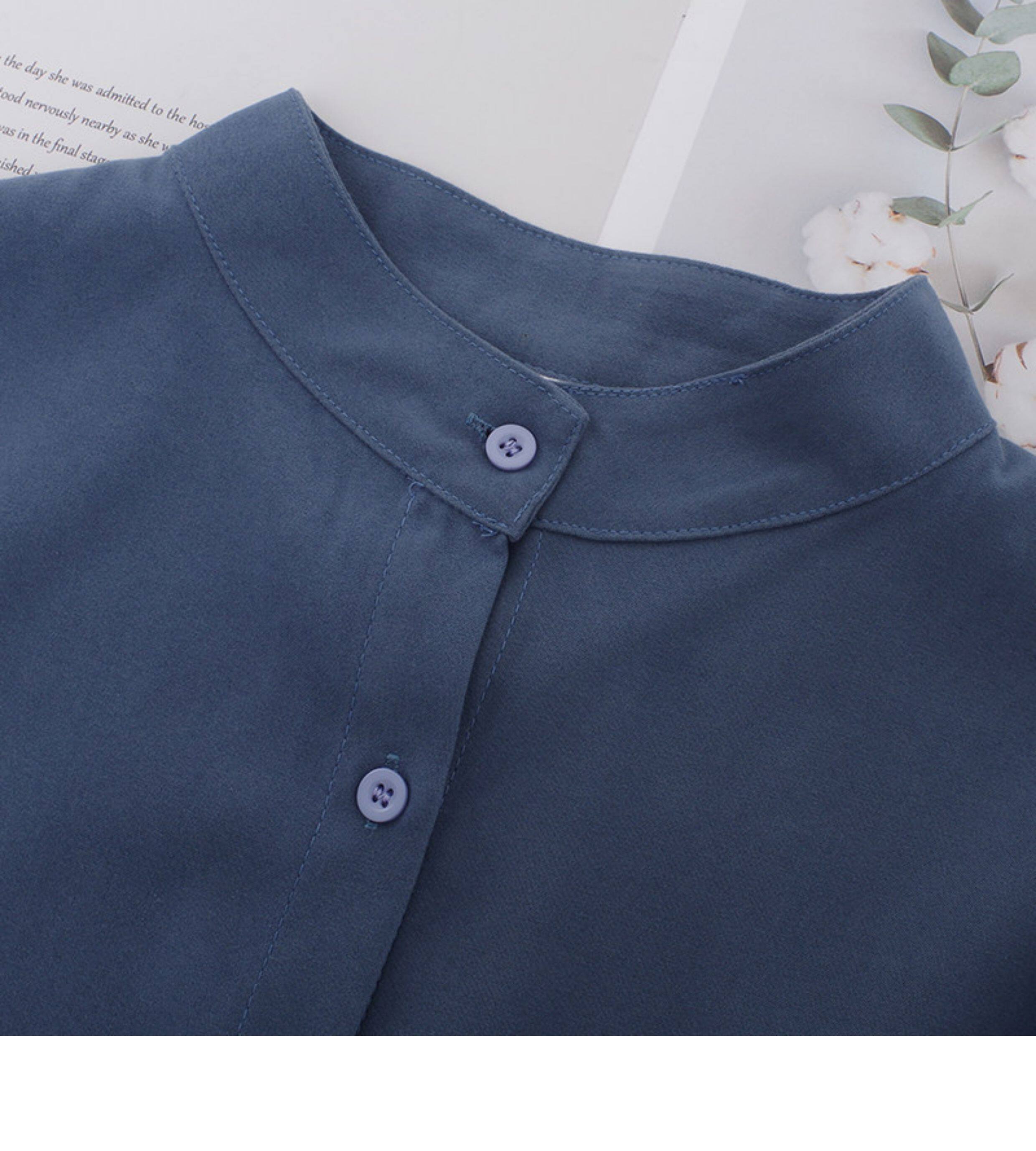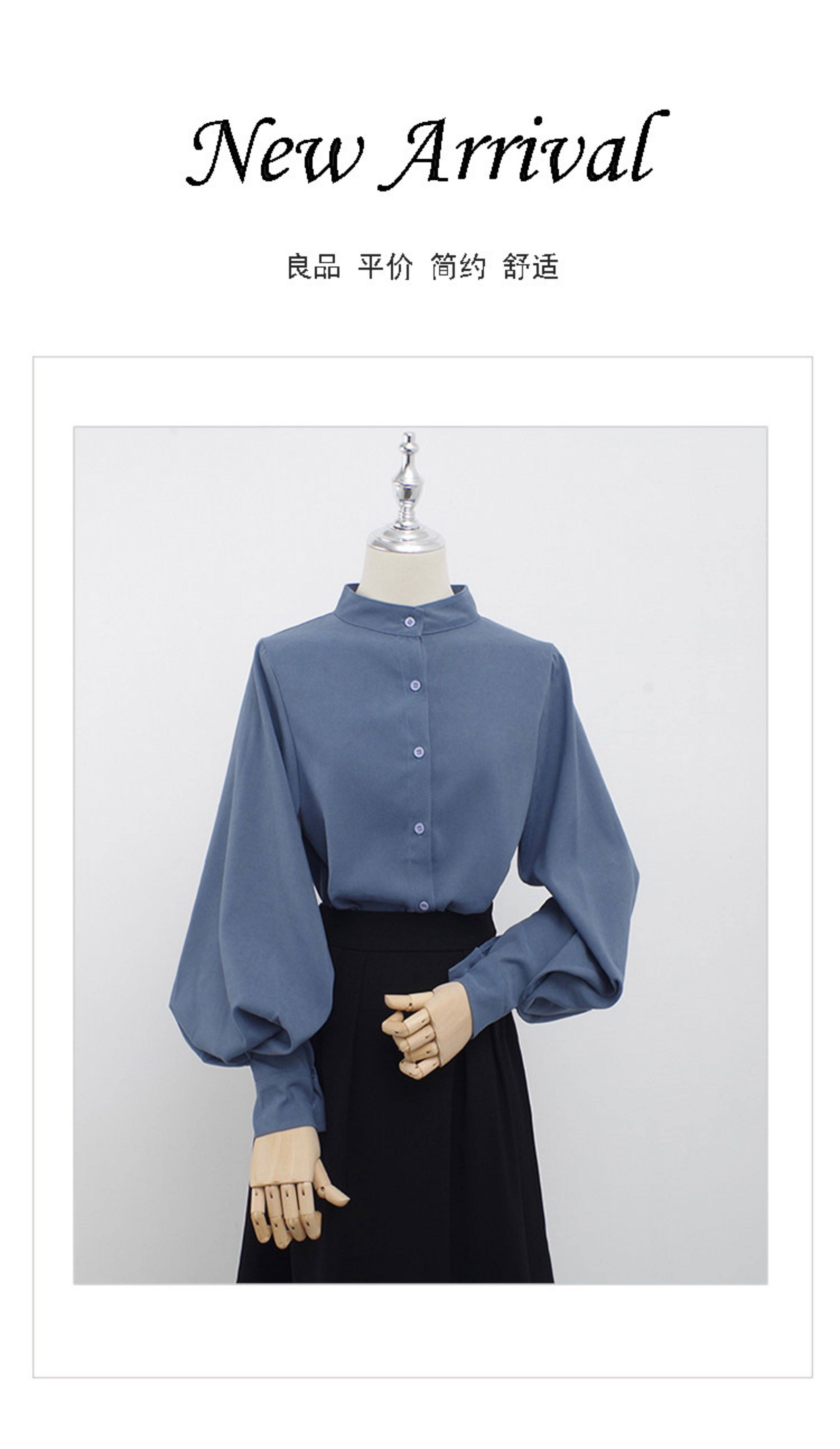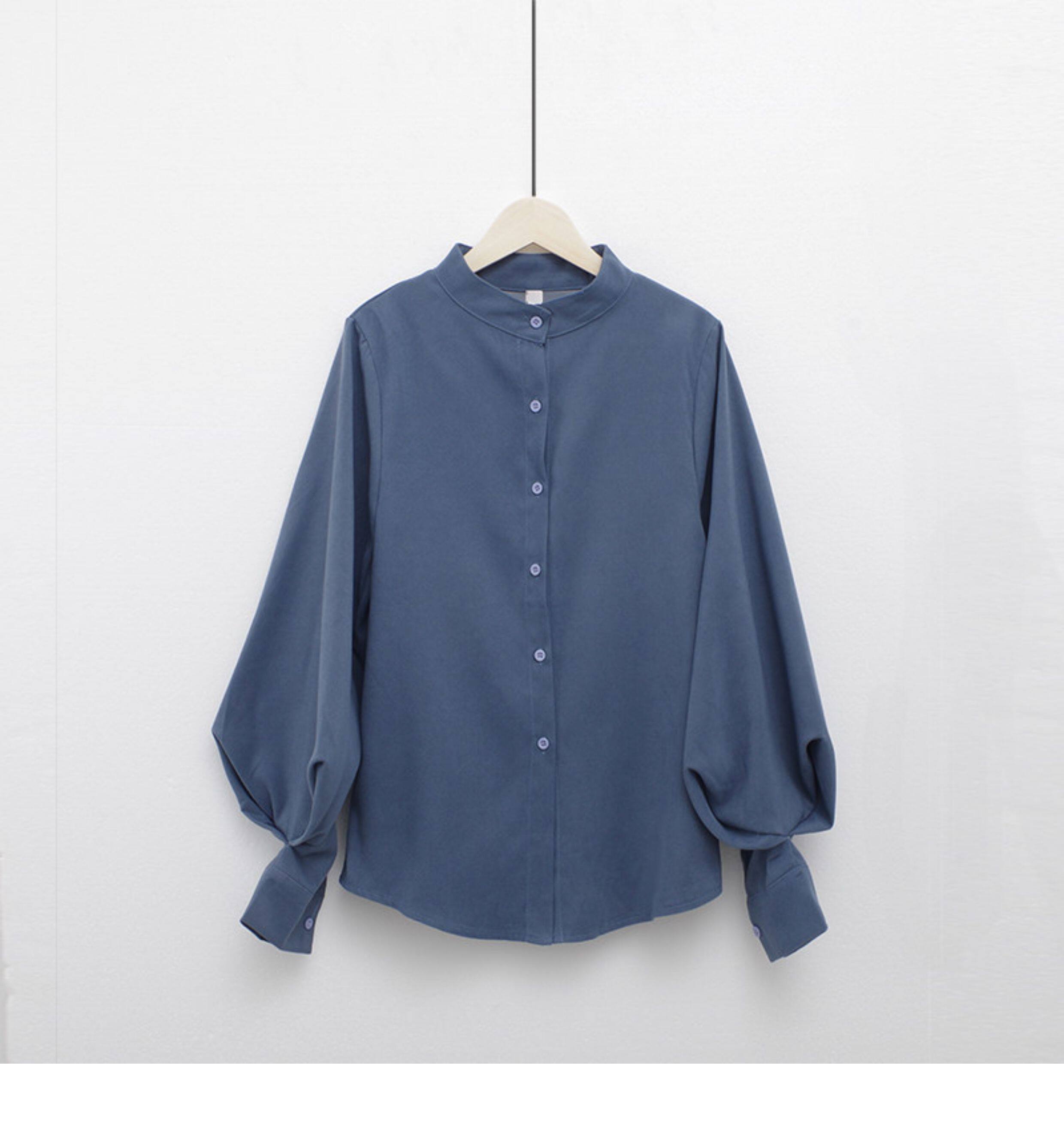 孔雀藍大燈籠袖復古襯衫女2026春裝新款立領港味單排釦磨毛上衣女