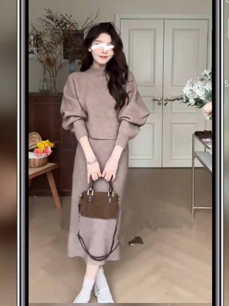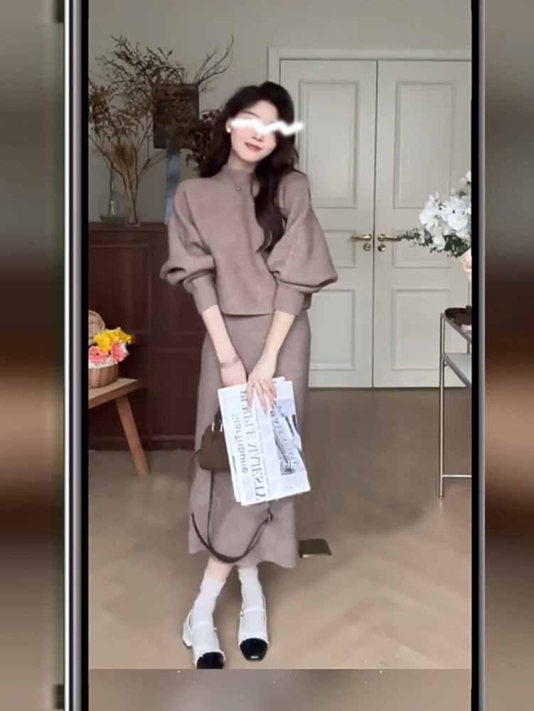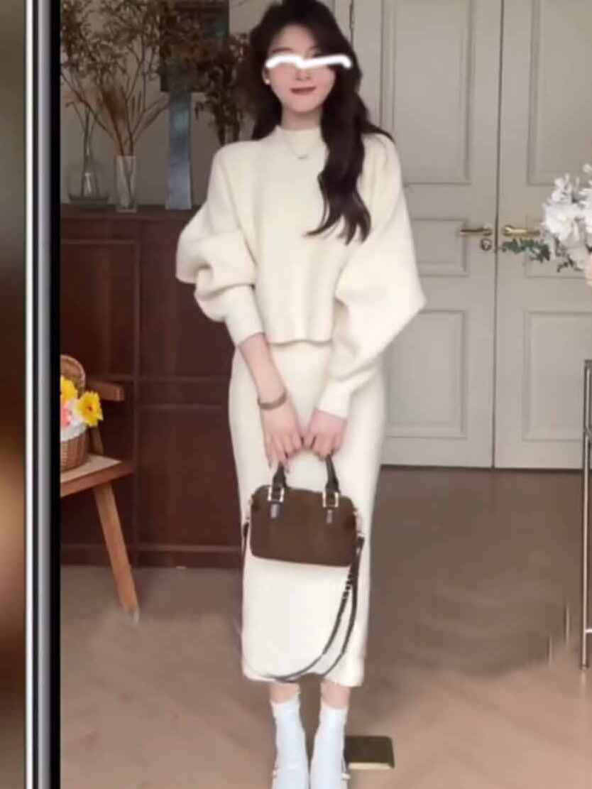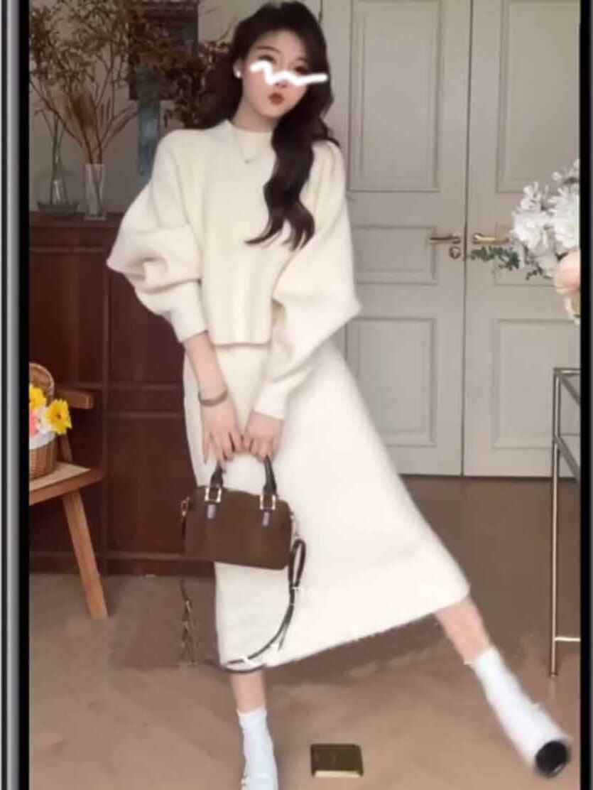 2024秋冬新款韓系穿搭氣質連衣裙針織毛衣裙女慵懶風流行兩件套裝
