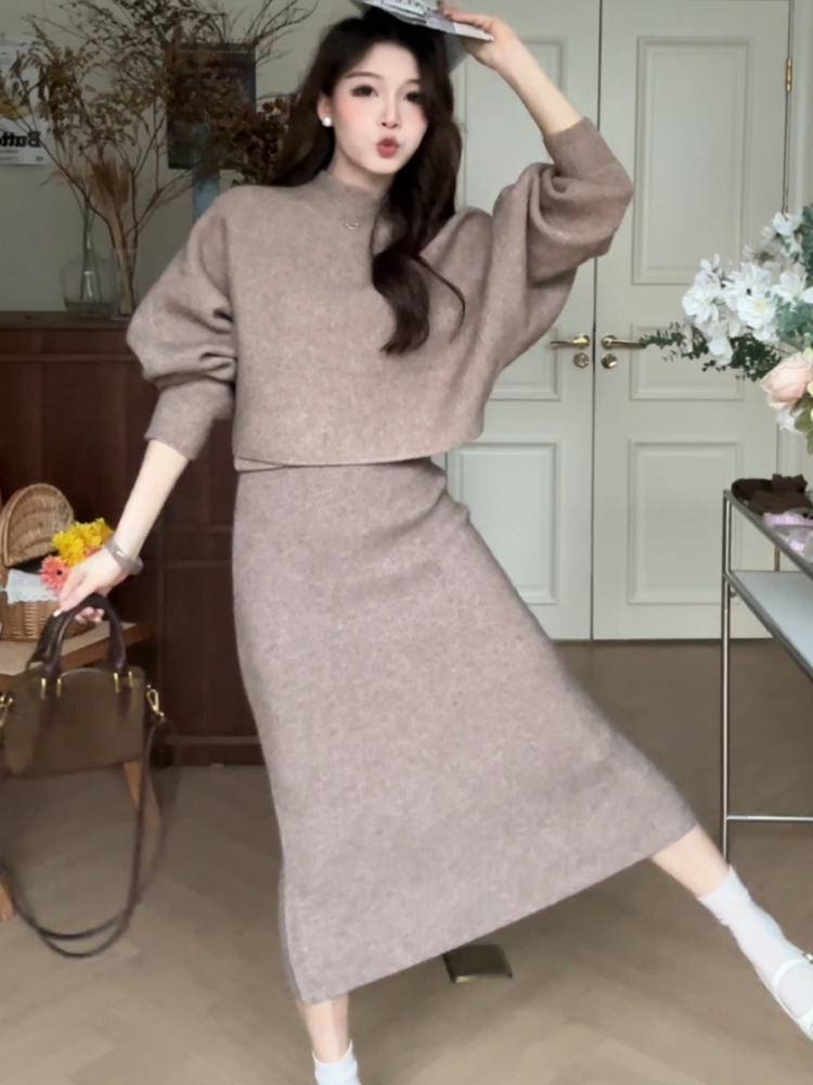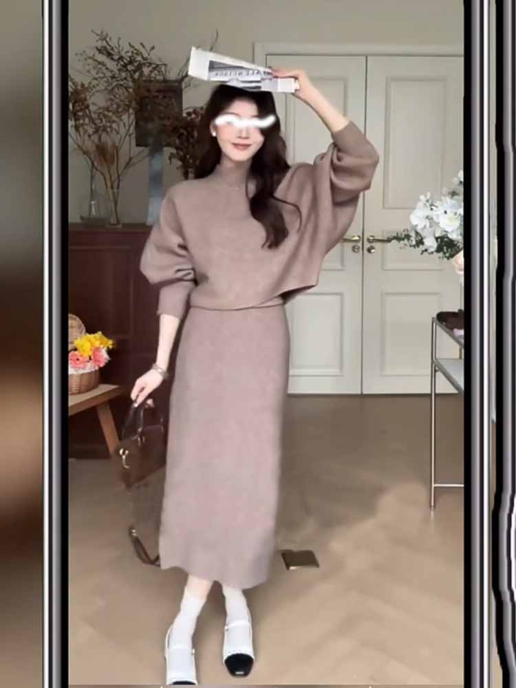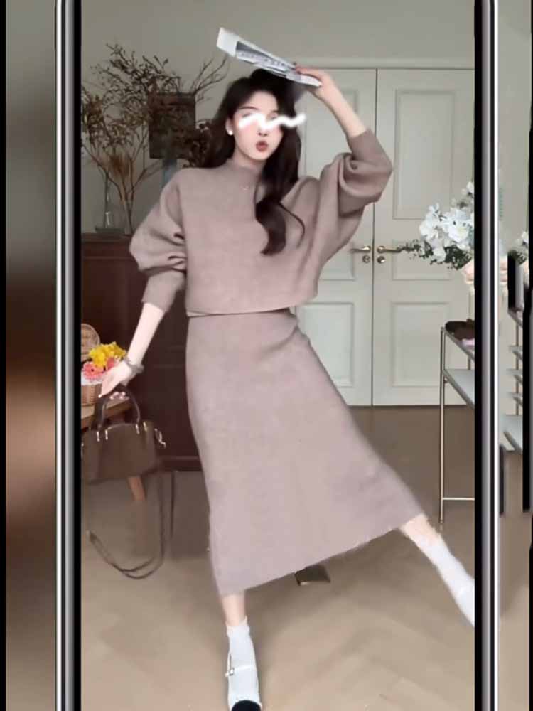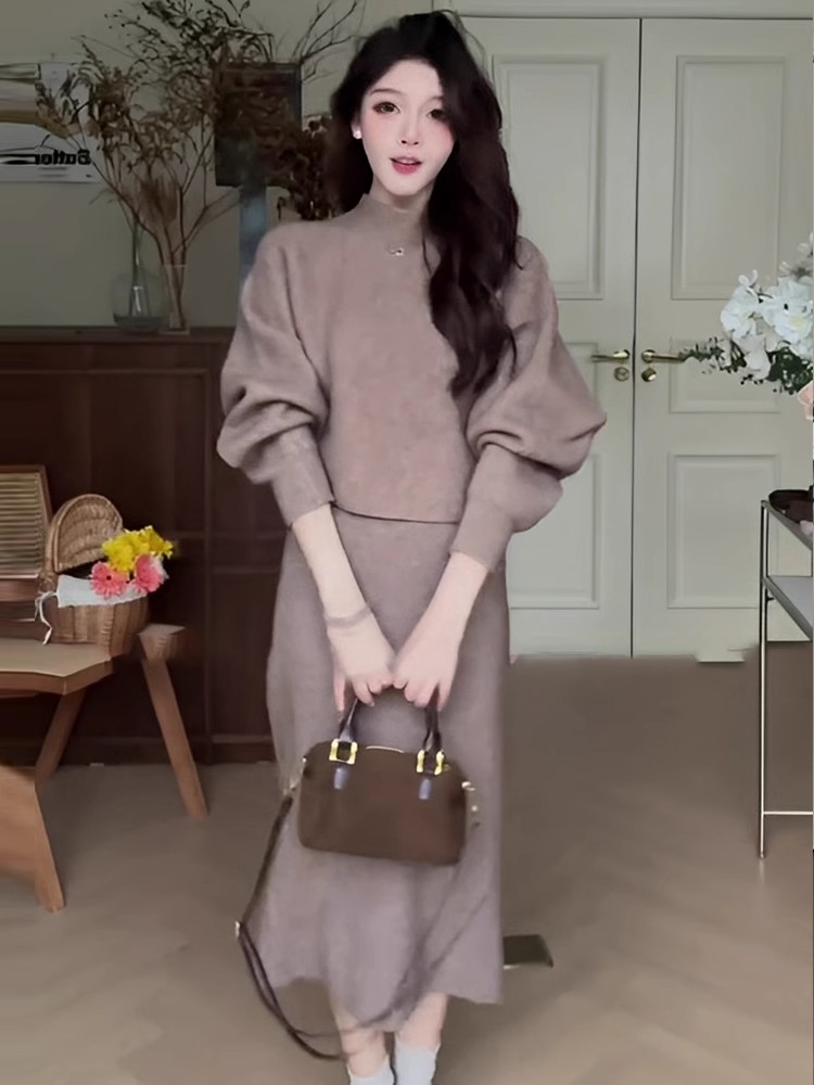 2024秋冬新款韓系穿搭氣質連衣裙針織毛衣裙女慵懶風流行兩件套裝