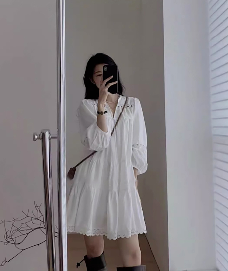 法式白色襯衫連衣裙女2025新款秋季小個子巨好看新疆雲南旅遊穿搭