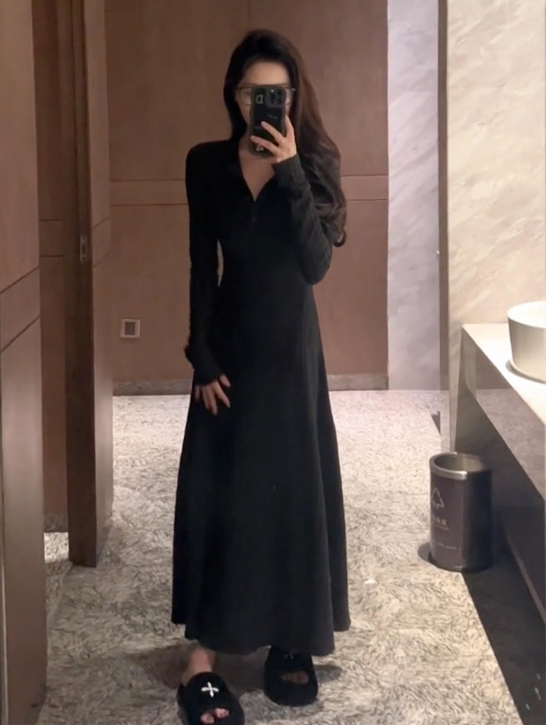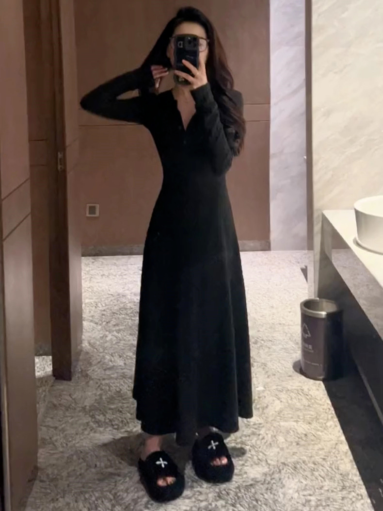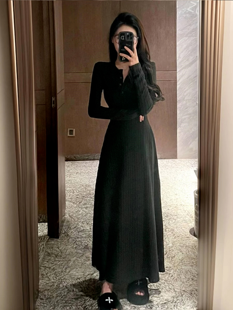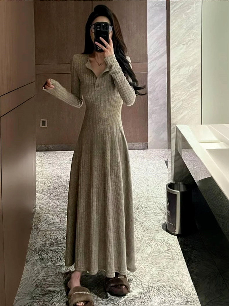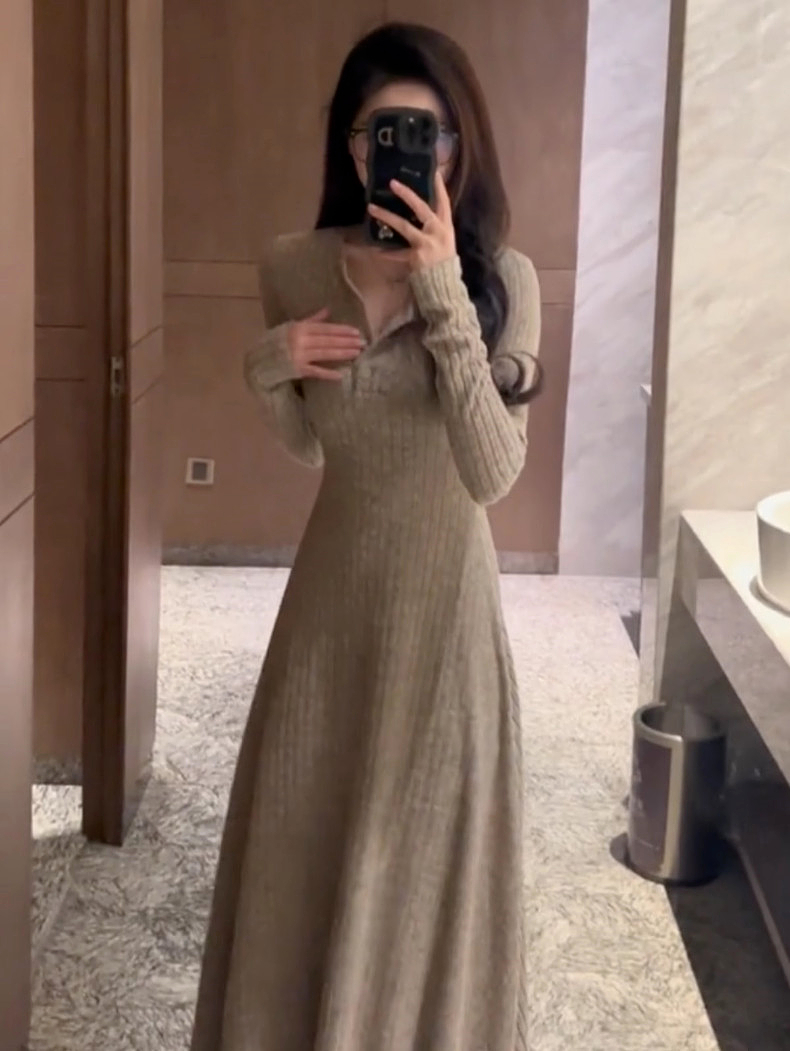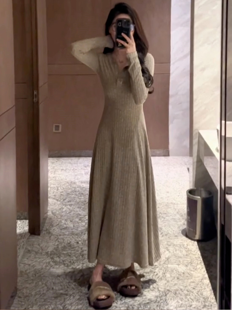 法式氣質針織連衣裙女秋冬季2025新款小個子大衣內搭打底毛衣長裙