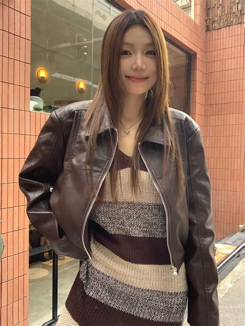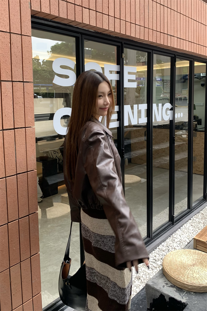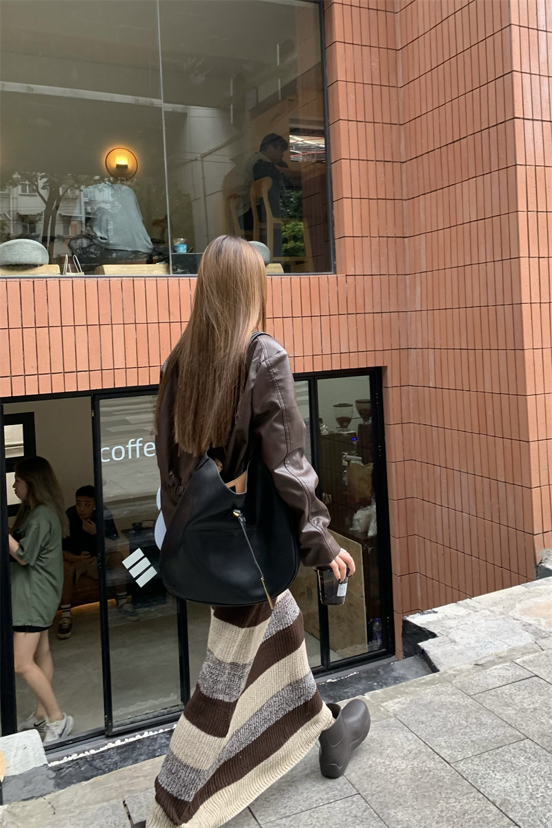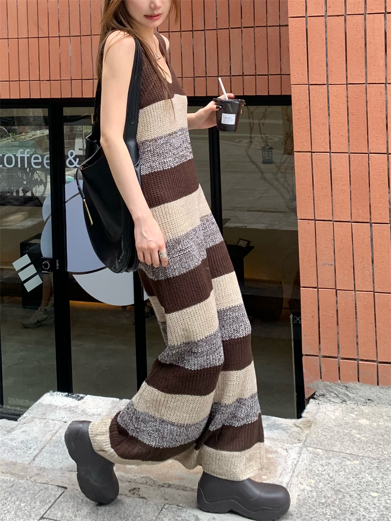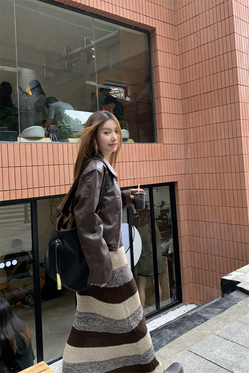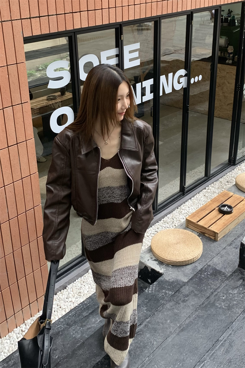 美拉德條紋針織連衣裙女春秋配皮衣打底毛衣裙慵懶垂墜感內搭長裙