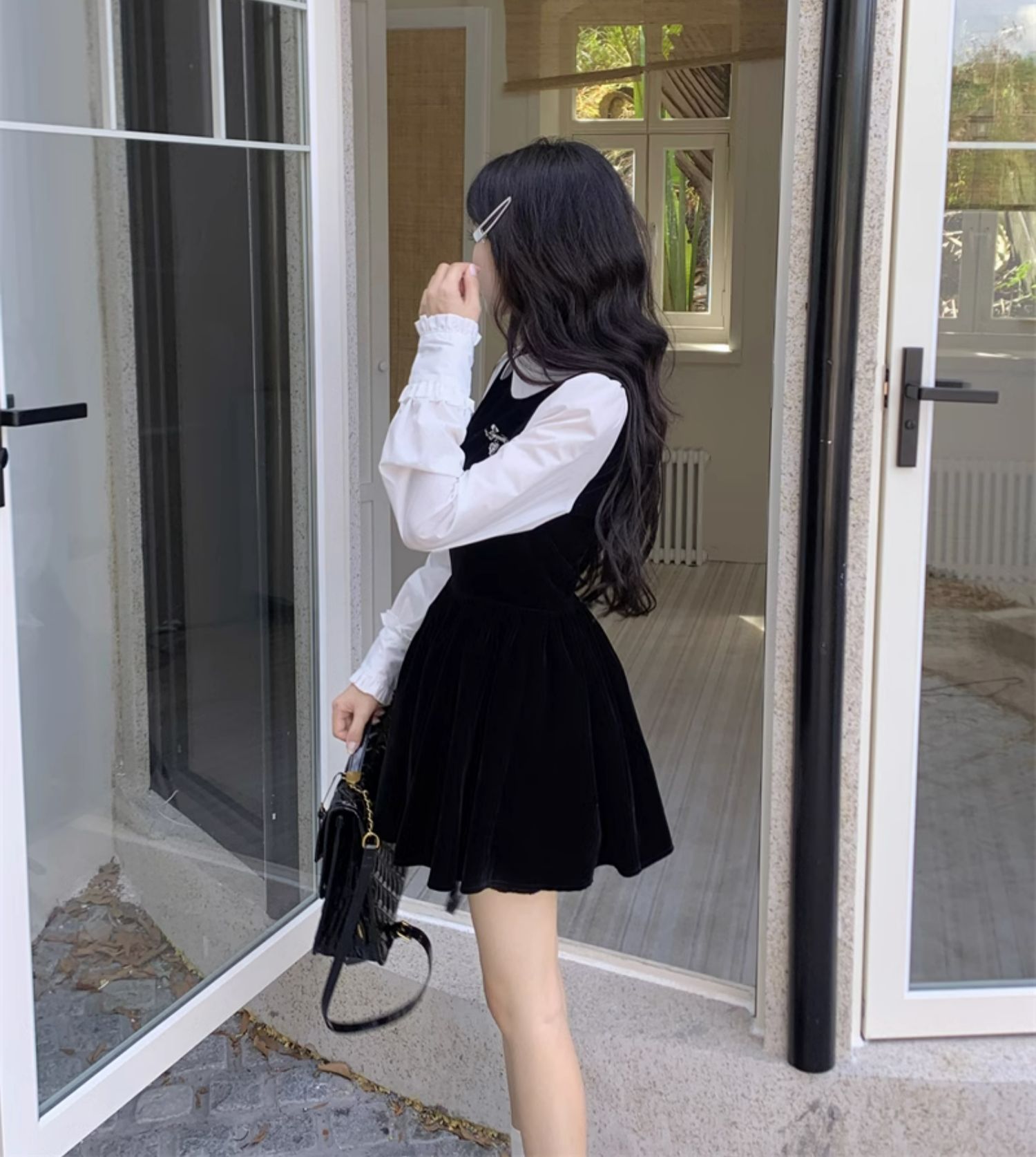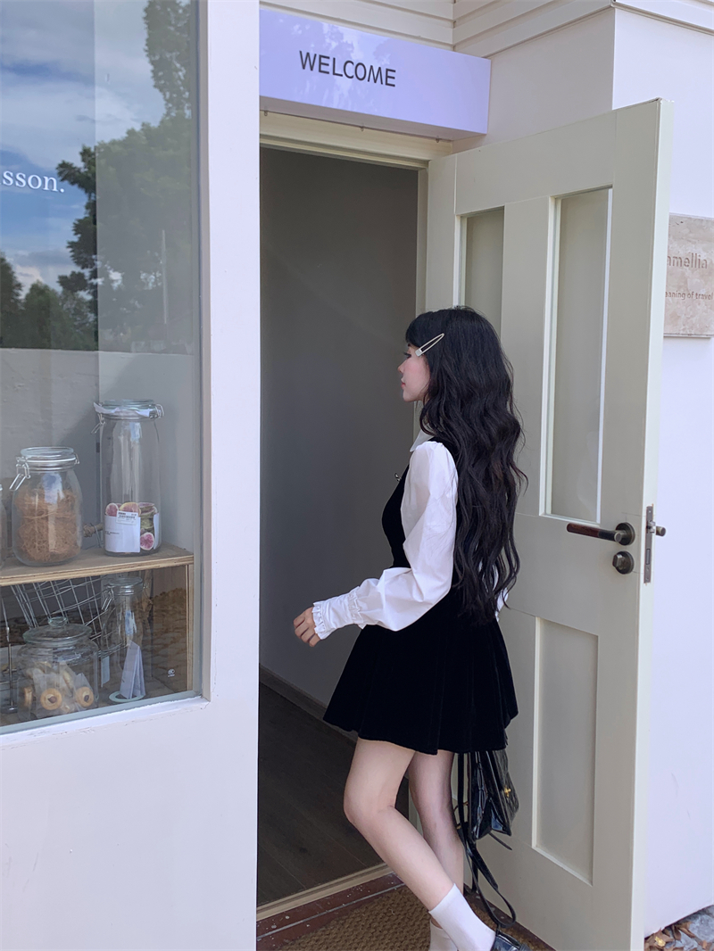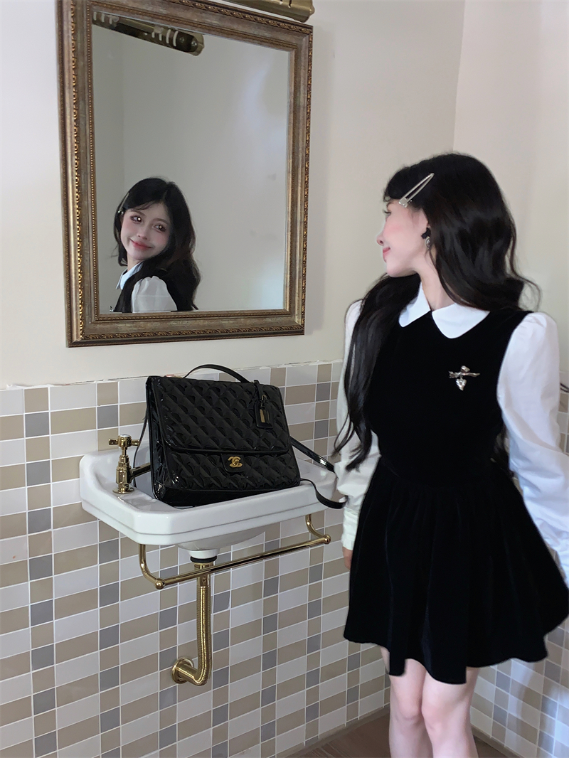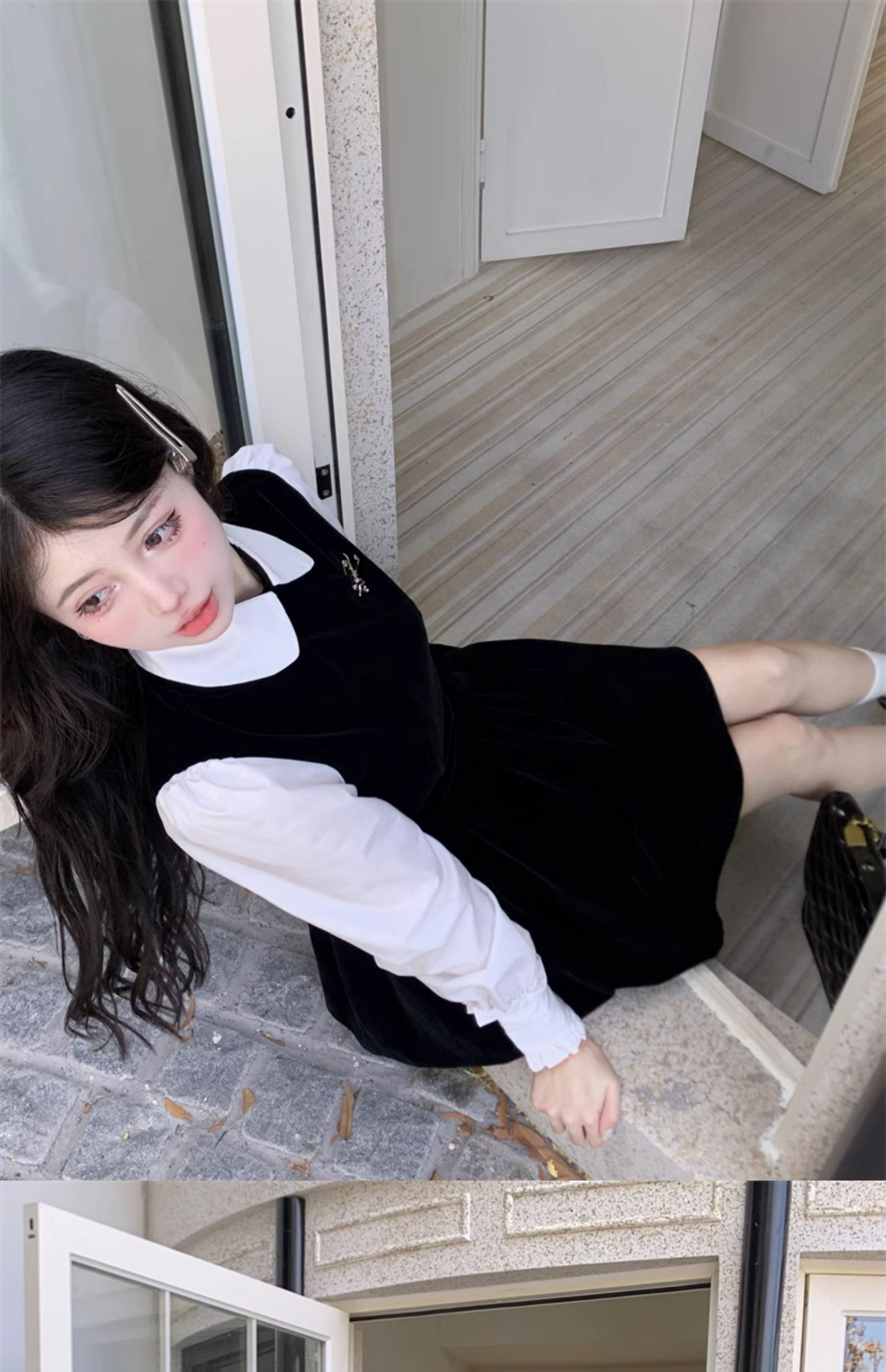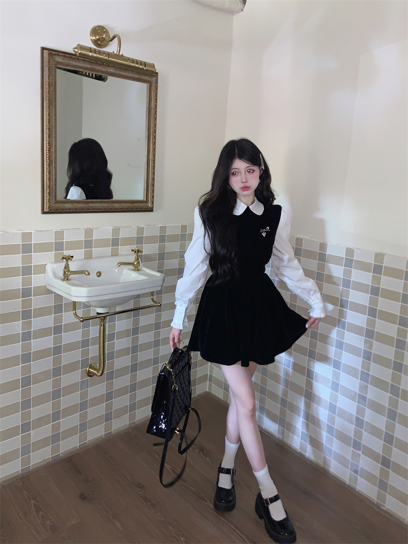 韓系溫柔風減齡高級感娃娃領長袖小黑裙小個子高級精緻連衣裙秋季