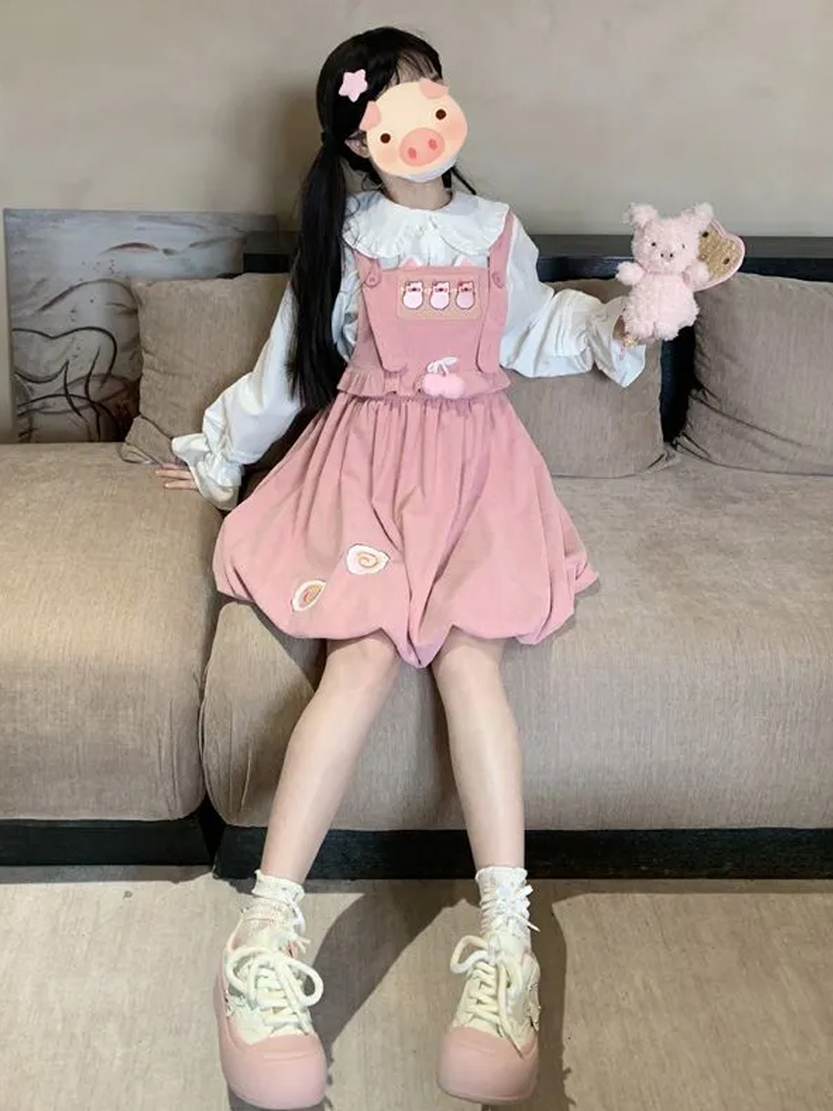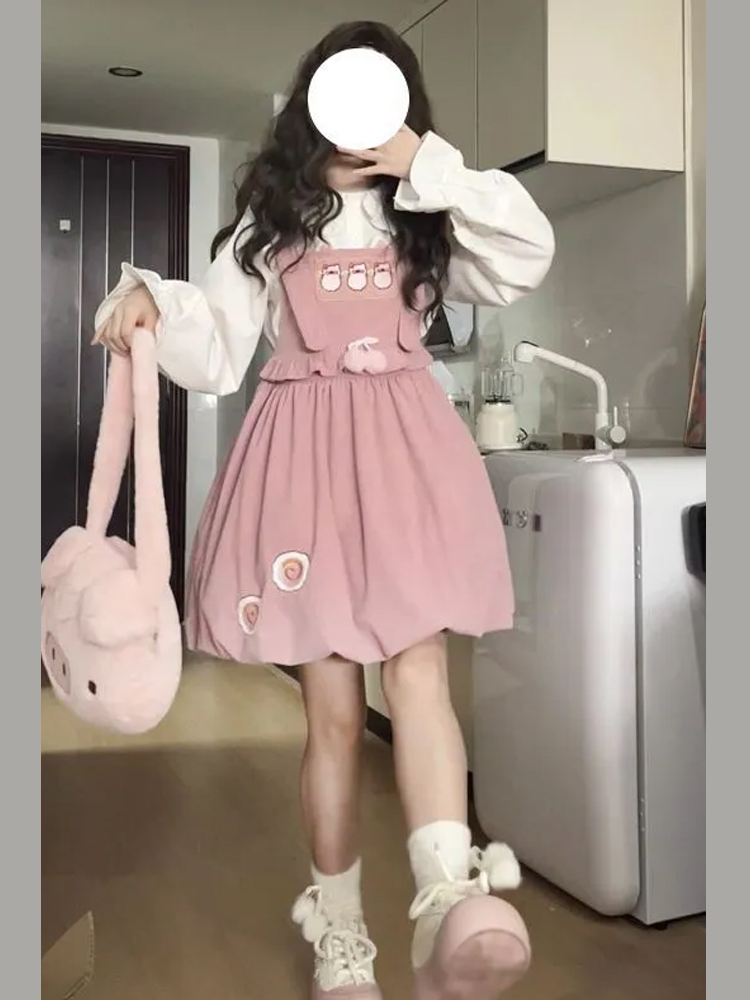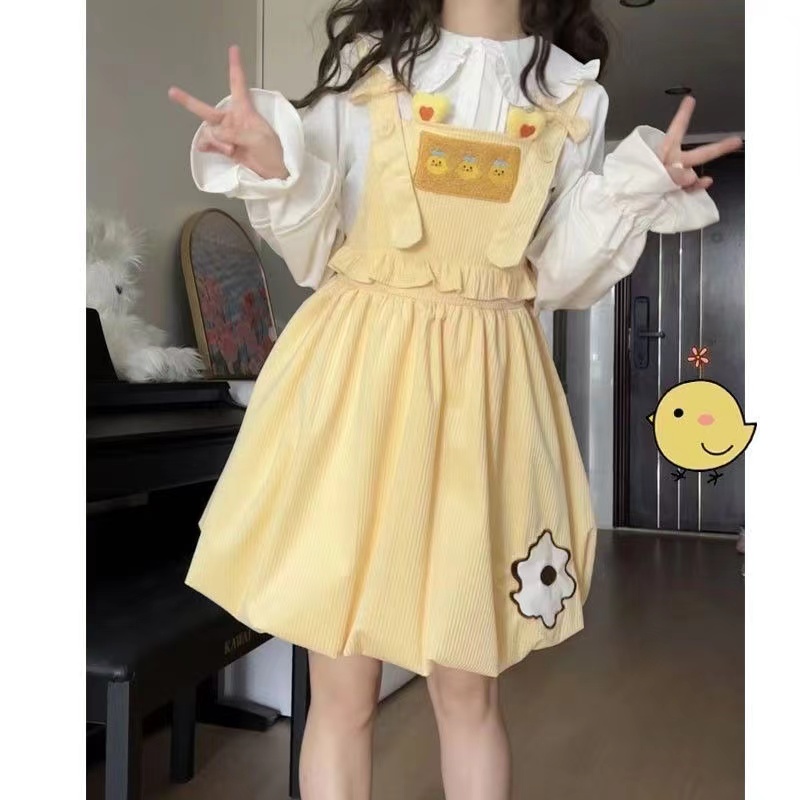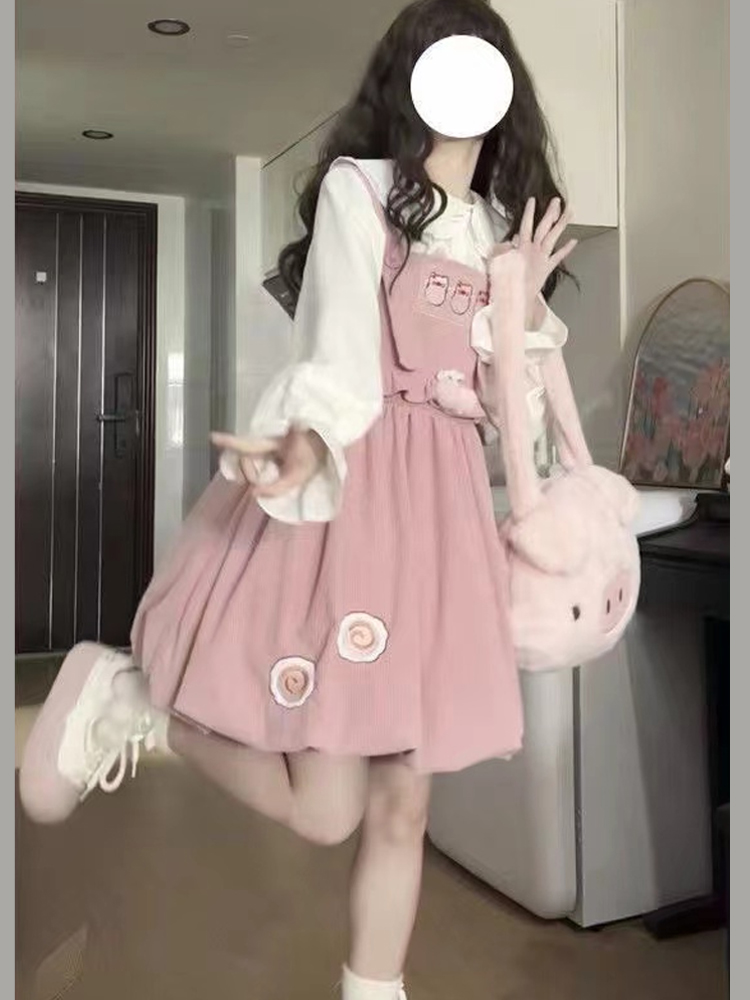 學院風小個子穿搭一整套俏皮活潑背帶裙兩件套裝花苞裙吊帶連衣裙
