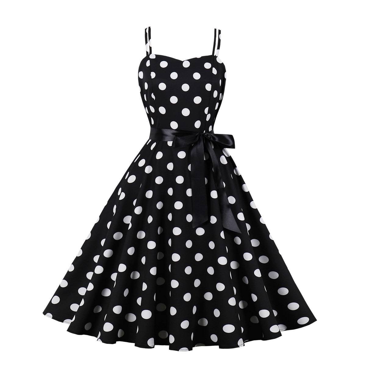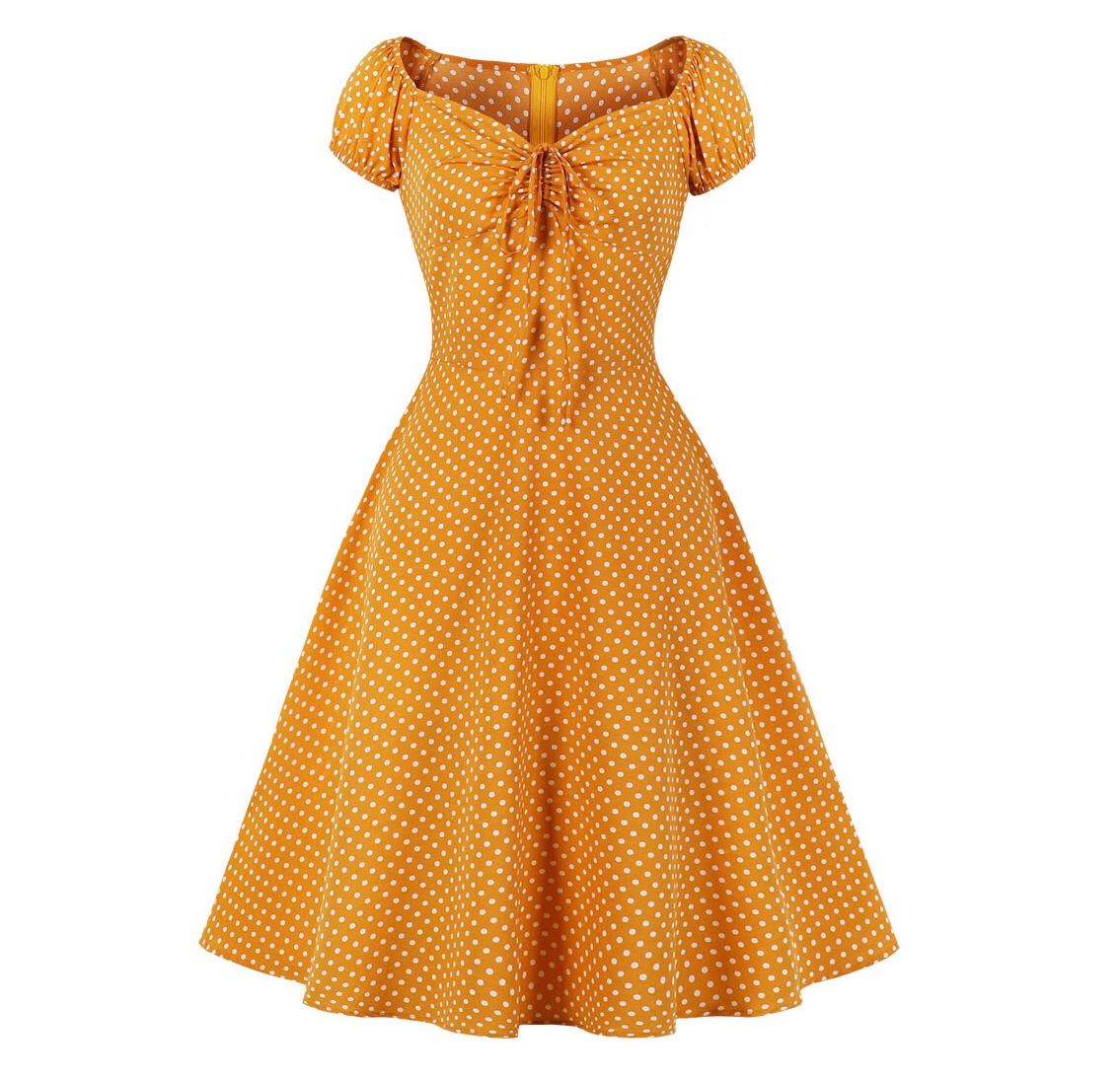 赫本氣質復古派對顯瘦年代少女感港風小衆波點年會表演舞蹈連衣裙