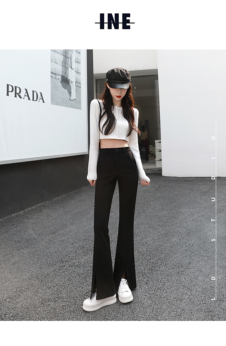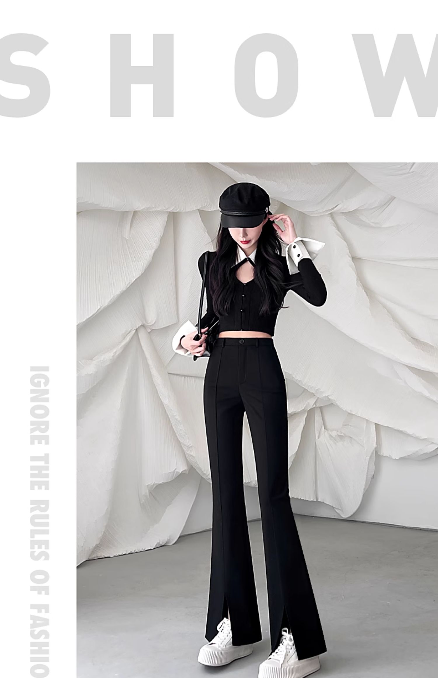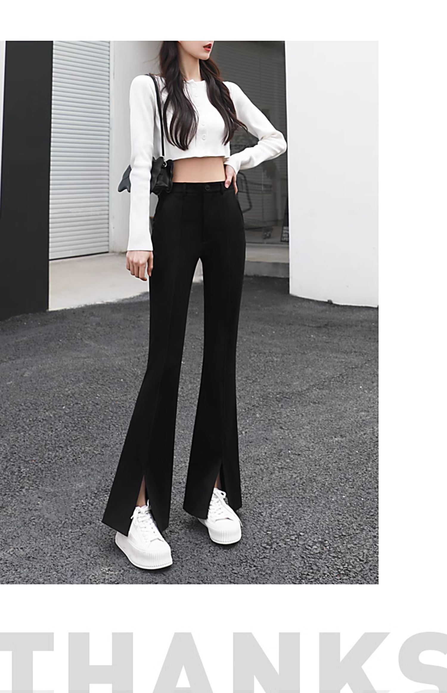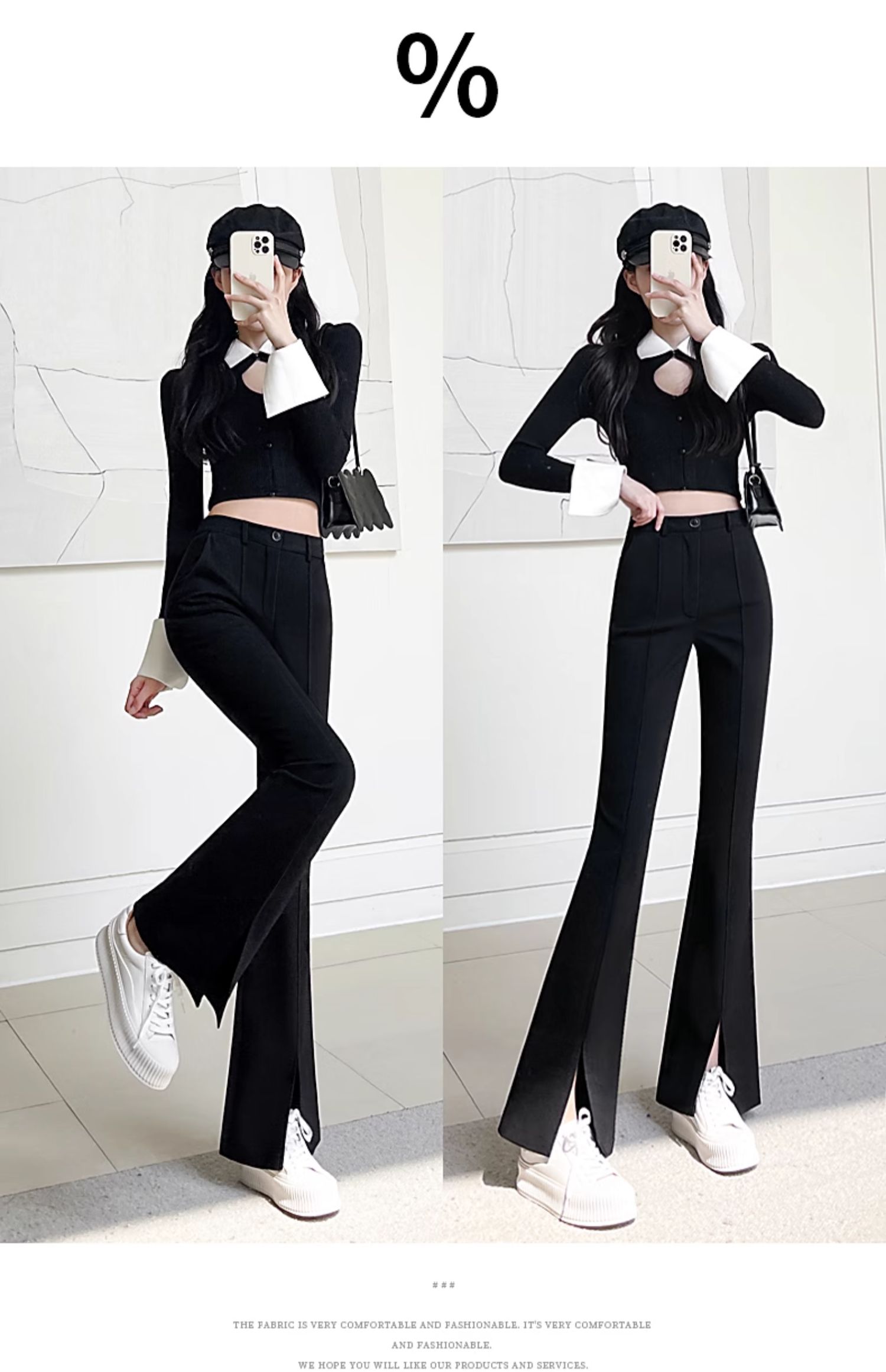 喇叭褲女秋季2025新款高腰顯瘦修身高級感垂感黑色西裝開叉微喇褲