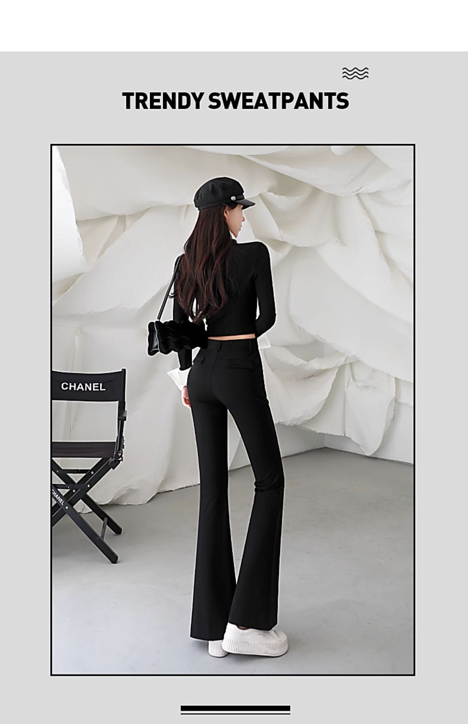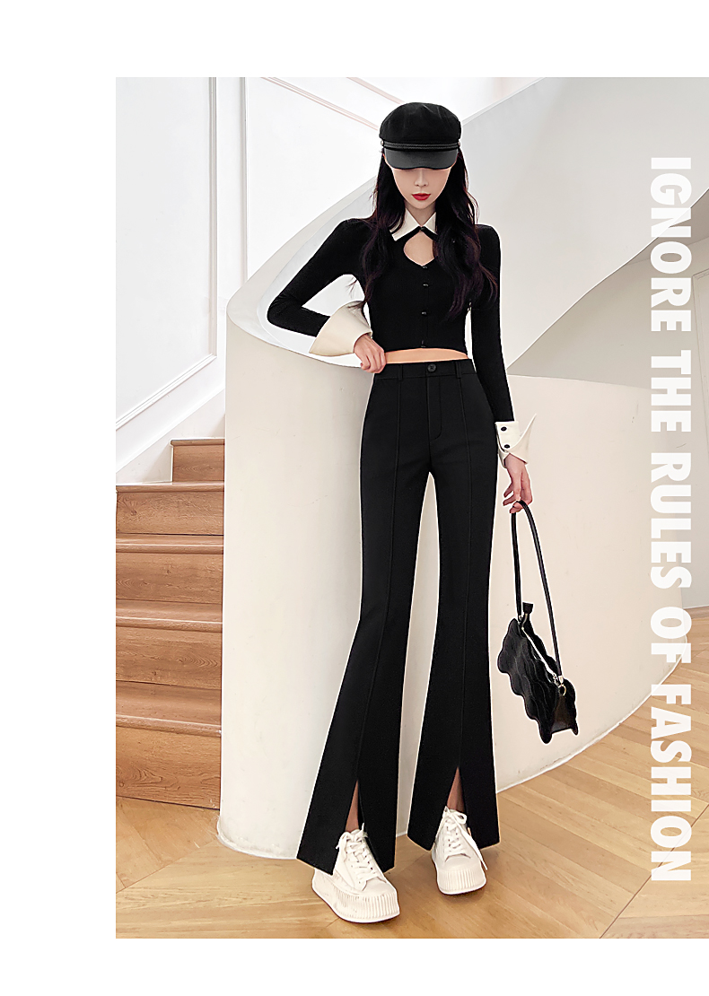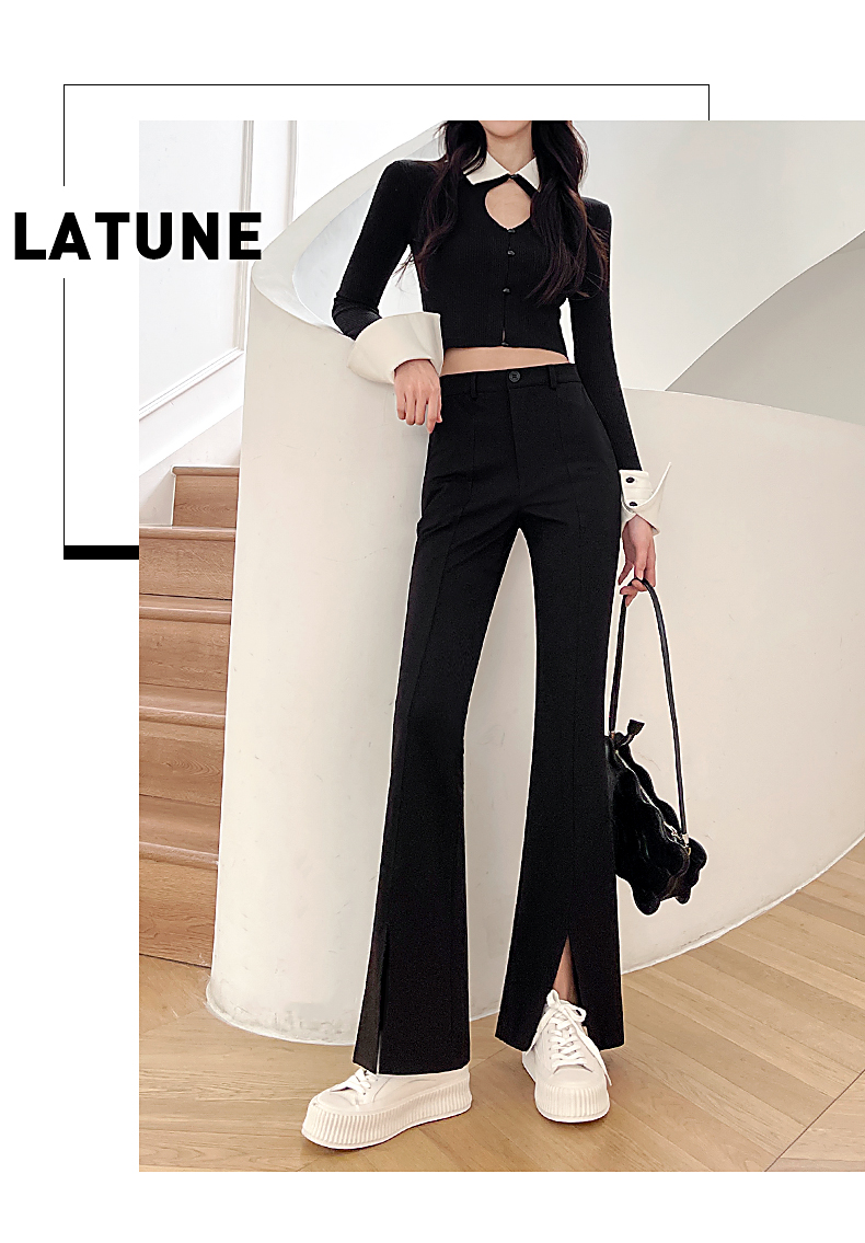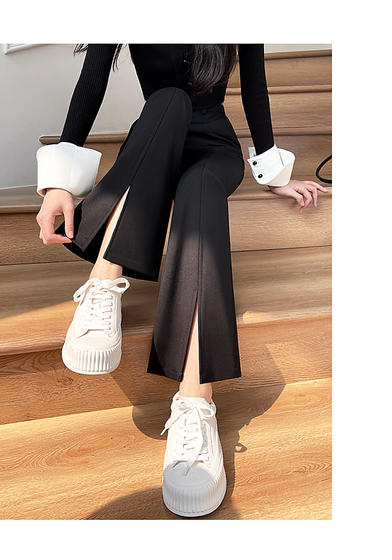 喇叭褲女秋季2025新款高腰顯瘦修身高級感垂感黑色西裝開叉微喇褲