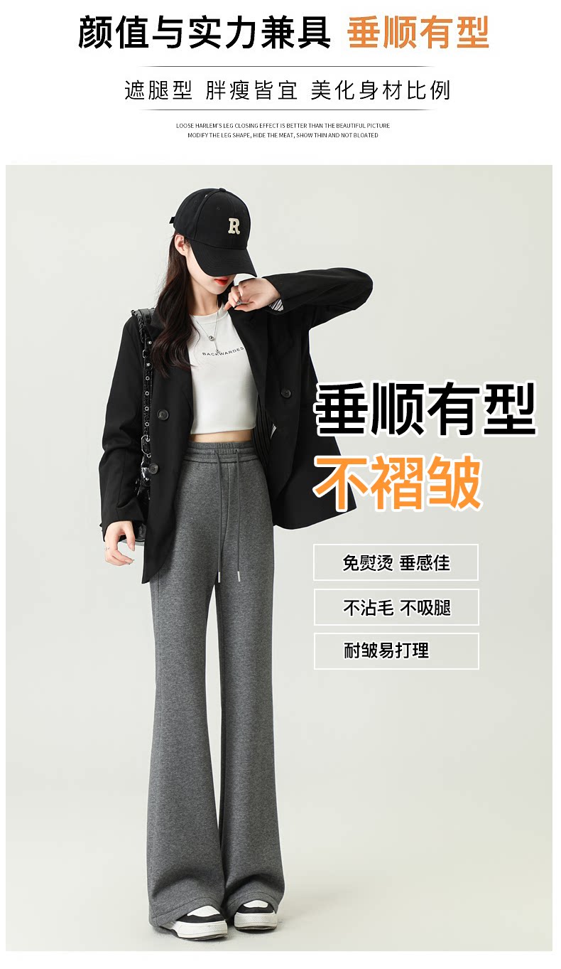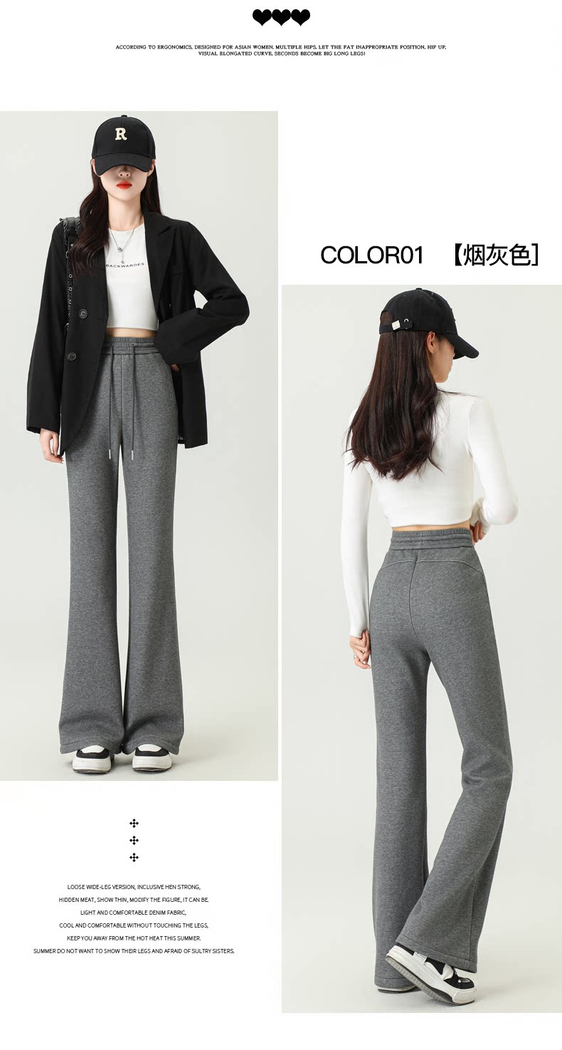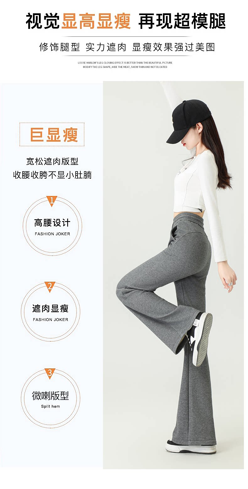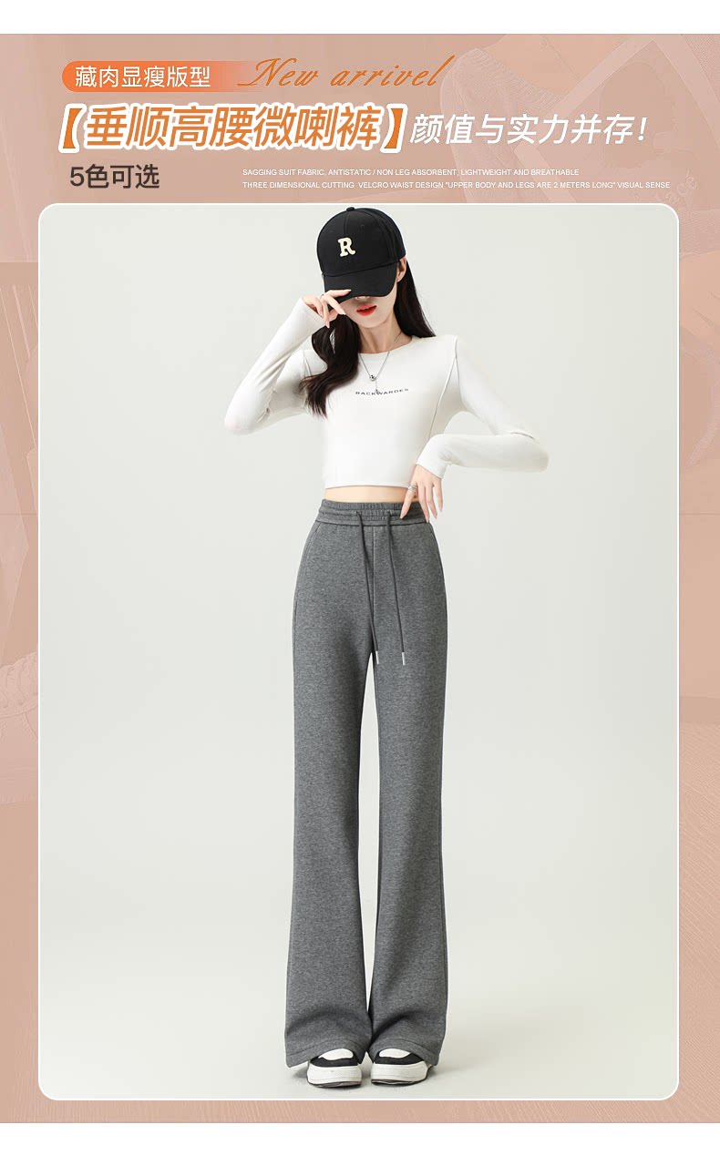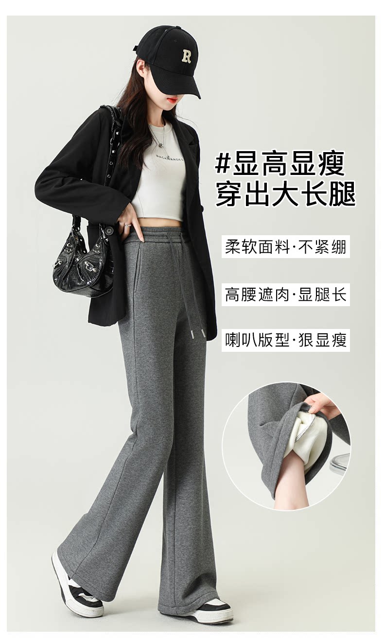 拉夏貝爾灰色喇叭褲女春秋2026新款高腰休閒瑜珈冬加絨微喇運動褲