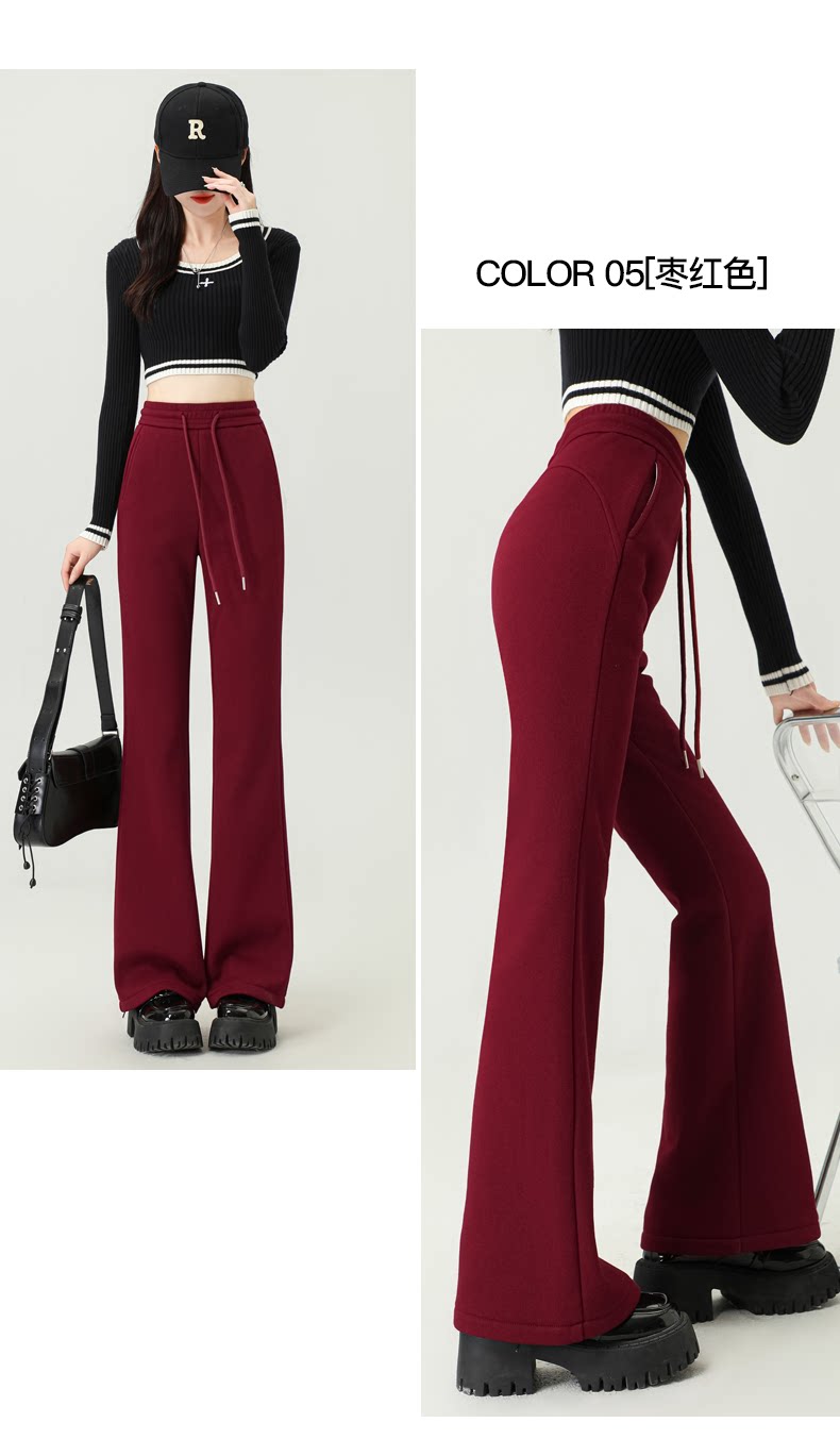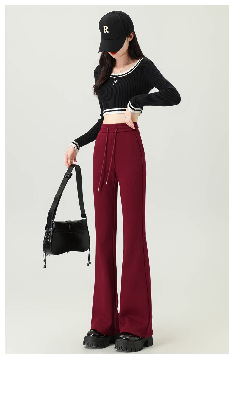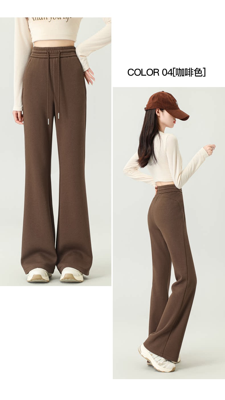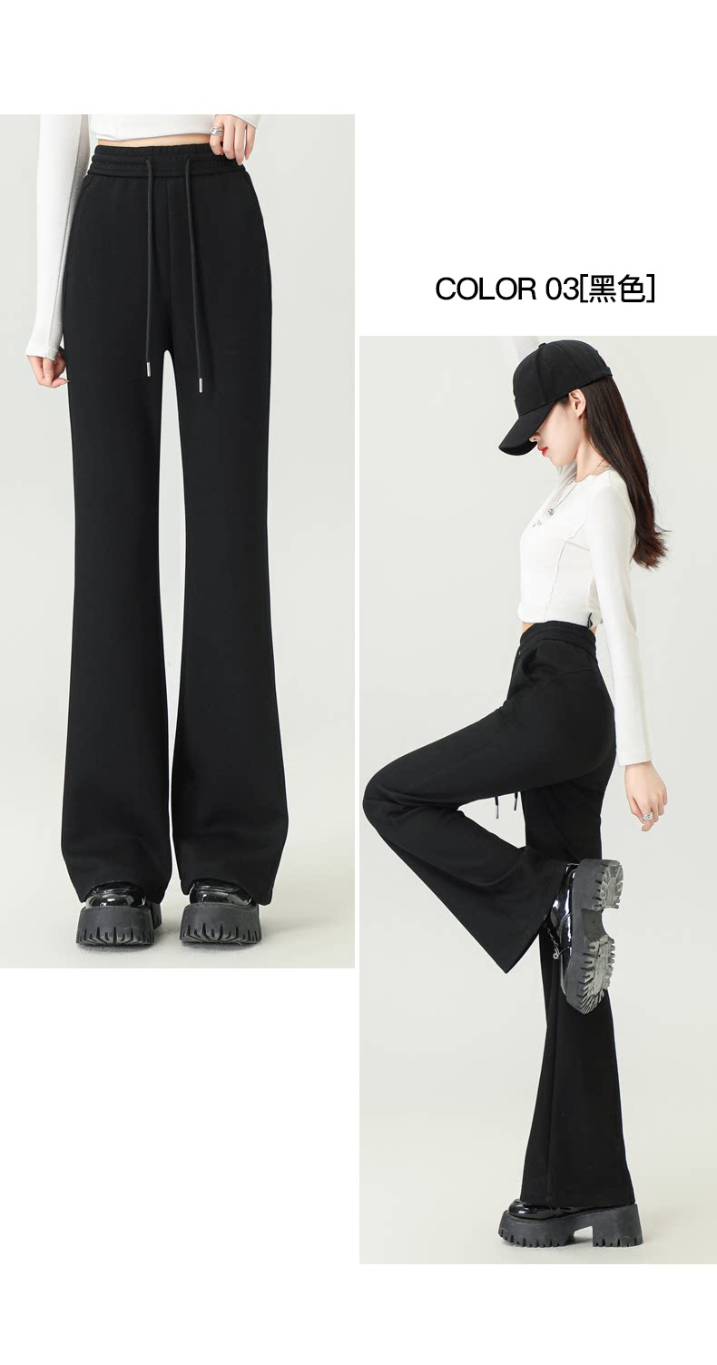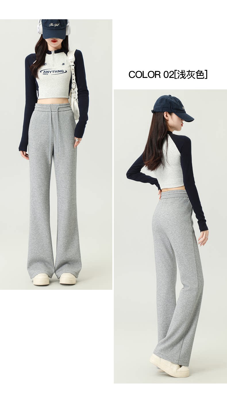 拉夏貝爾灰色喇叭褲女春秋2026新款高腰休閒瑜珈冬加絨微喇運動褲