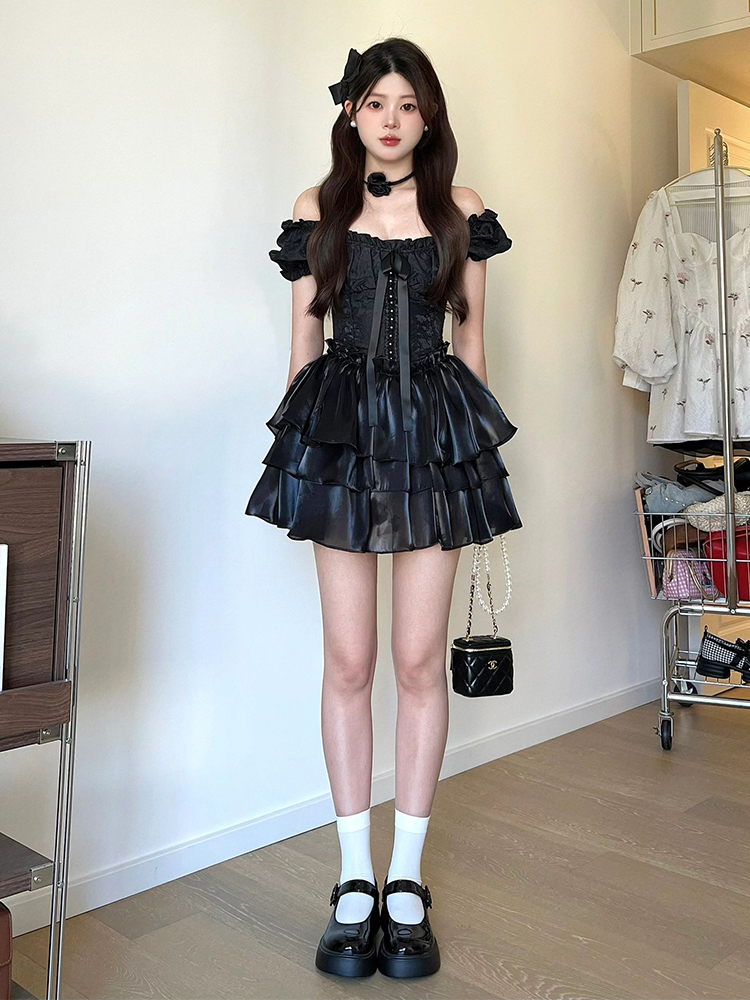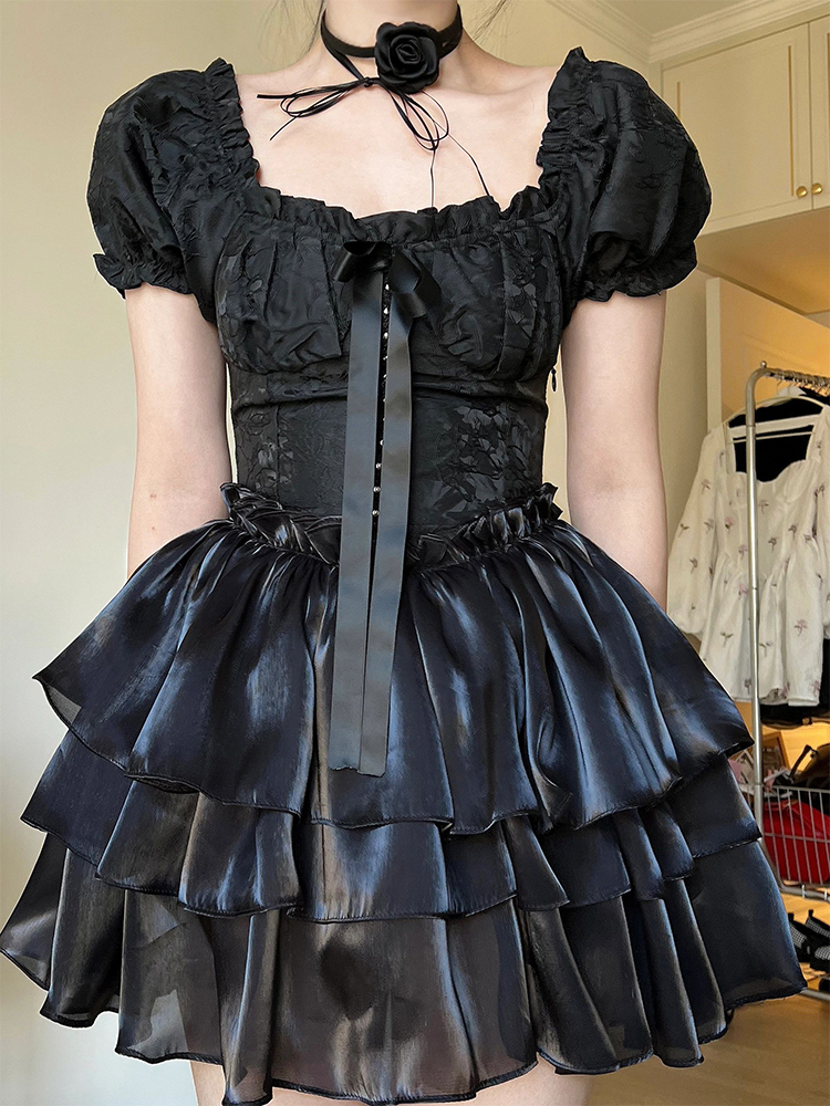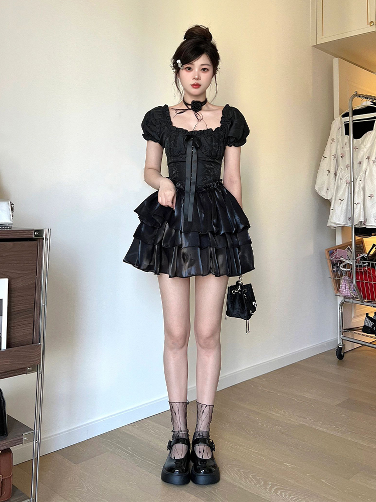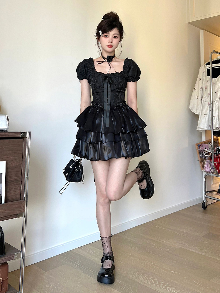 胖mm法式純欲高級感泡泡袖連衣裙夏大碼甜辣妹收腰公主蛋糕蓬蓬裙