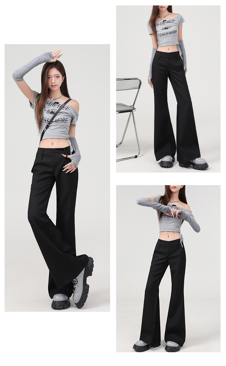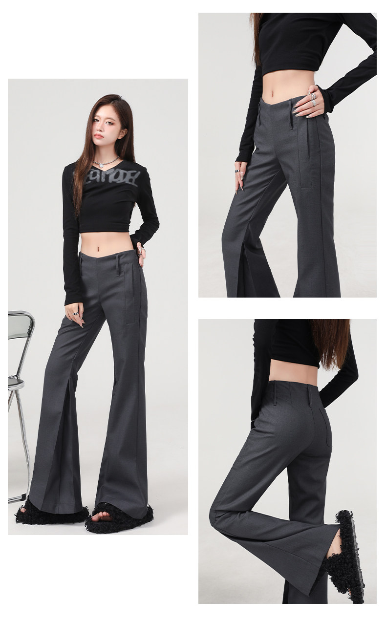 灰色辣妹低腰微喇休閒褲女2026年春季新款修身顯瘦垂感西裝褲子女