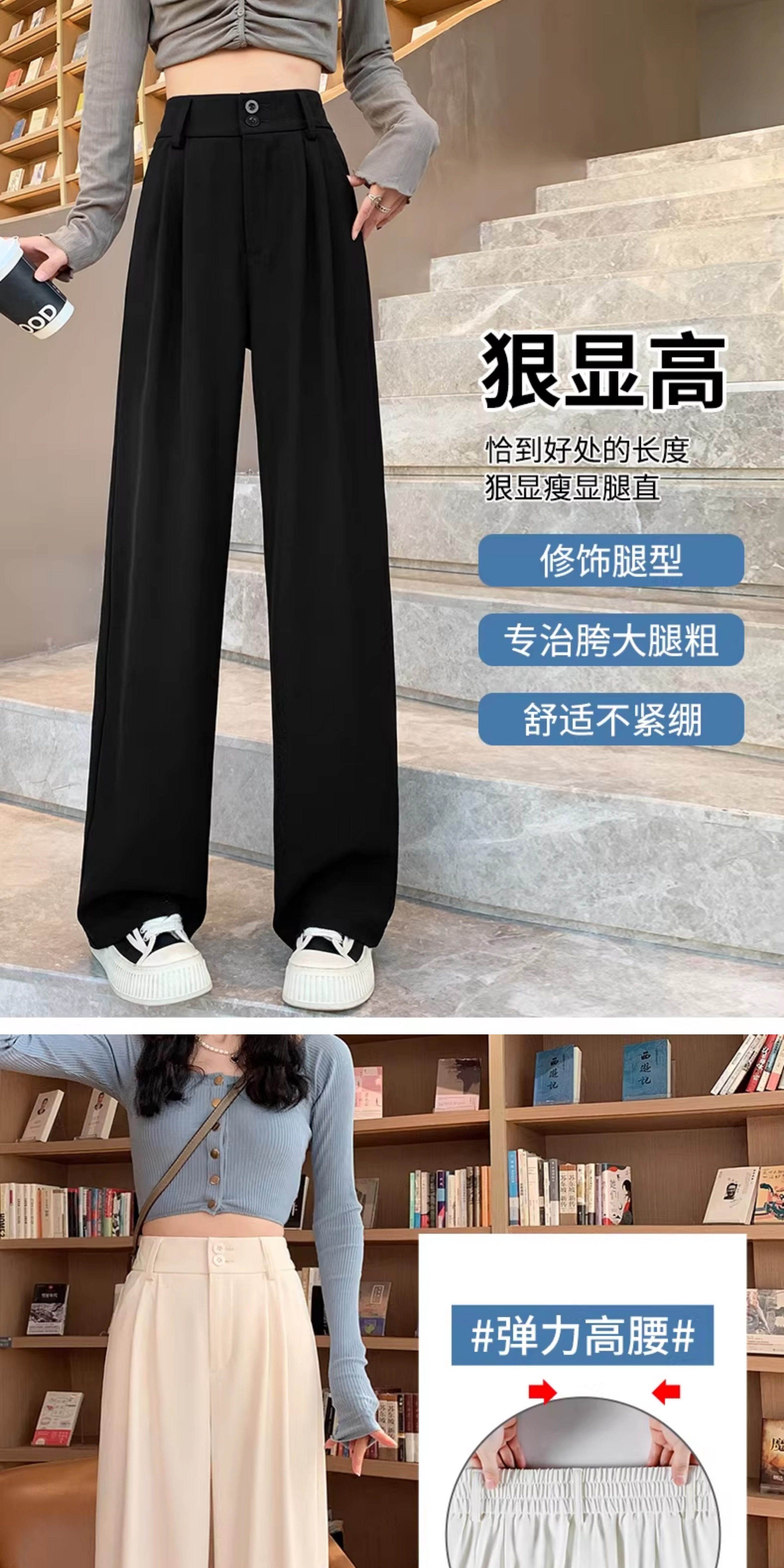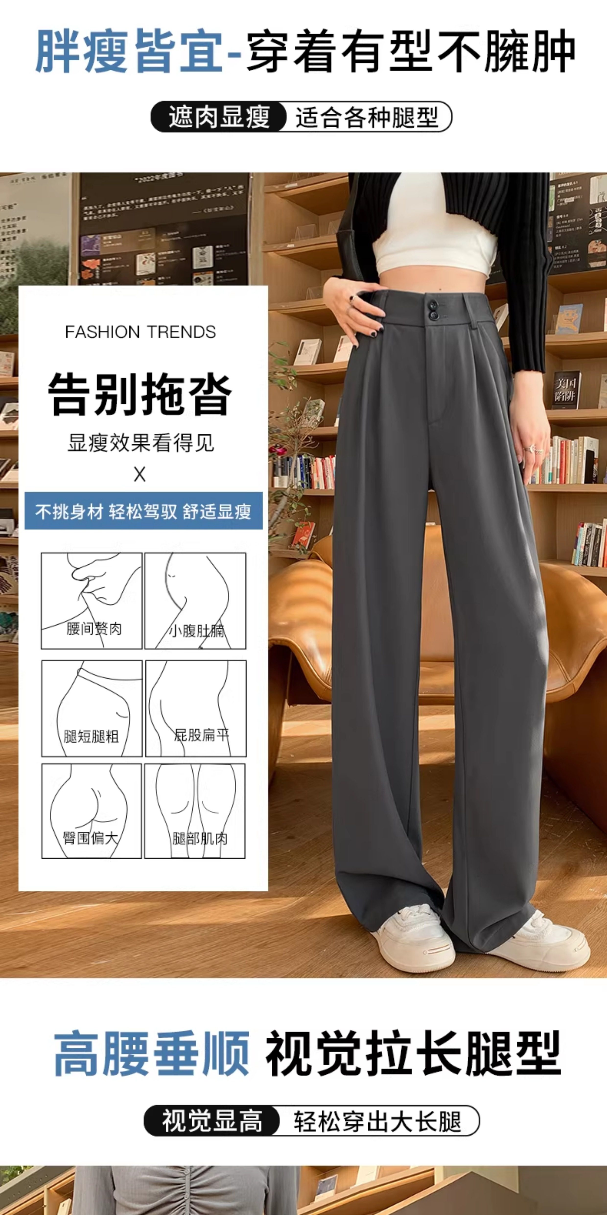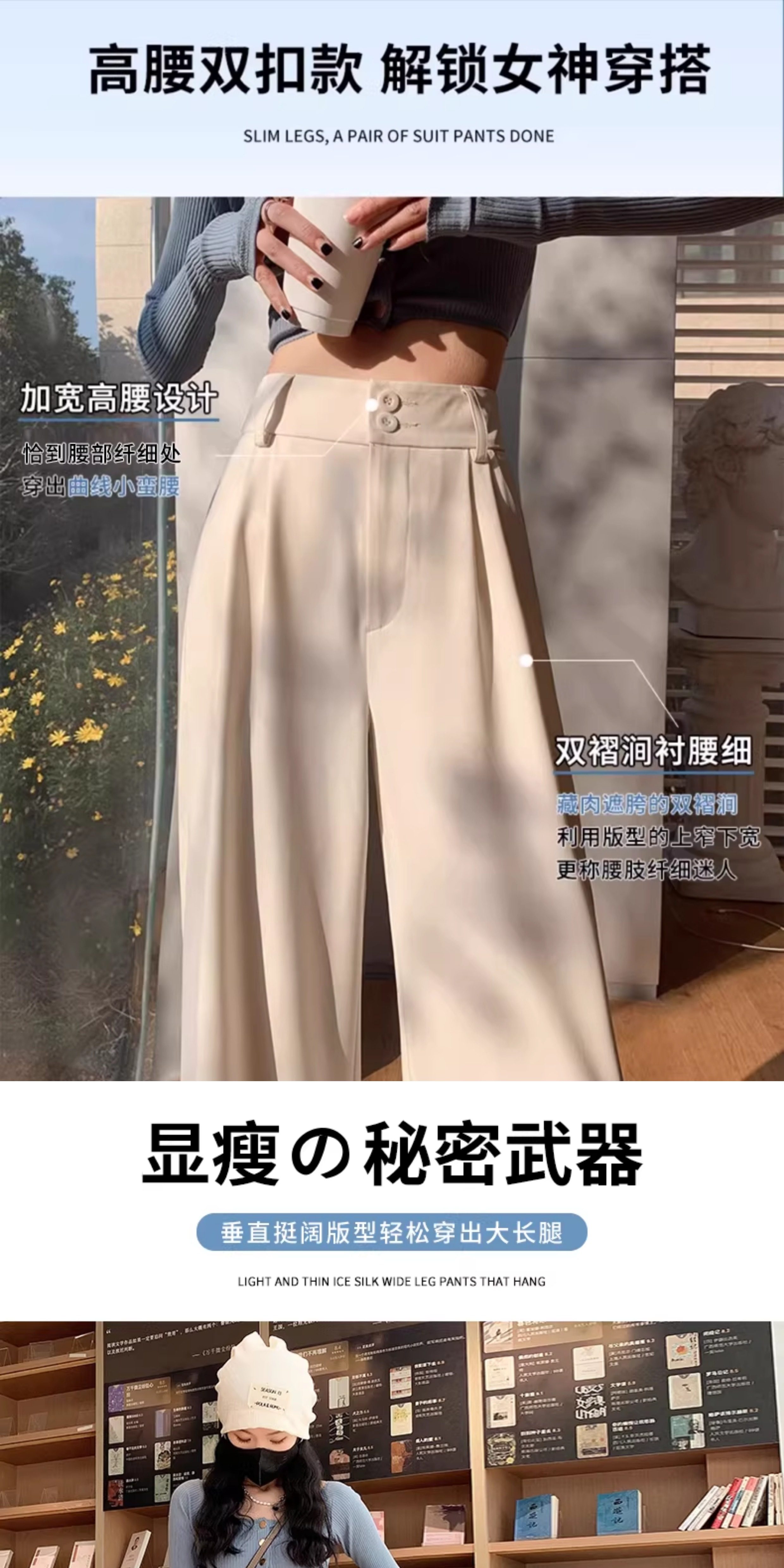 西裝褲女2026新款春秋薄款垂順質感風休閒直筒褲白色濶腿褲子夏季