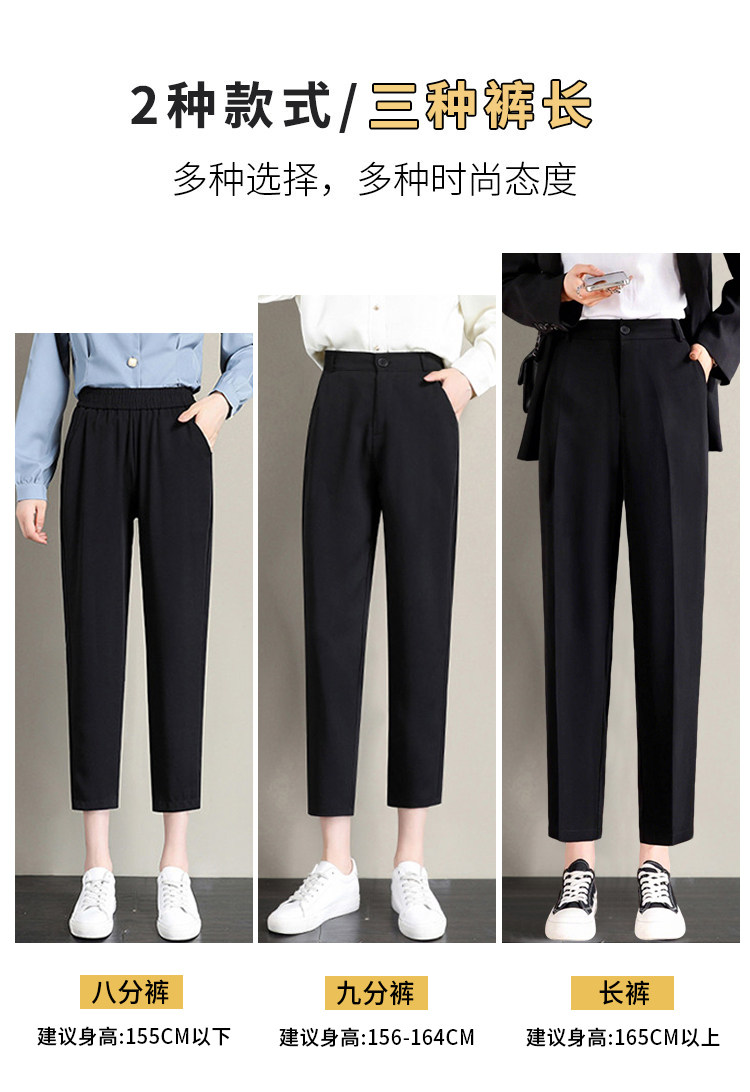 八分小個子哈倫褲女夏季薄款黑色西裝褲冰絲雪紡菸琯九分蘿蔔西褲