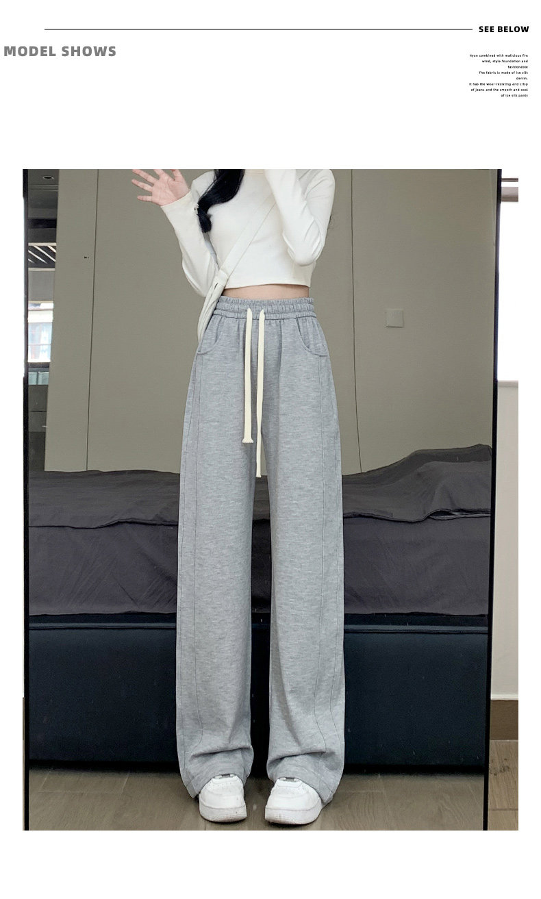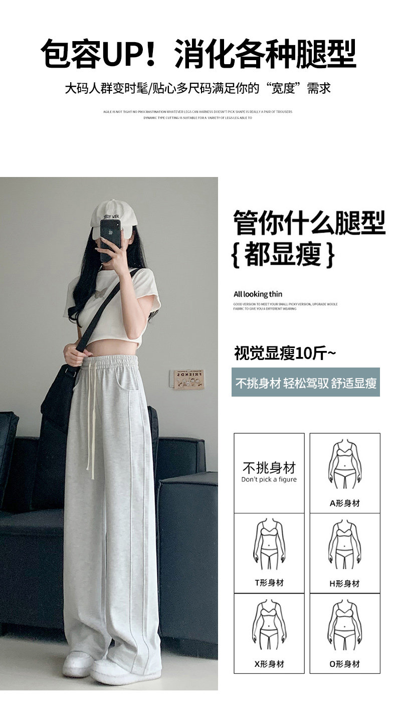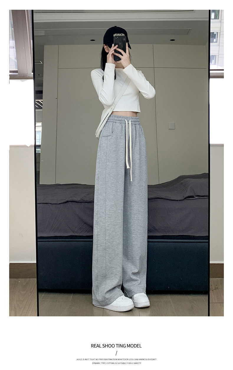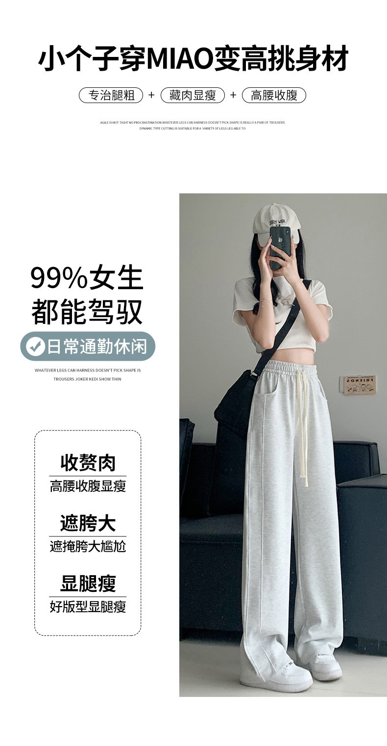灰色運動褲女春秋2026新款高腰寬鬆顯瘦濶腿褲小個子休閒加絨衛褲