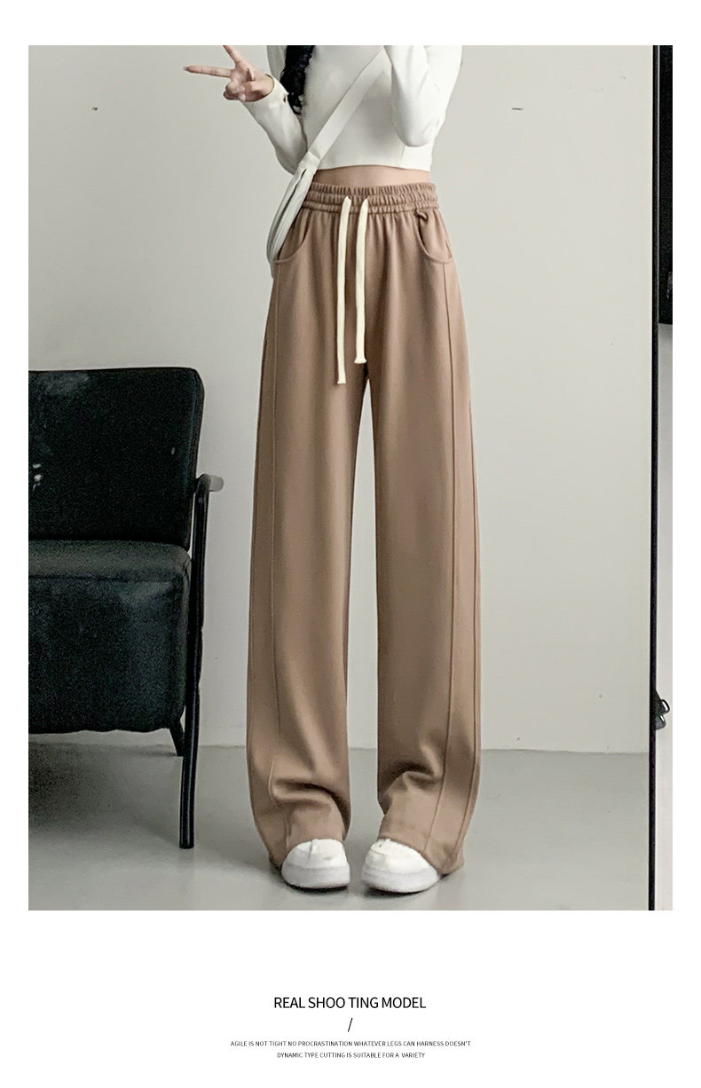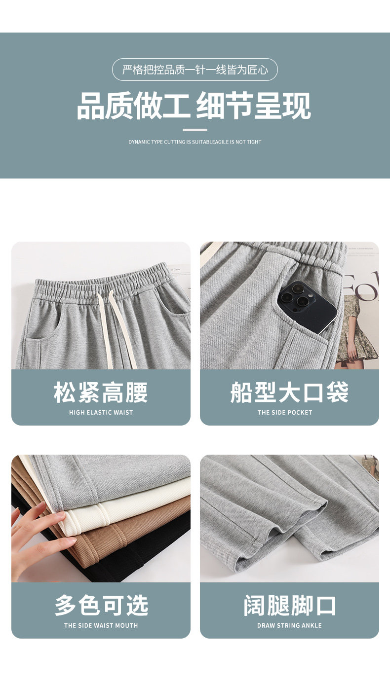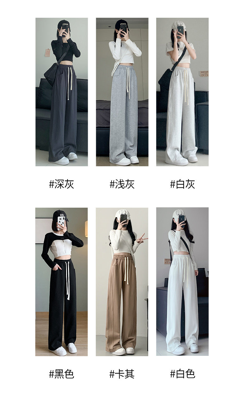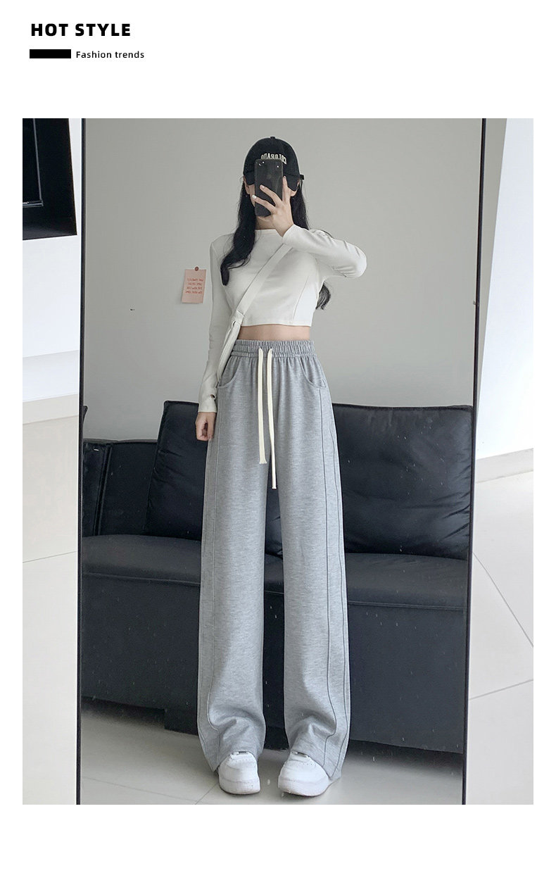 灰色運動褲女春秋2026新款高腰寬鬆顯瘦濶腿褲小個子休閒加絨衛褲