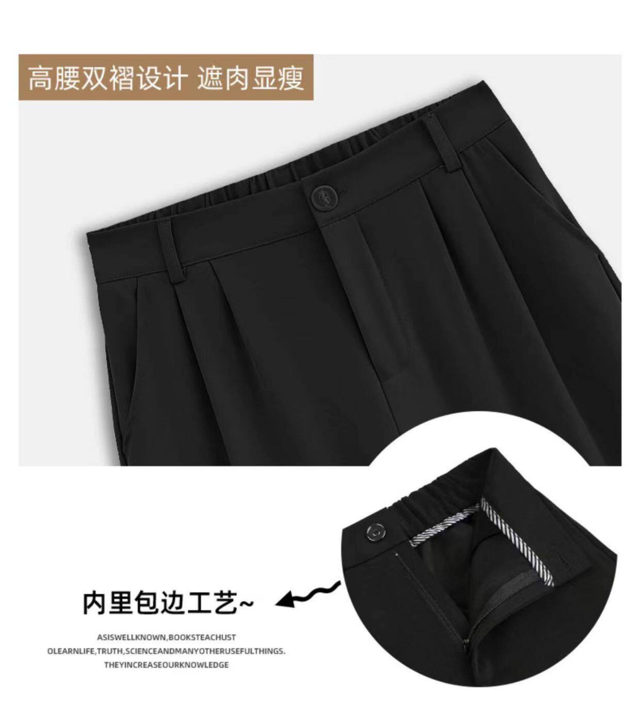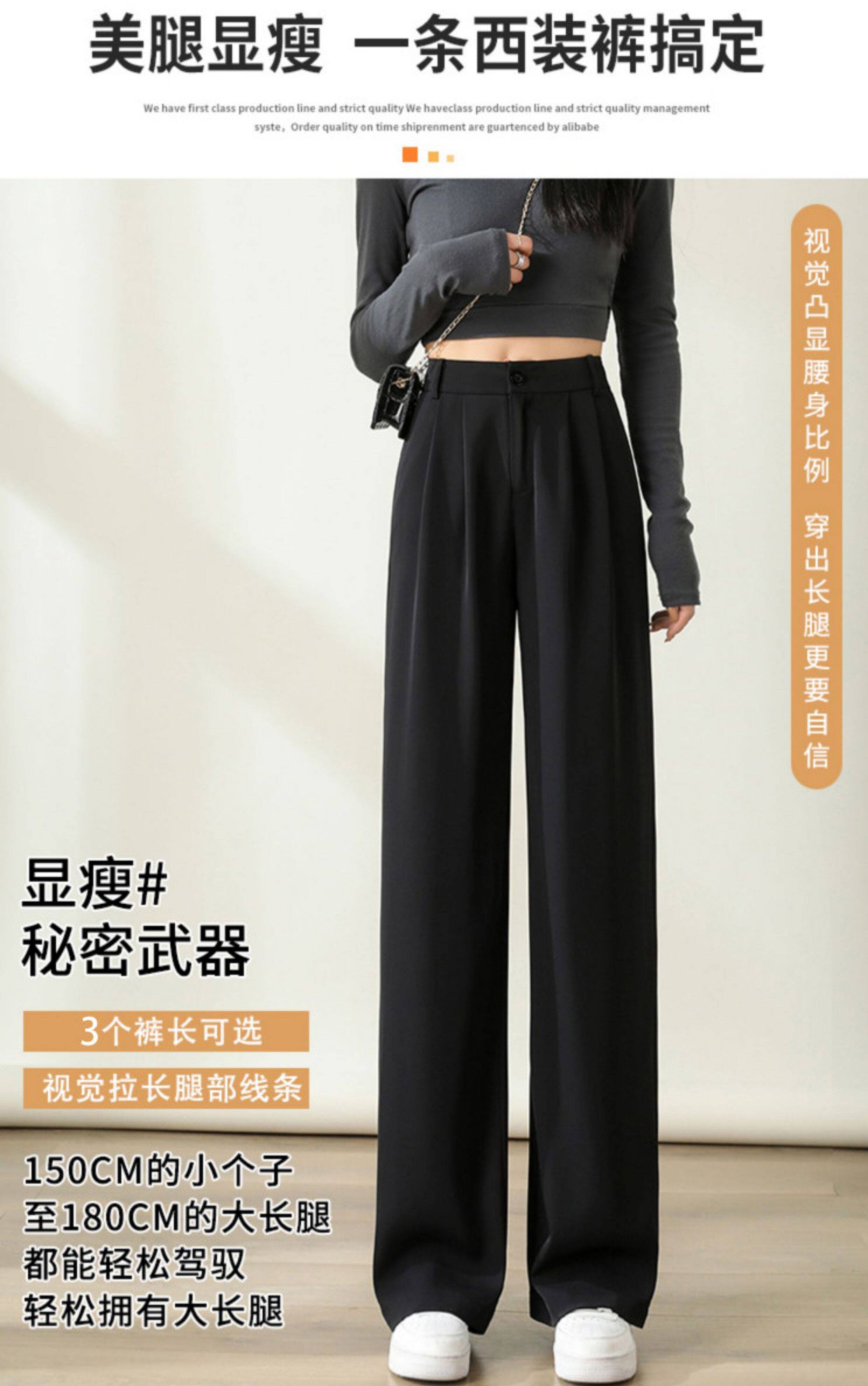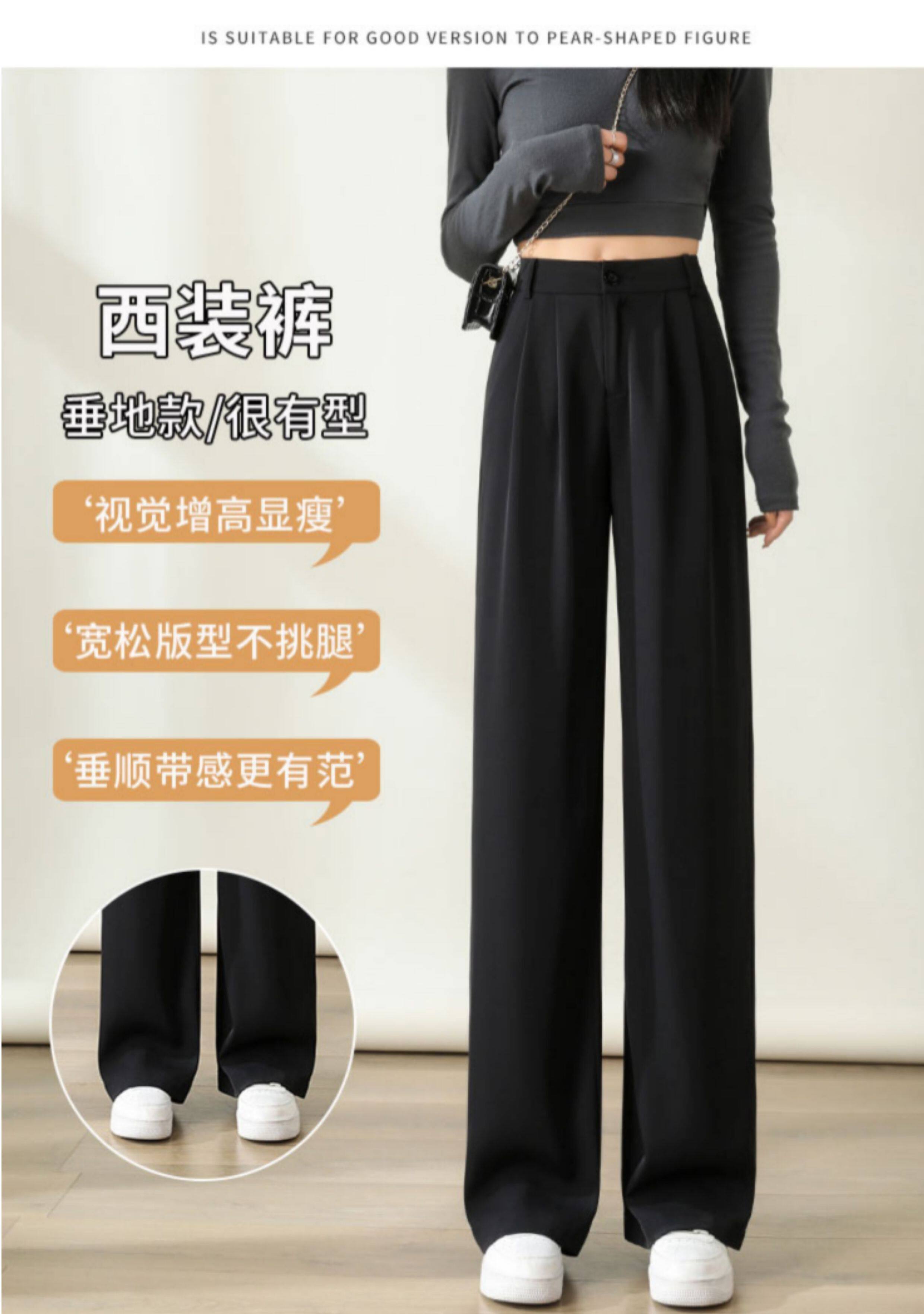 黑色窄版濶腿褲女春秋款高腰垂感直筒拖地褲夏季顯瘦小個子西裝褲