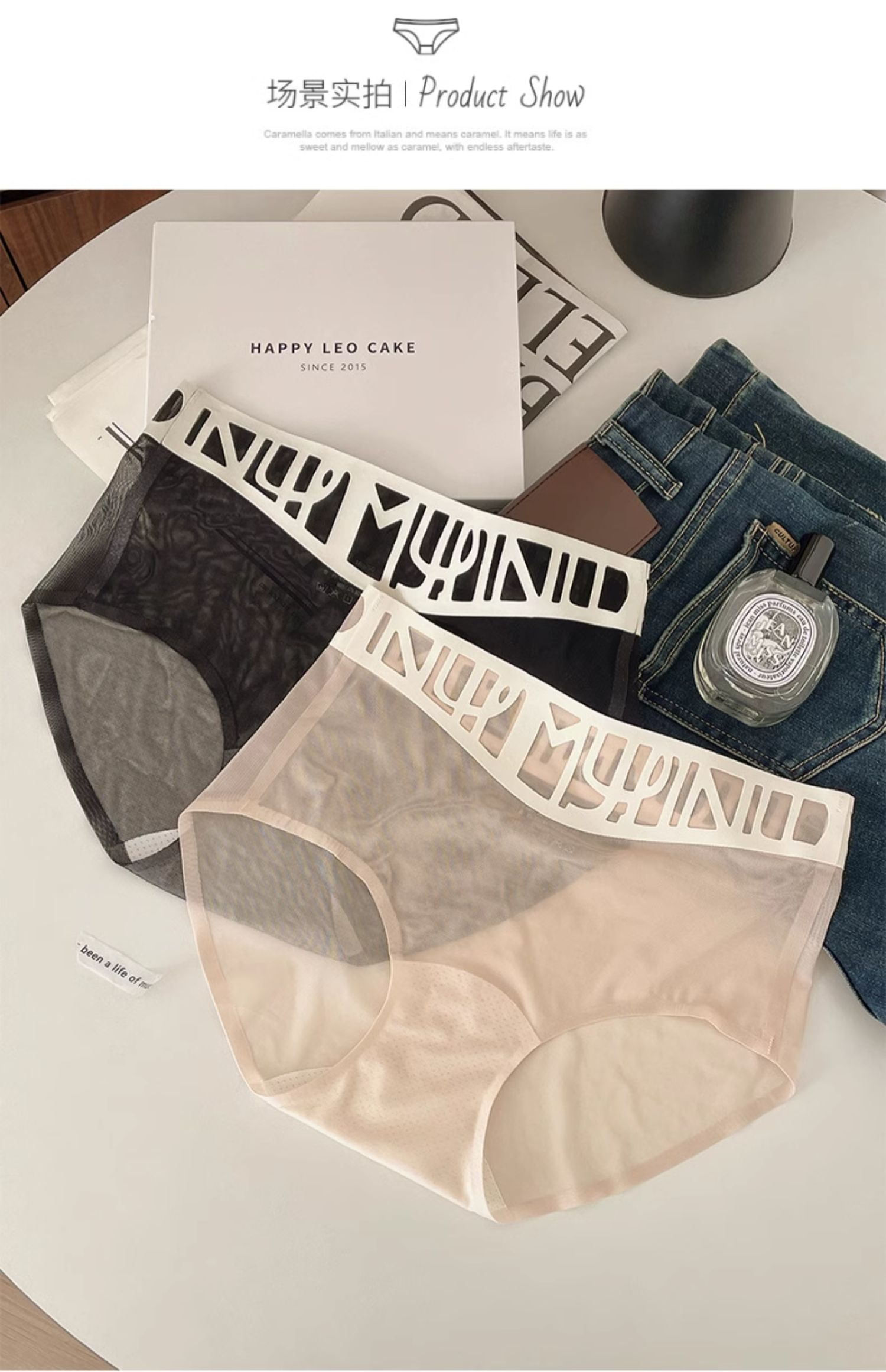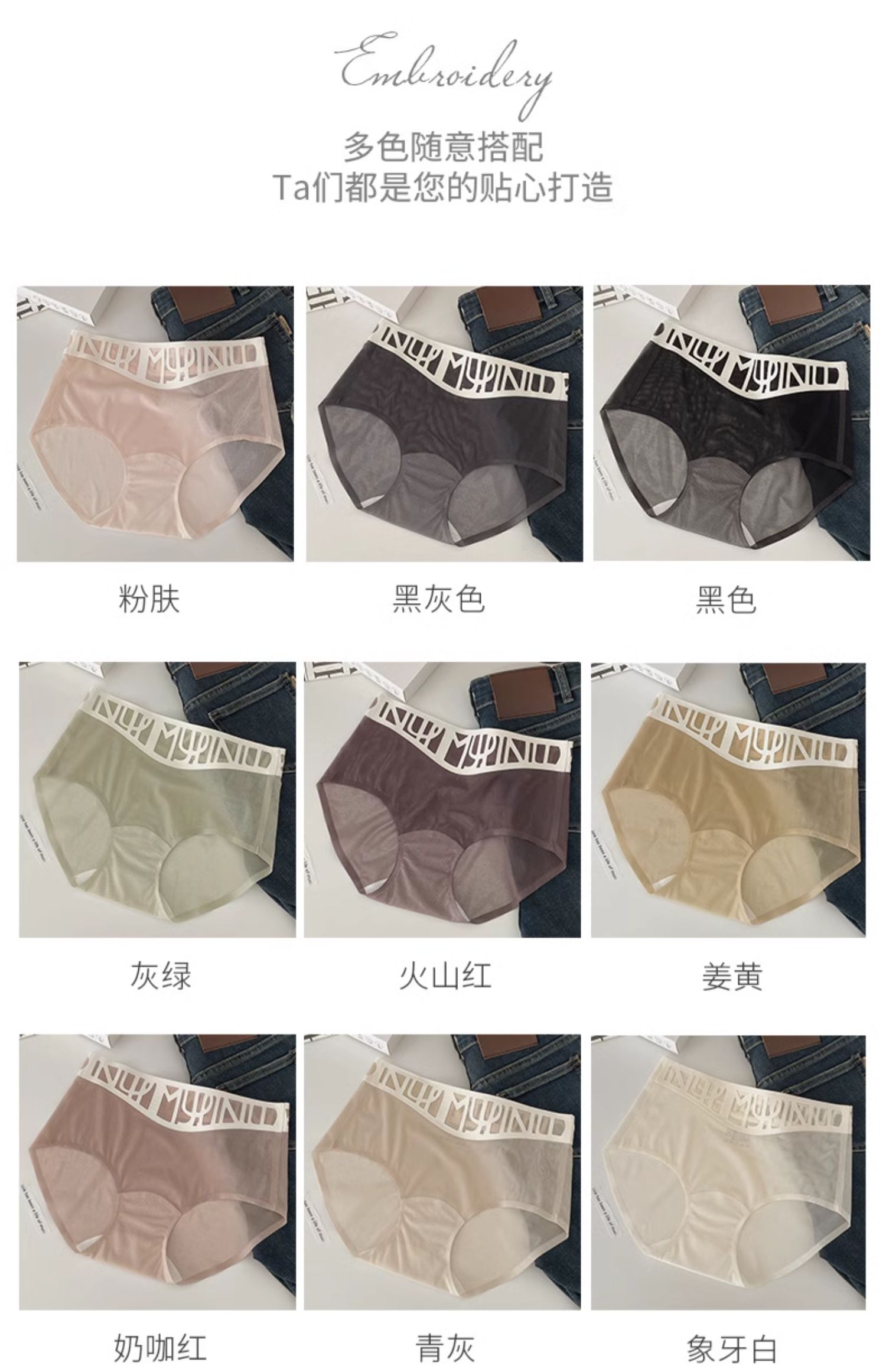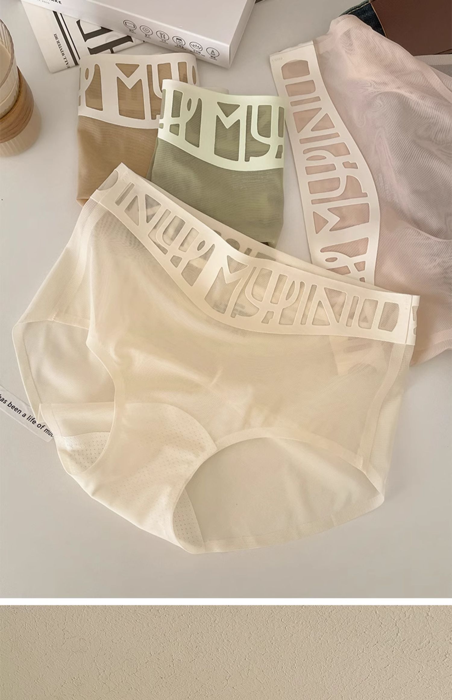 超薄空氣裸感冰絲面膜內褲女中高腰速乾無痕網紗半透明包臀三角褲