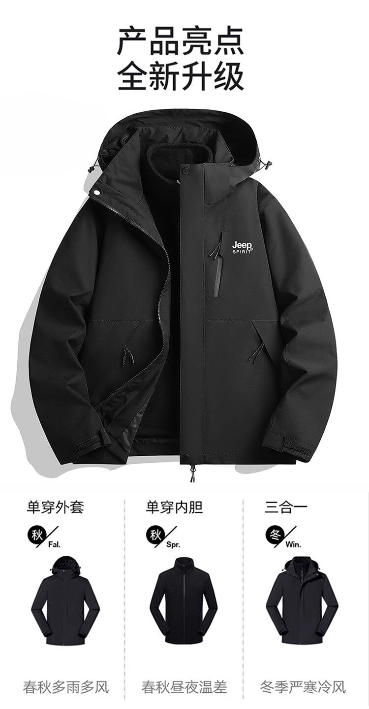 JEEP沖鋒衣女2026春秋季新款戶外三合一可拆卸冬天徒步旅行外套男