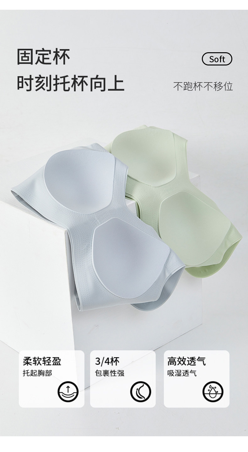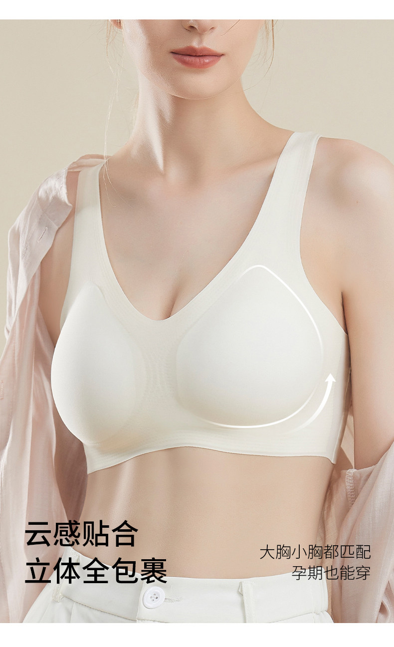 婧麒女士內衣大胸顯小聚攏無痕背心薄款無鋼圈孕婦運動文胸罩新款