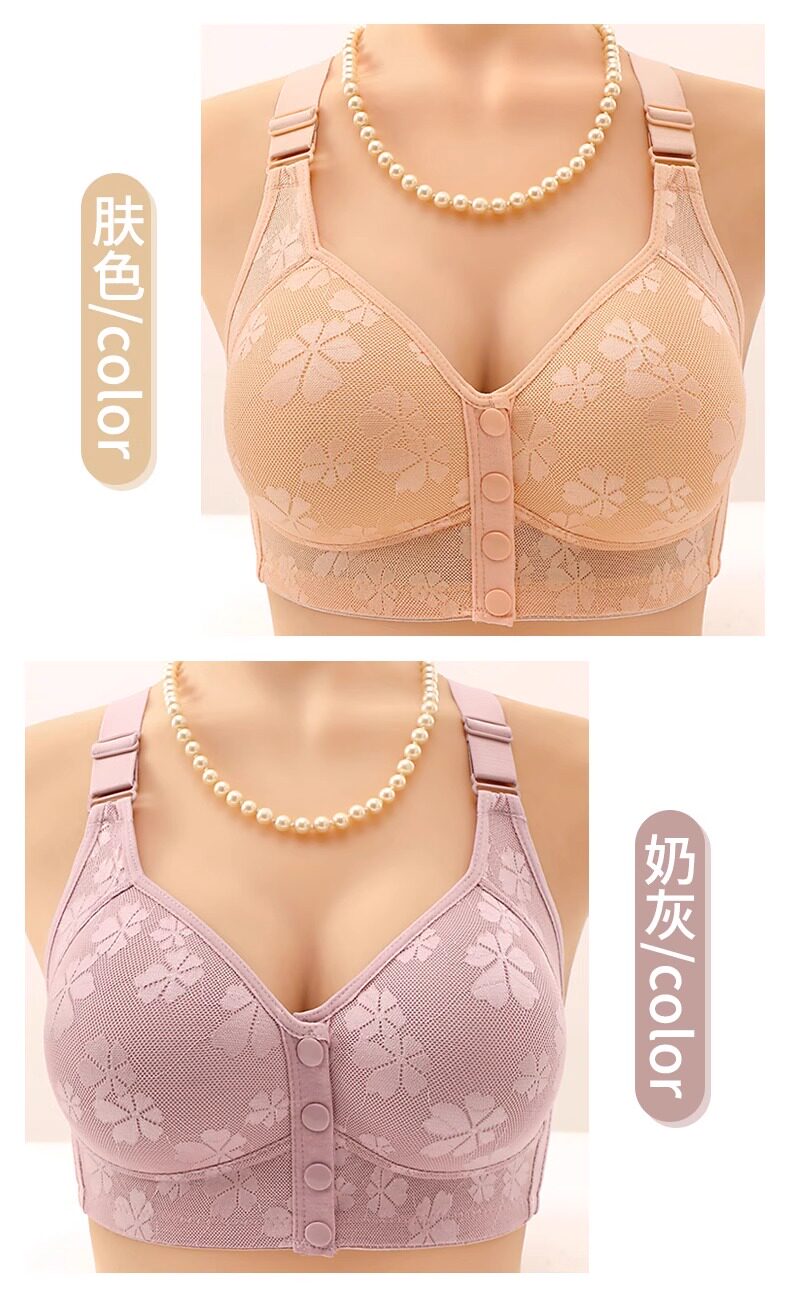 前釦內衣女薄款無鋼圈收副乳防下垂聚攏上托背心式中老年媽媽文胸
