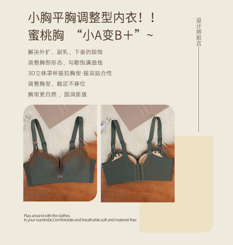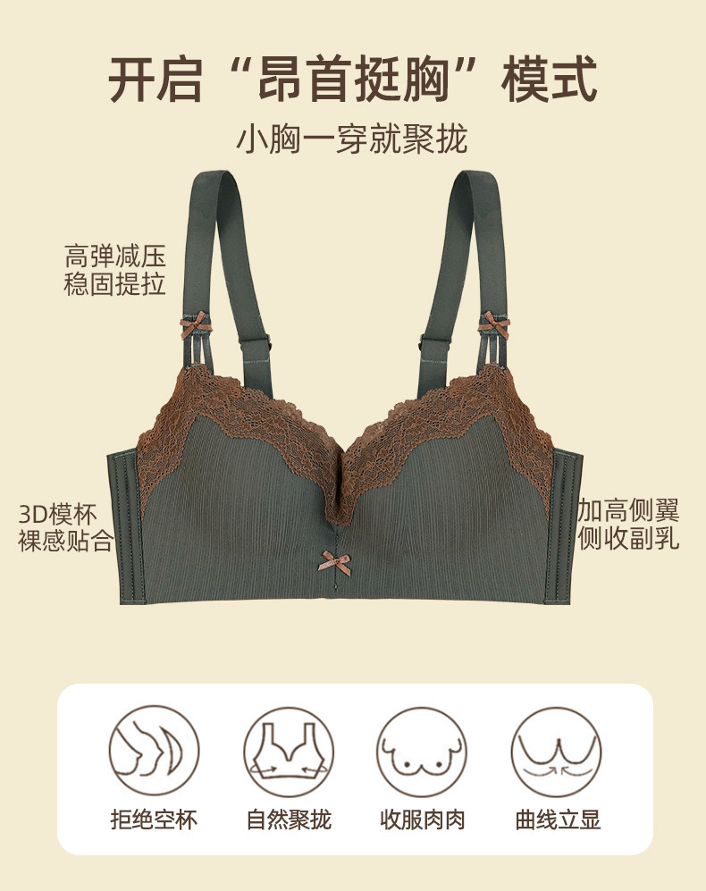 內衣女聚攏小胸3cm加厚顯大無鋼圈文胸收副乳防下垂平胸專用胸罩