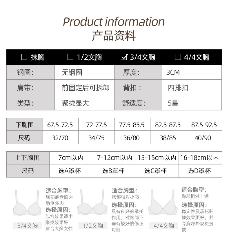 | 罩杯款式 | 3/4罩杯 |