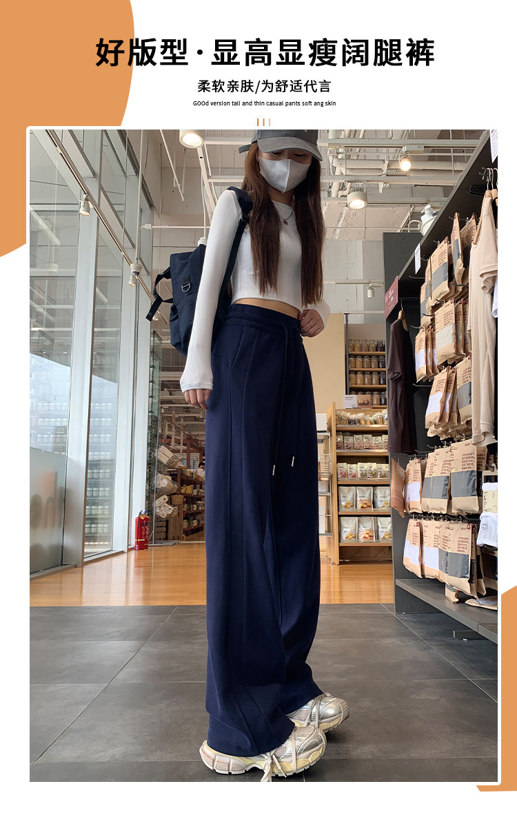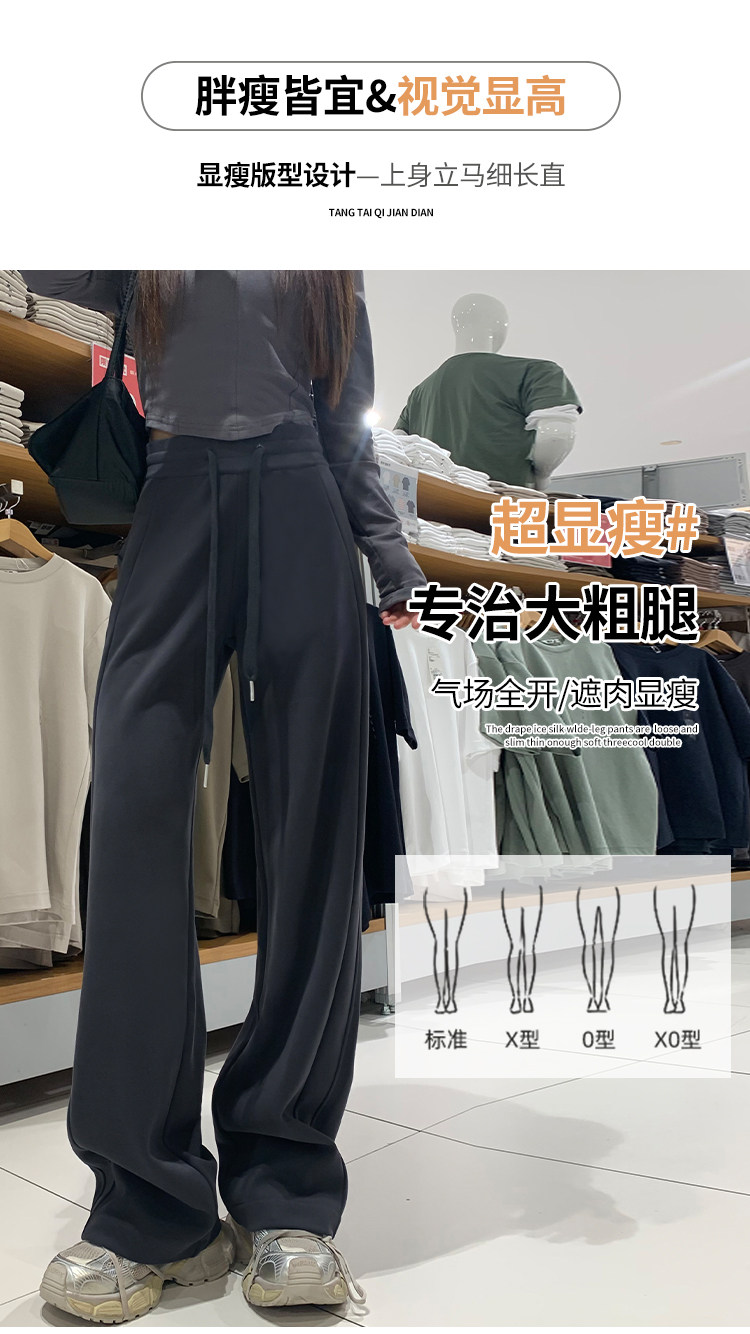 運動褲女秋冬季加絨寬鬆直筒窄版濶腿褲小個子休閒顯瘦加厚衛褲子