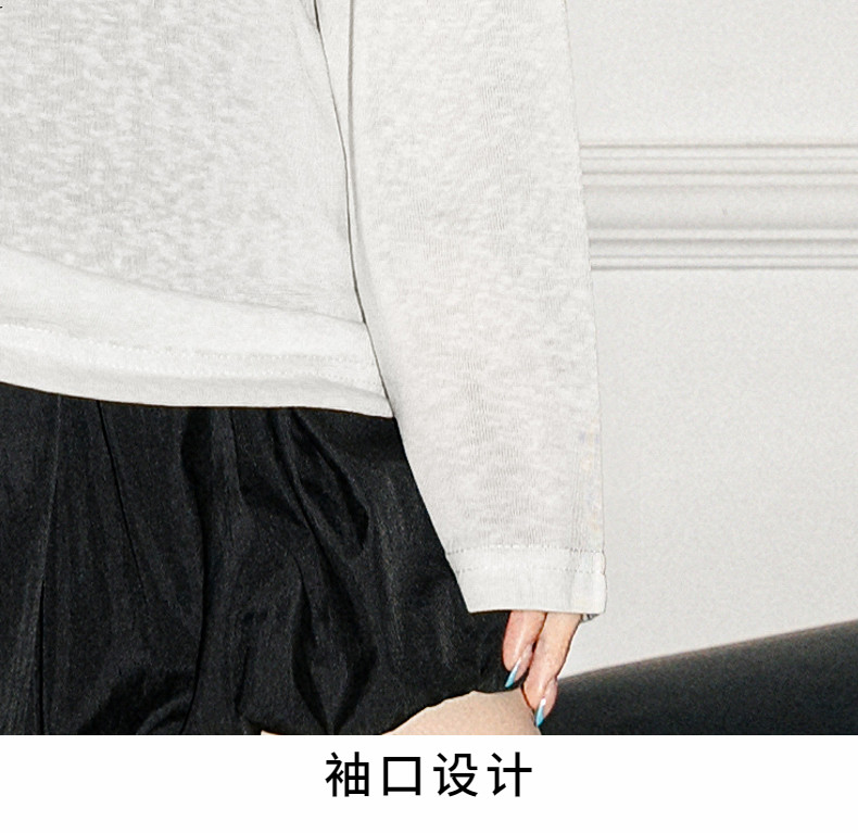 拉夏貝爾韓系印花寬鬆設計感白色防曬罩衫微透t恤女夏季長袖上衣