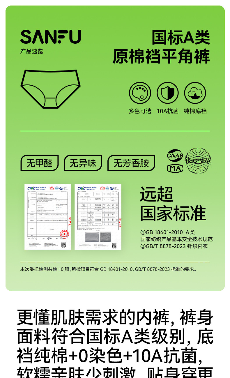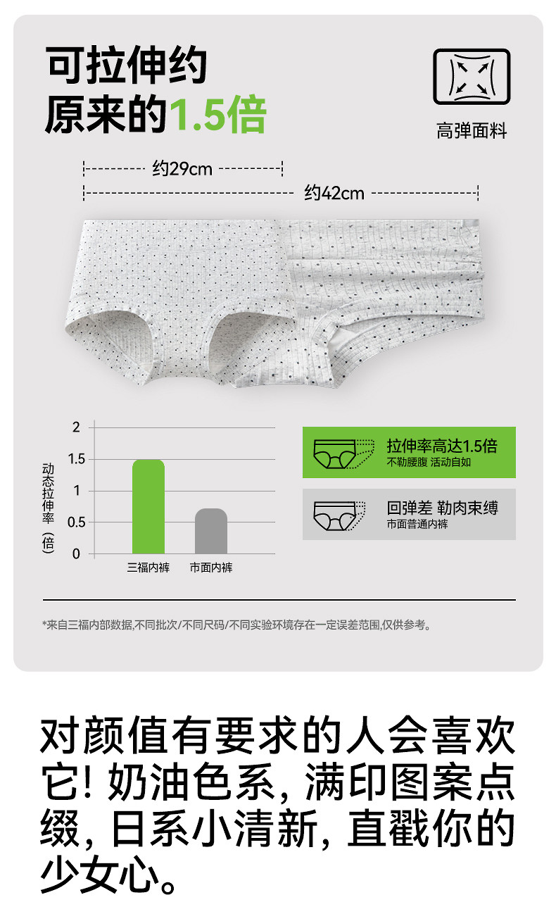 【0染棉更健康】三福舒適中腰內褲加長抗菌底襠平角褲女士2條裝