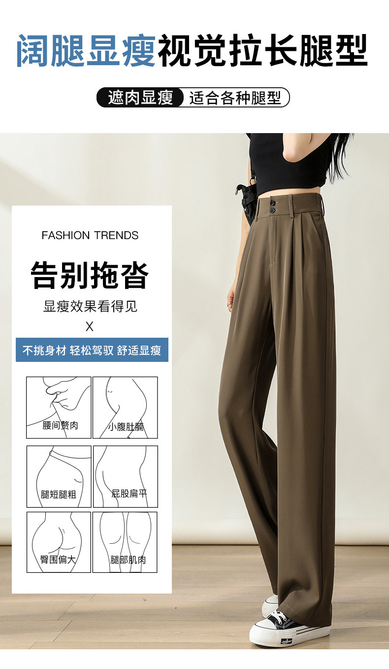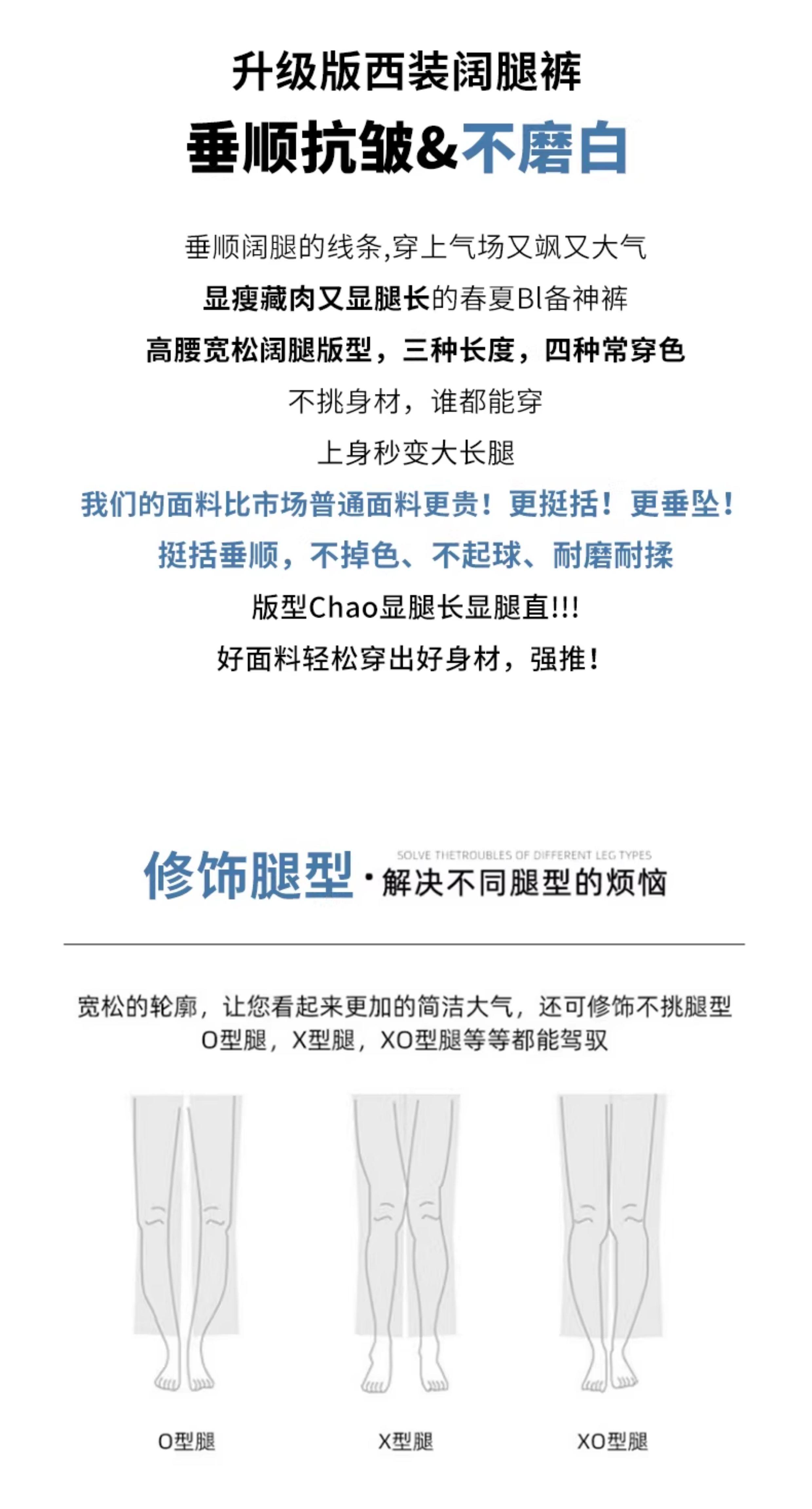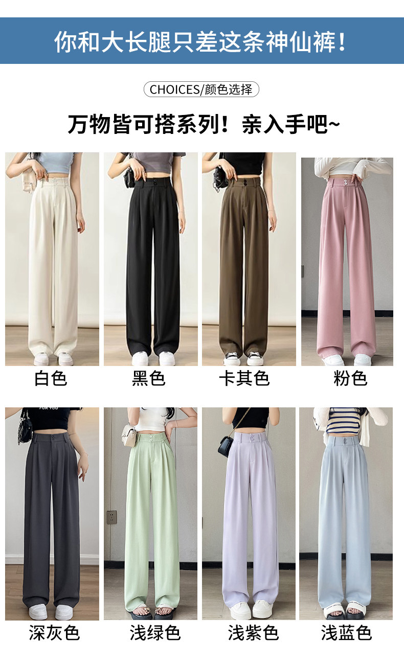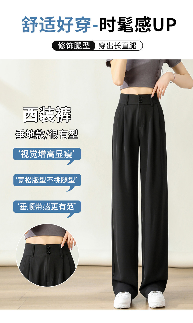 濶腿褲女高腰小個子白色2026新款夏季薄款寬鬆休閒直筒春秋西裝褲