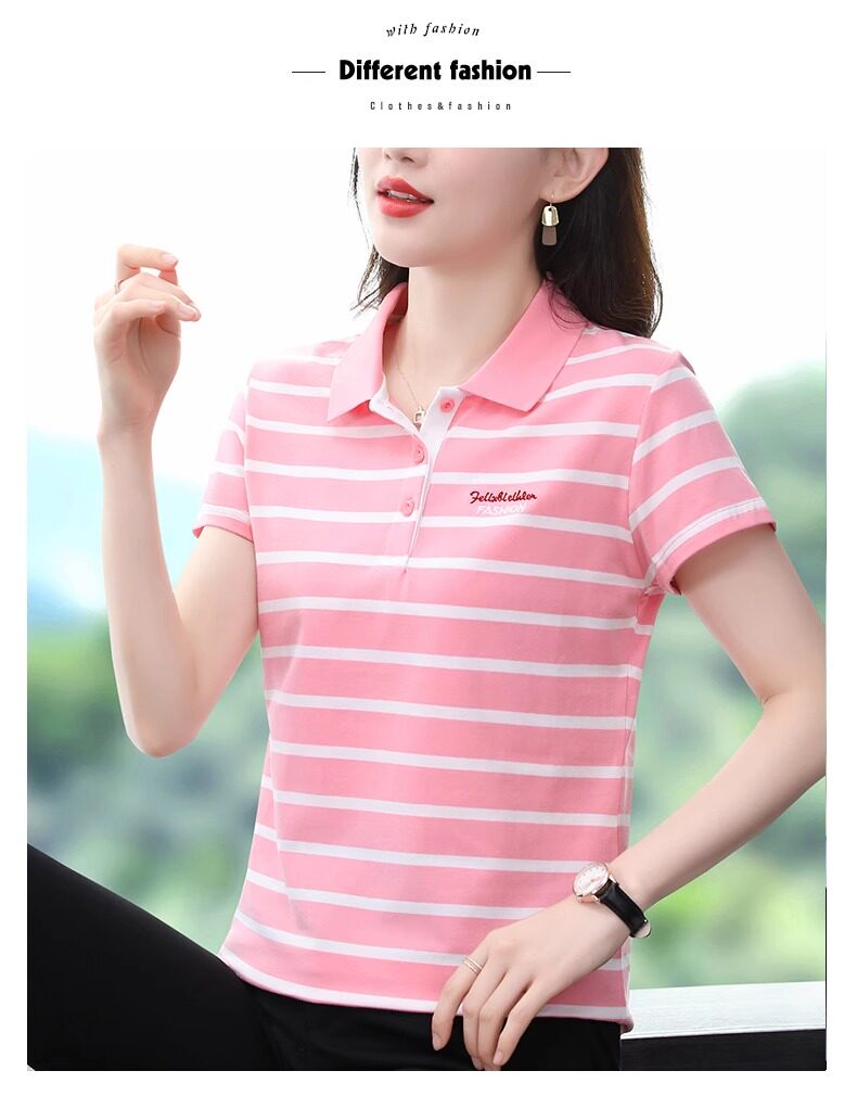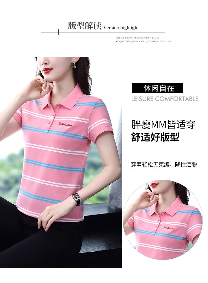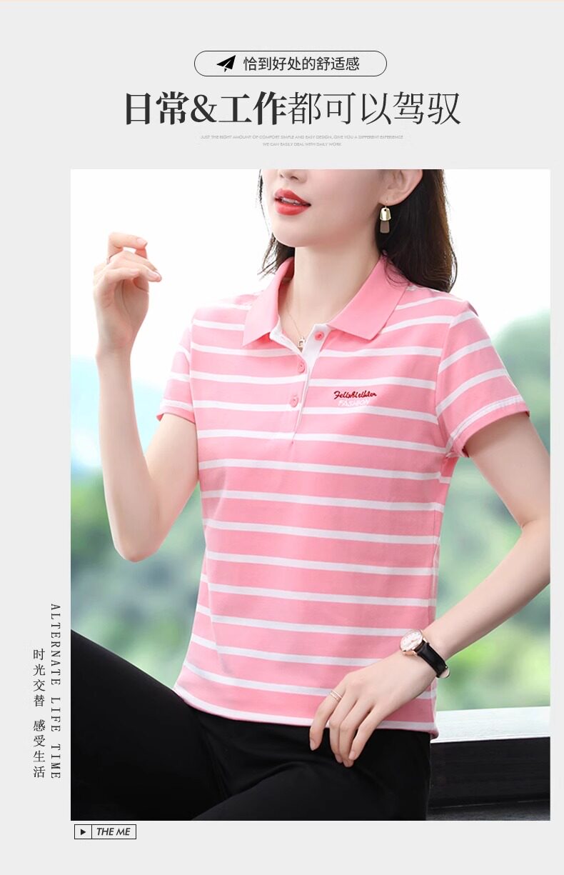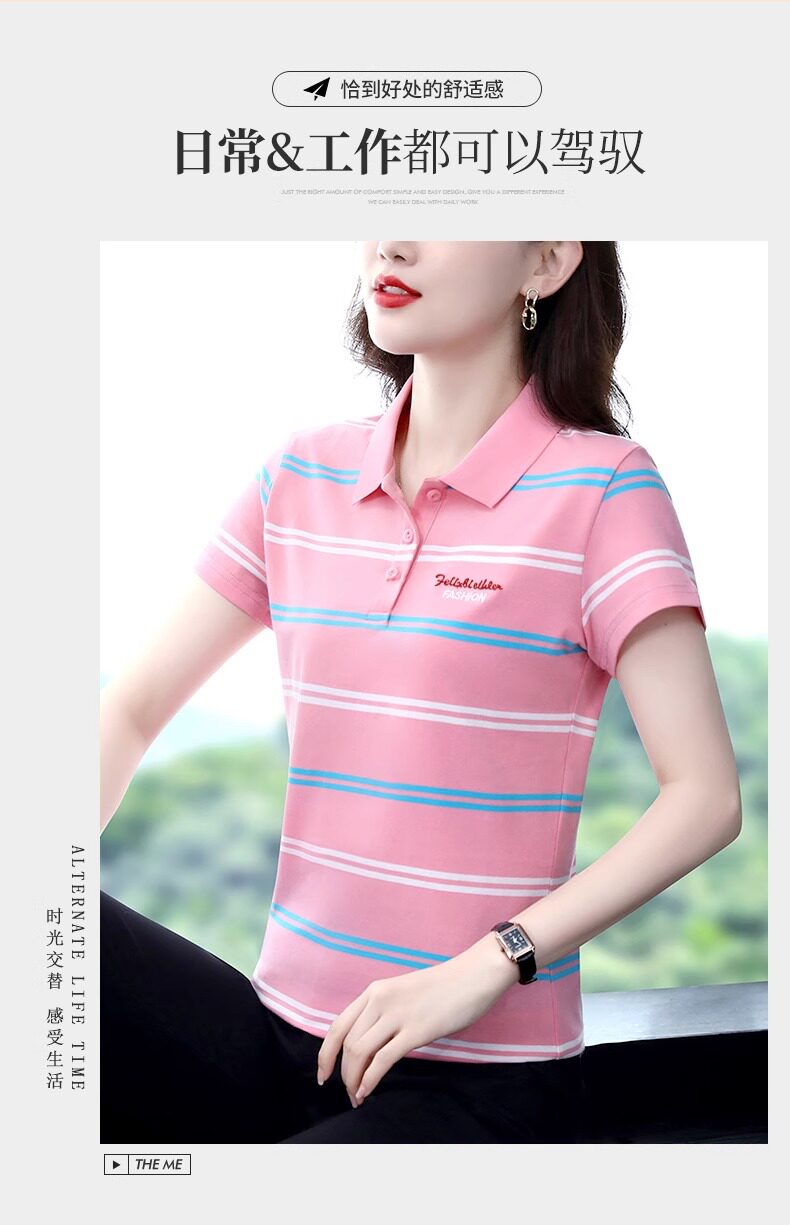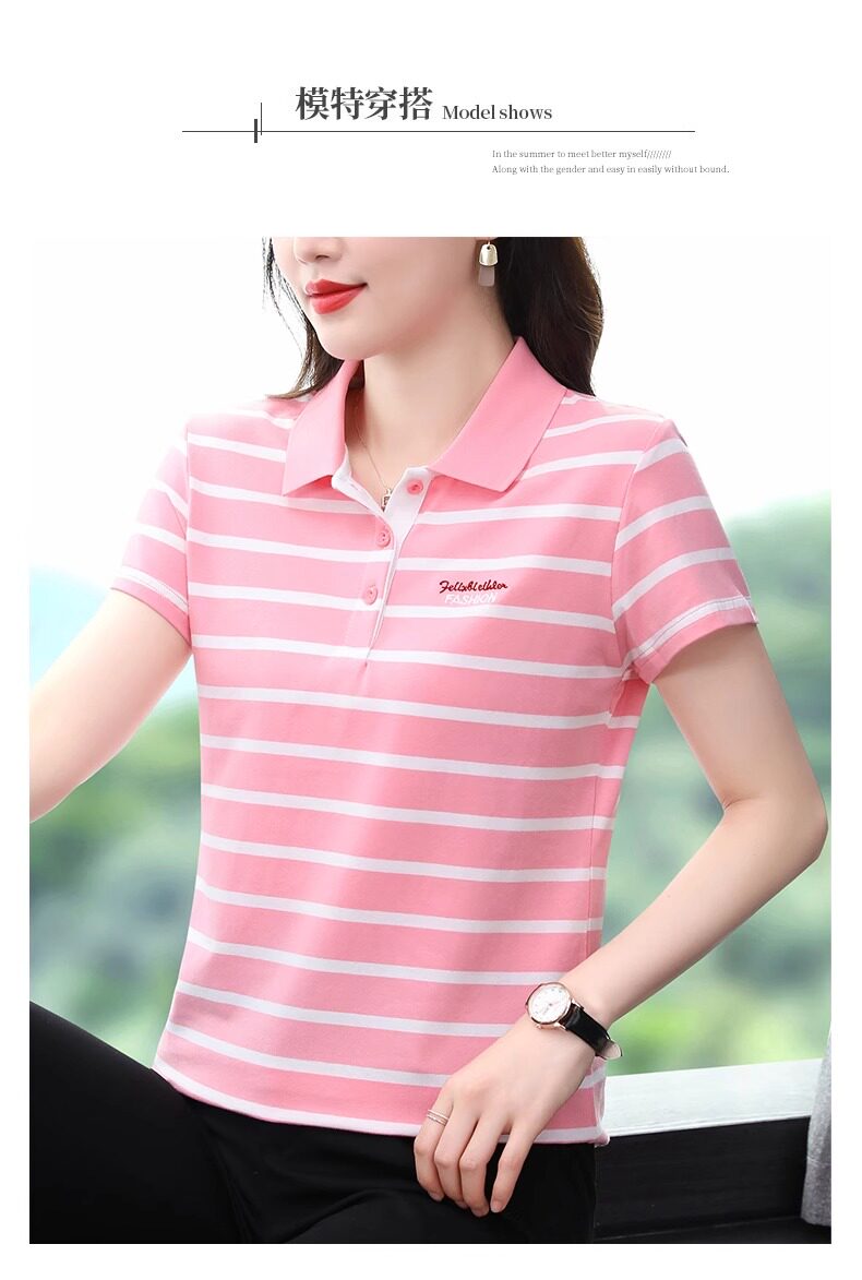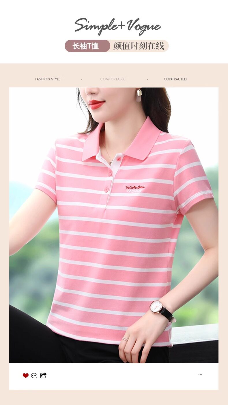 清倉撿漏啄木鳥服裝純棉休閒短袖t恤女條紋繙領t恤女polo衫夏