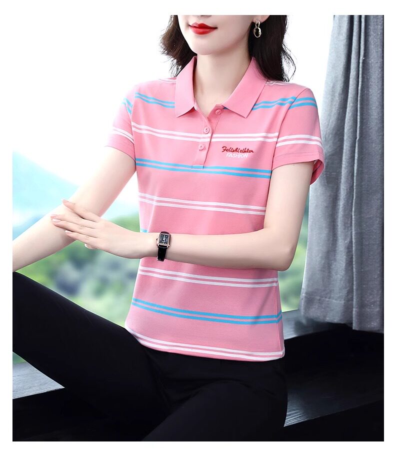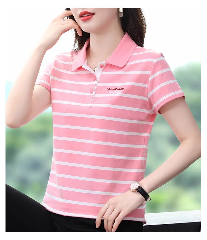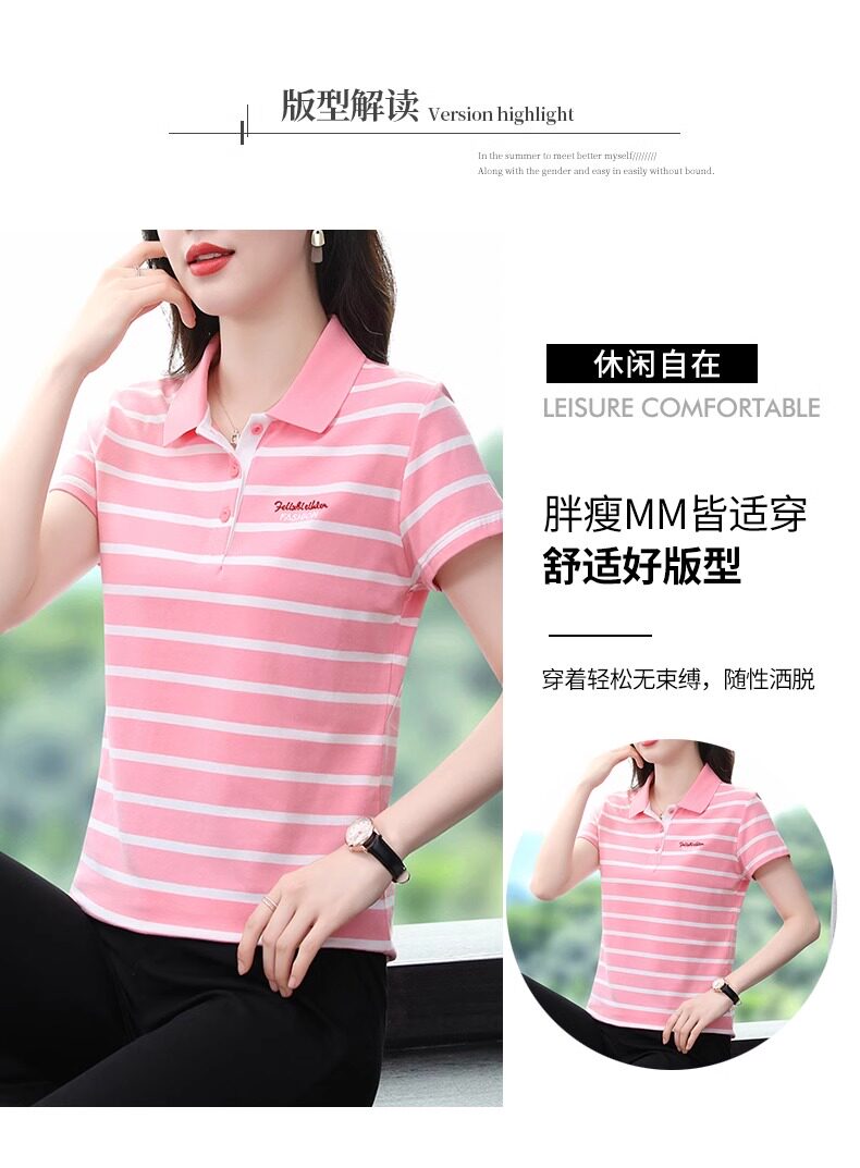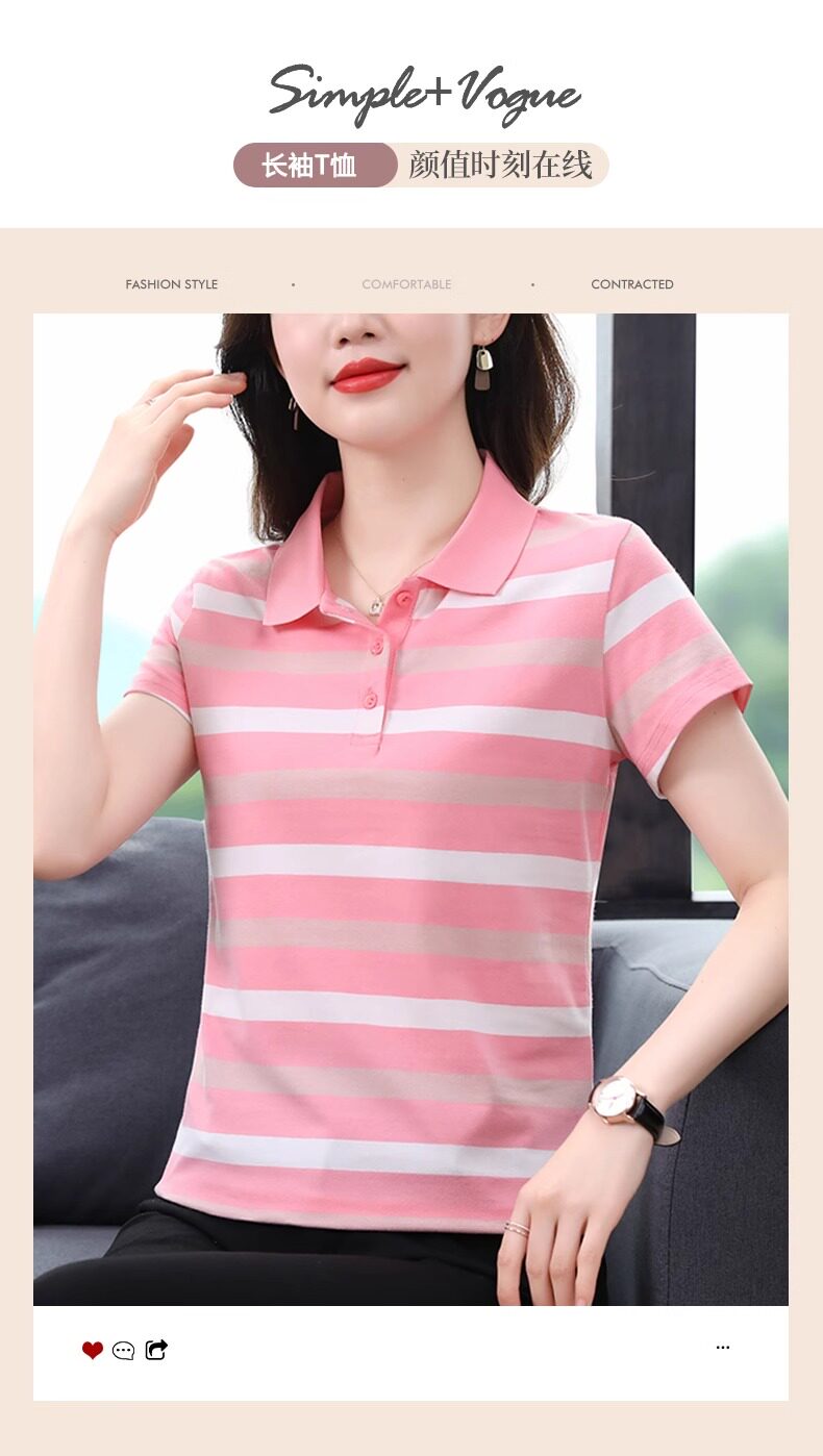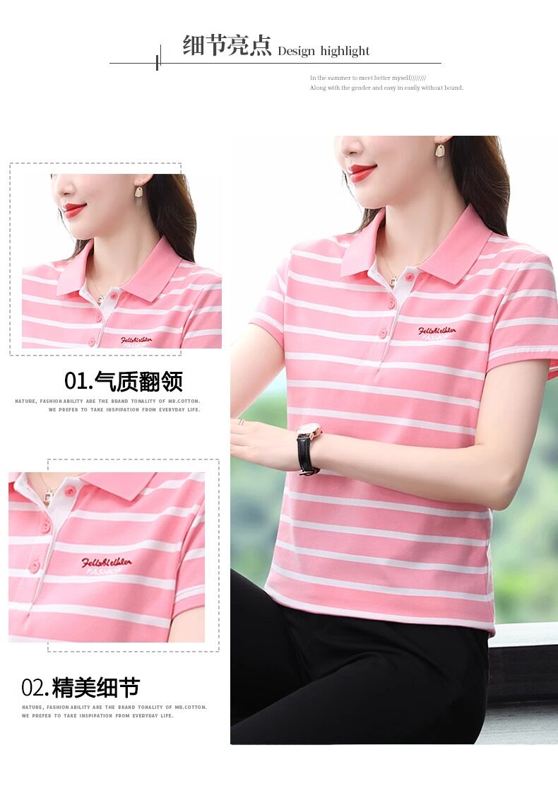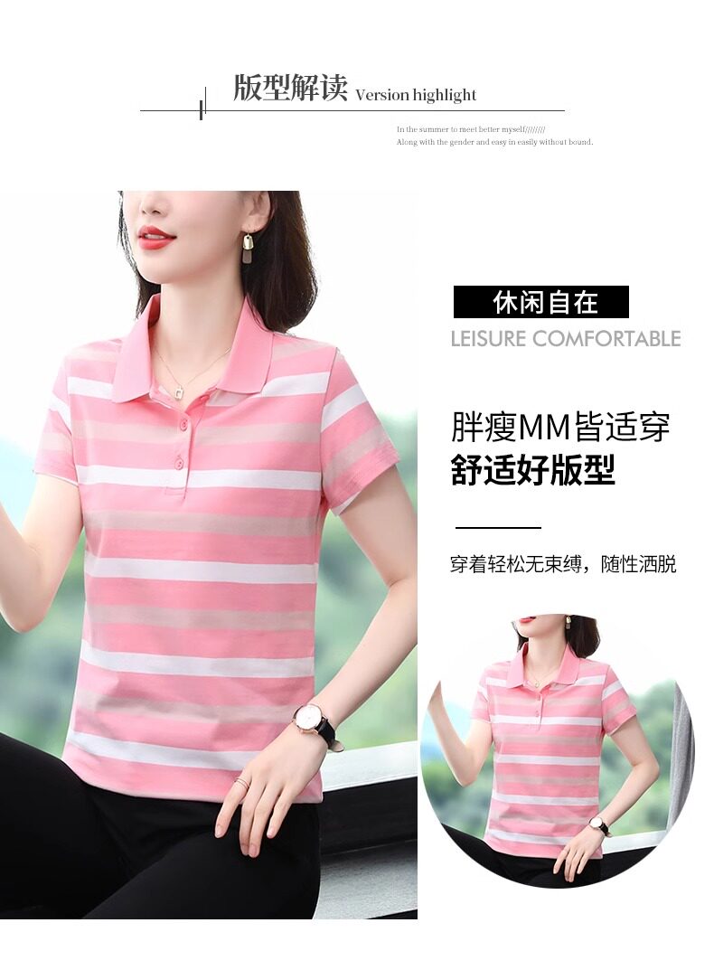 清倉撿漏啄木鳥服裝純棉休閒短袖t恤女條紋繙領t恤女polo衫夏