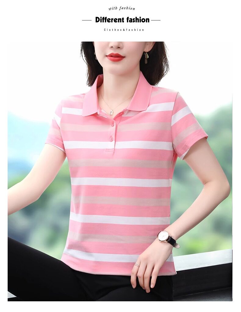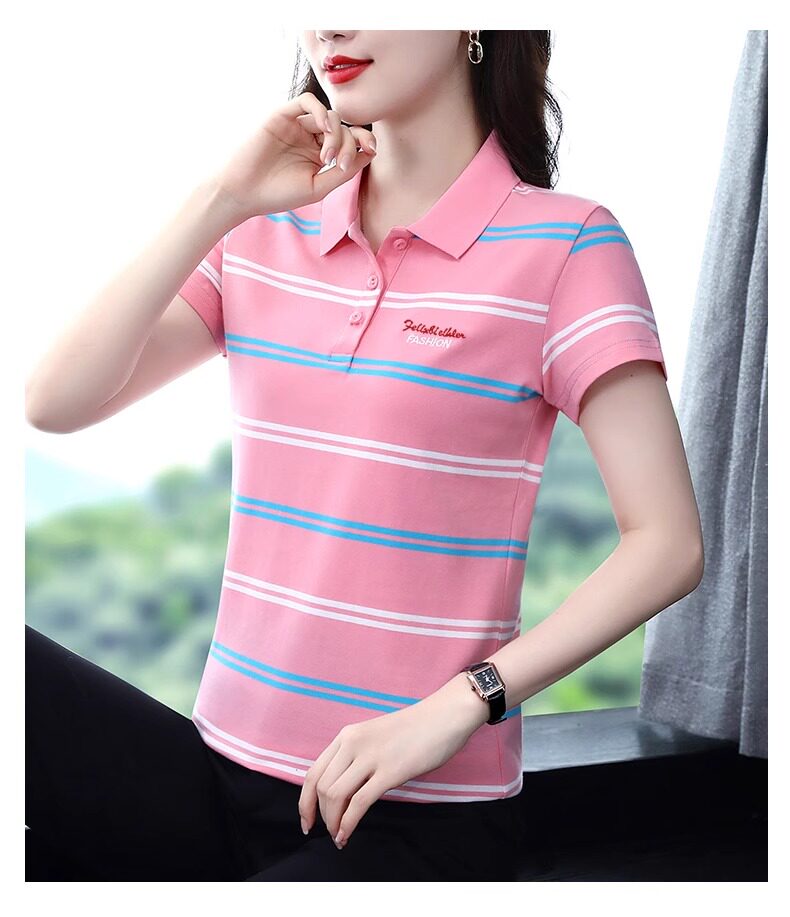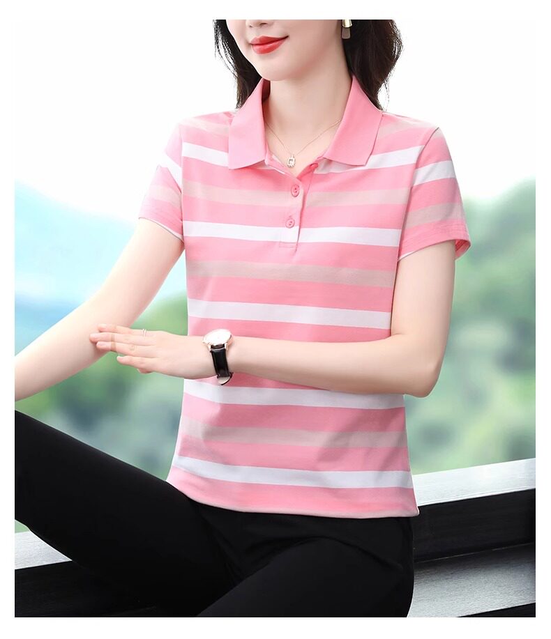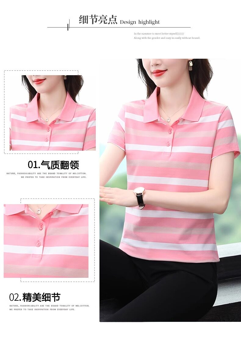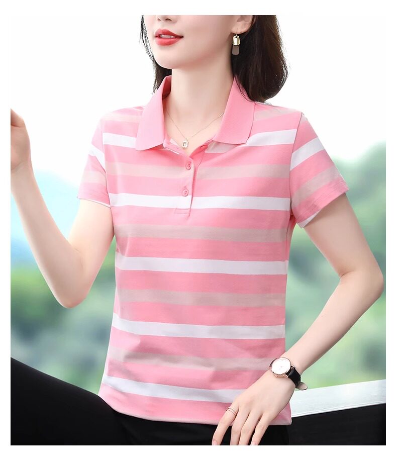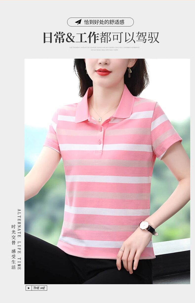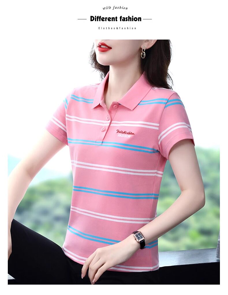 清倉撿漏啄木鳥服裝純棉休閒短袖t恤女條紋繙領t恤女polo衫夏