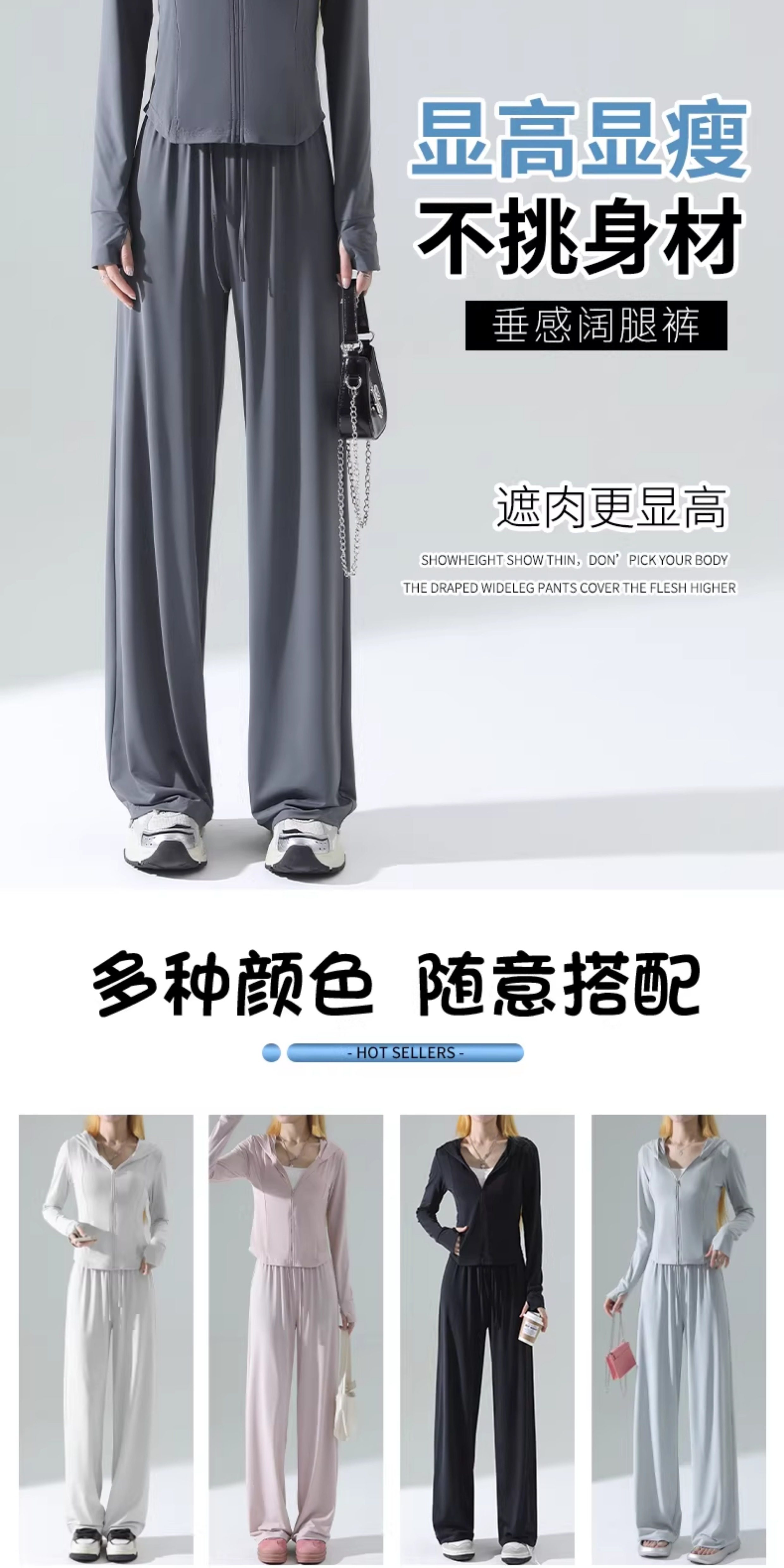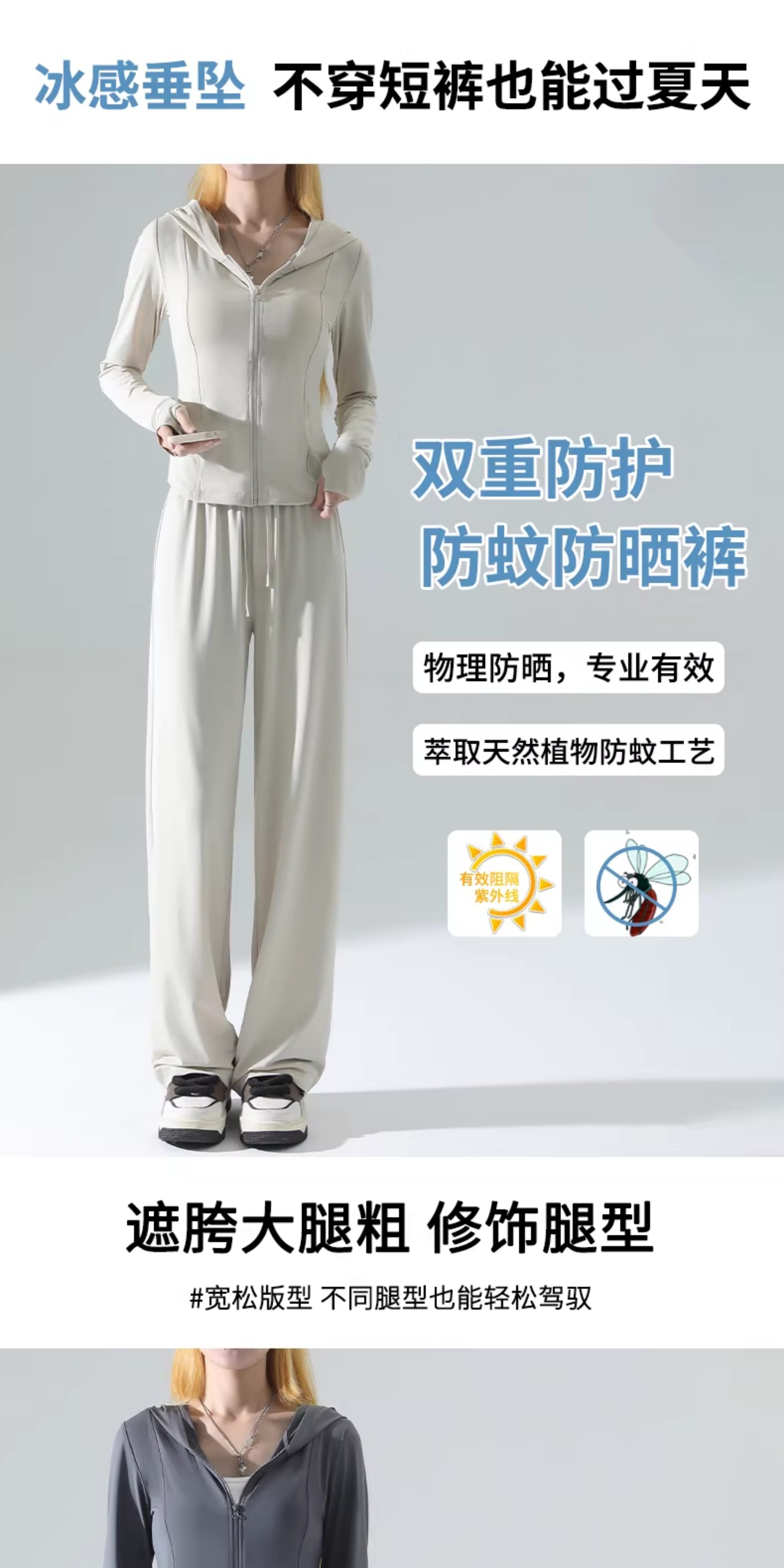 防曬衣女2026新款夏季薄款修身外套冰絲垂感濶腿褲子休閒運動套裝