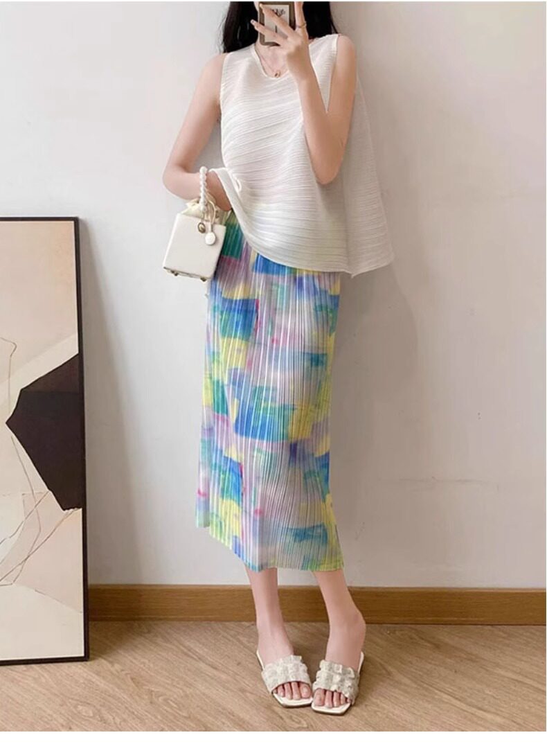 清倉撿漏夏日氛圍感拉滿親膚透氣冰絲褶皺半身裙高級百褶裙女
