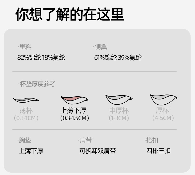| 罩杯裡料成分含量 | 81%(含)-95%(含) |