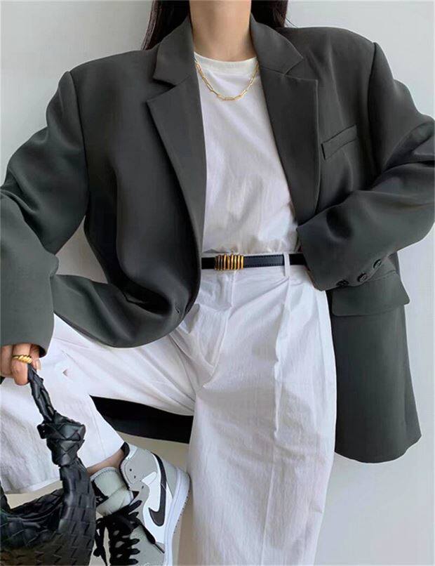 時尚灰色西裝外套女裝春秋季新款氣質休閒炸街流行冬款小個子西服