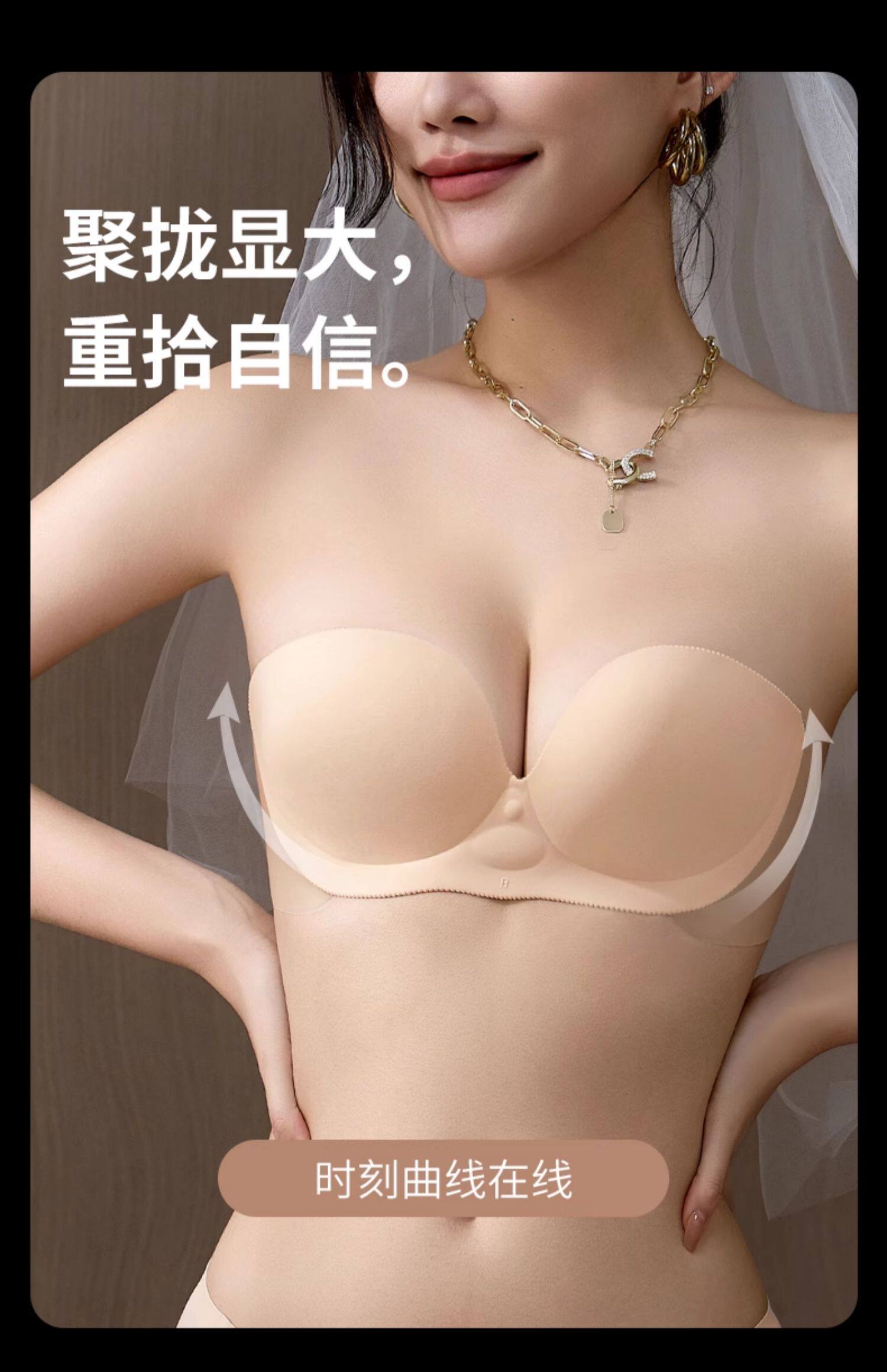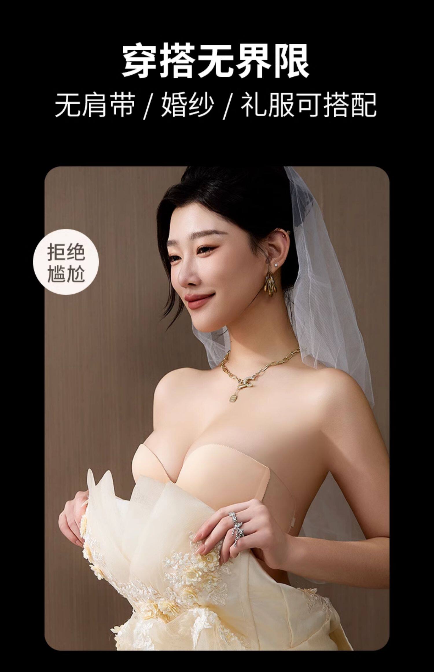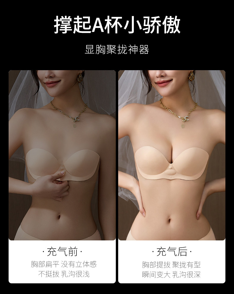 貓人胸貼小胸顯大充氣聚攏防滑女婚紗用小胸罩防下垂無肩帶的內衣
