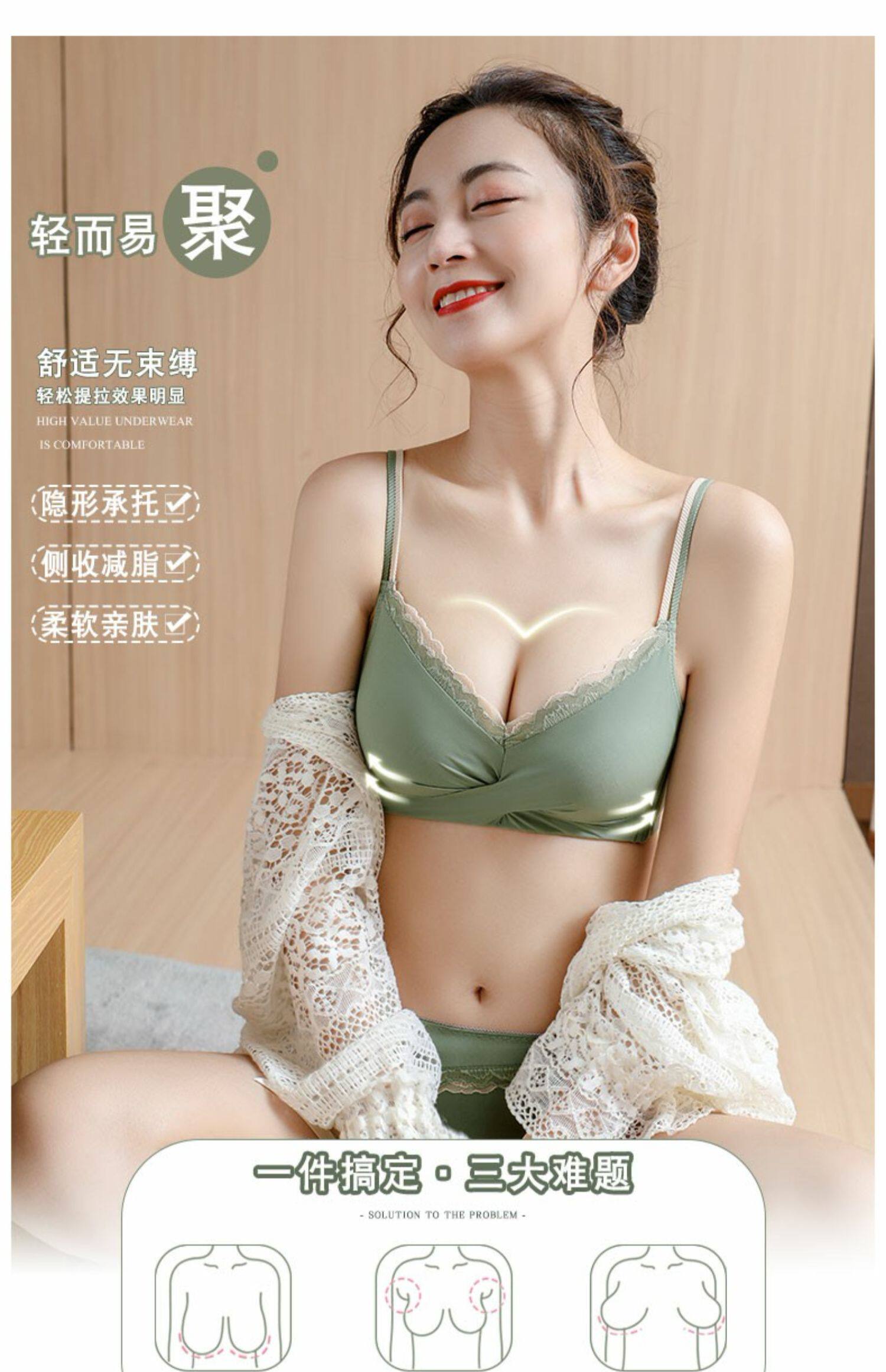 內衣女小胸聚攏無鋼圈收副乳防下垂調整型文胸美背無痕內褲套裝