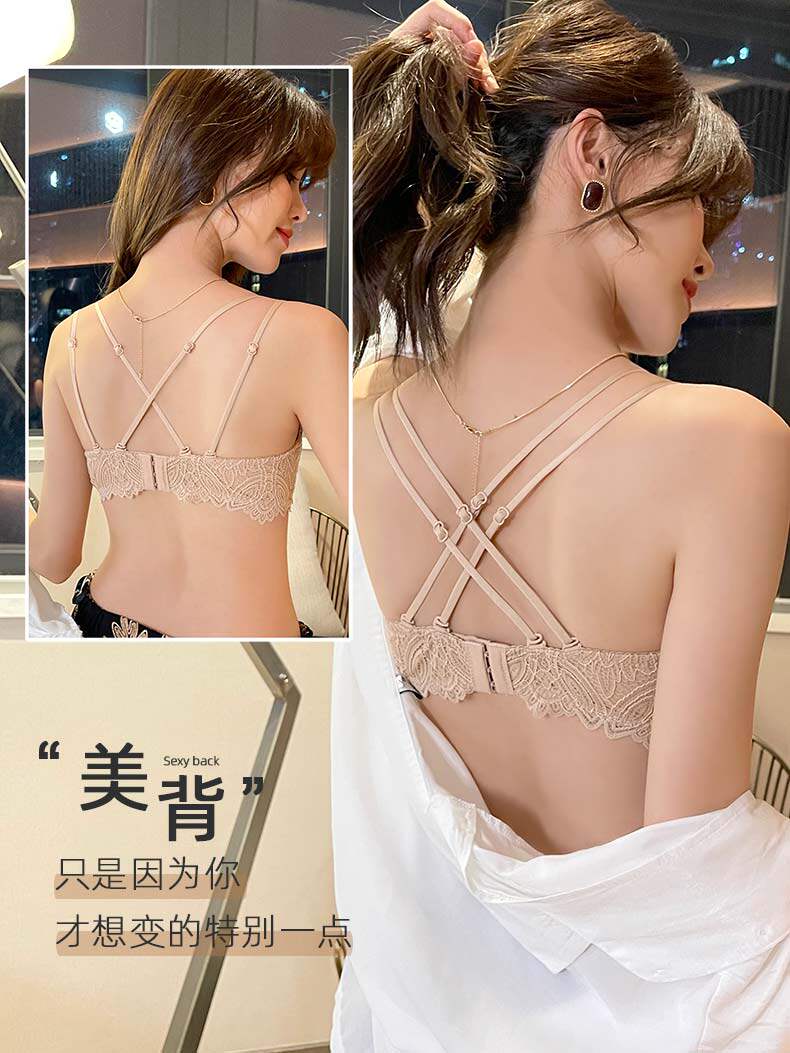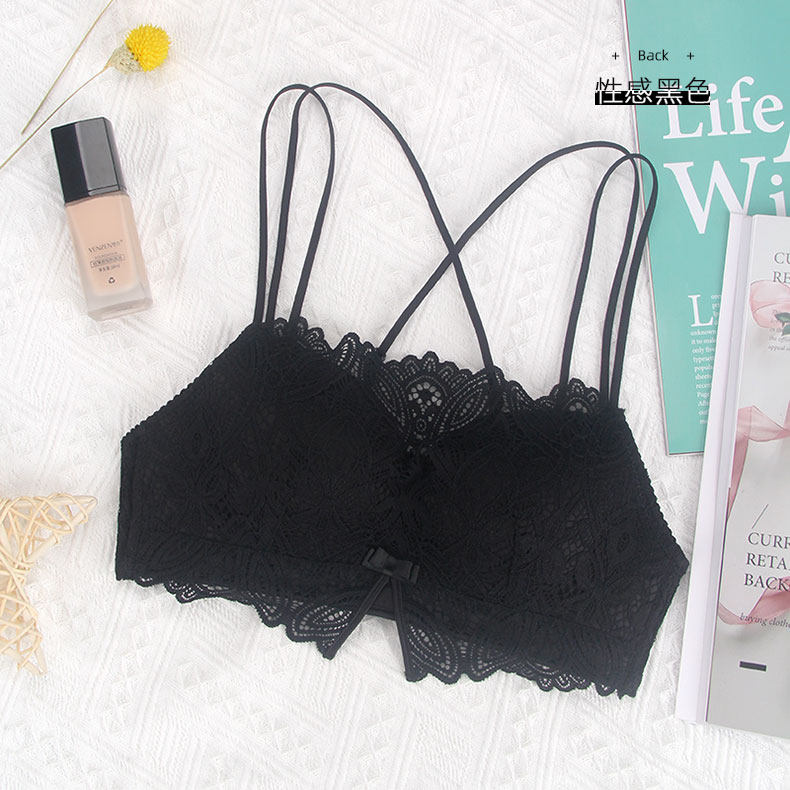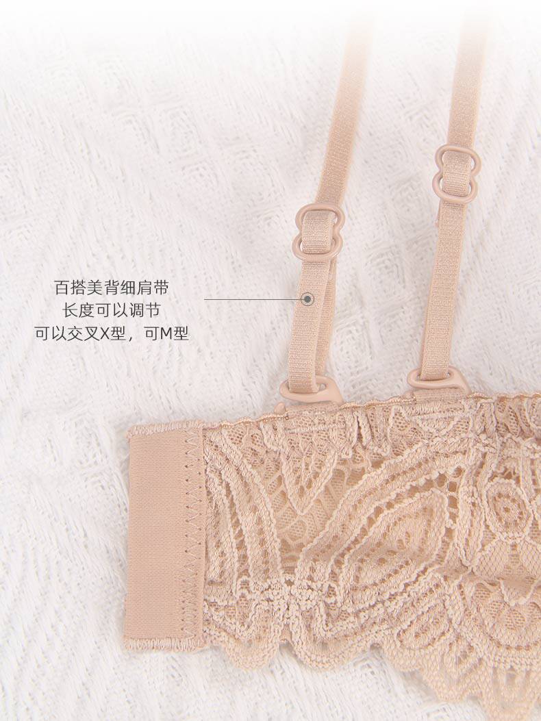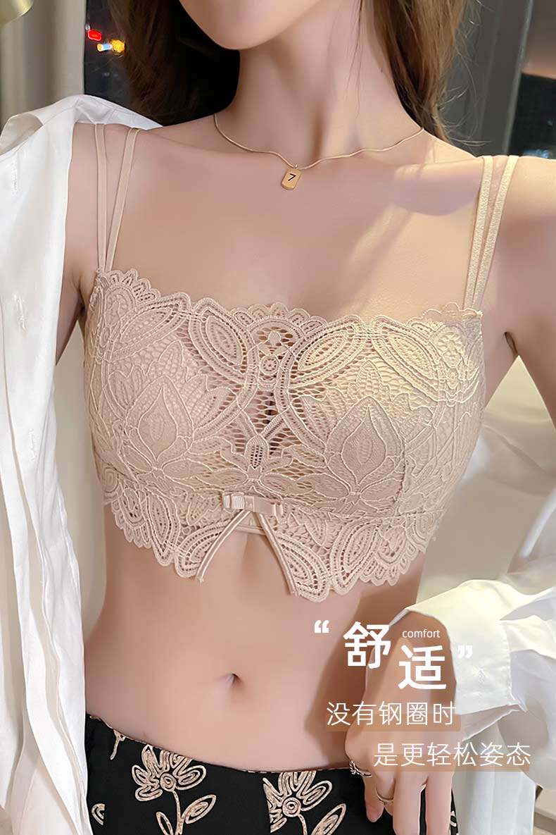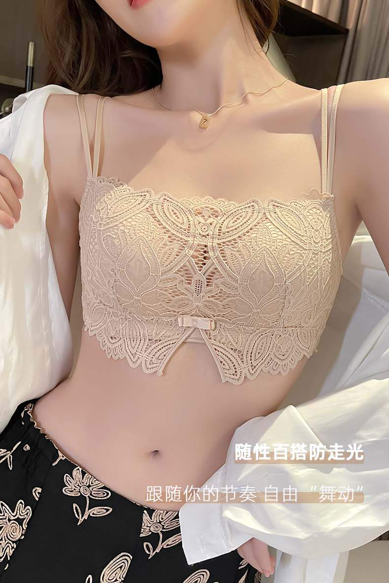 蕾絲防走光裹胸內衣女無鋼圈薄款夏季抹胸文胸聚攏小胸美背細肩帶