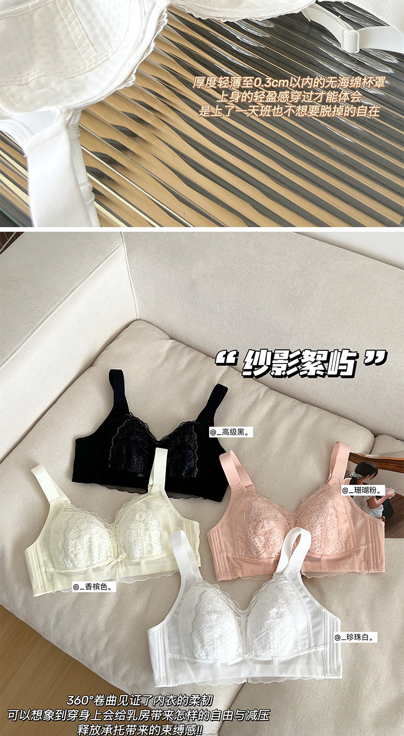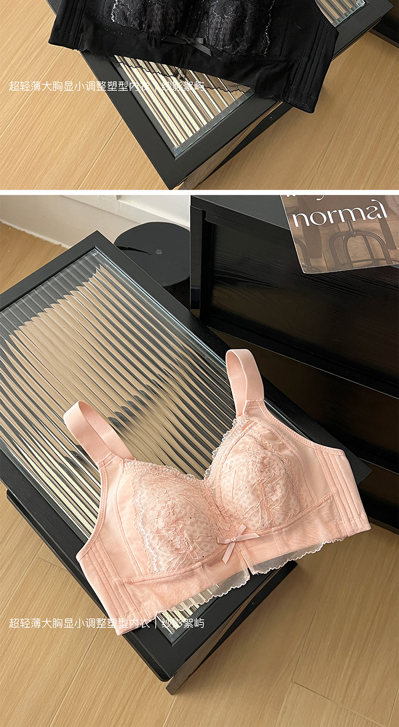 雅丹芝全罩杯大胸顯小內衣女無鋼圈收副乳調整型防下垂薄款文胸罩