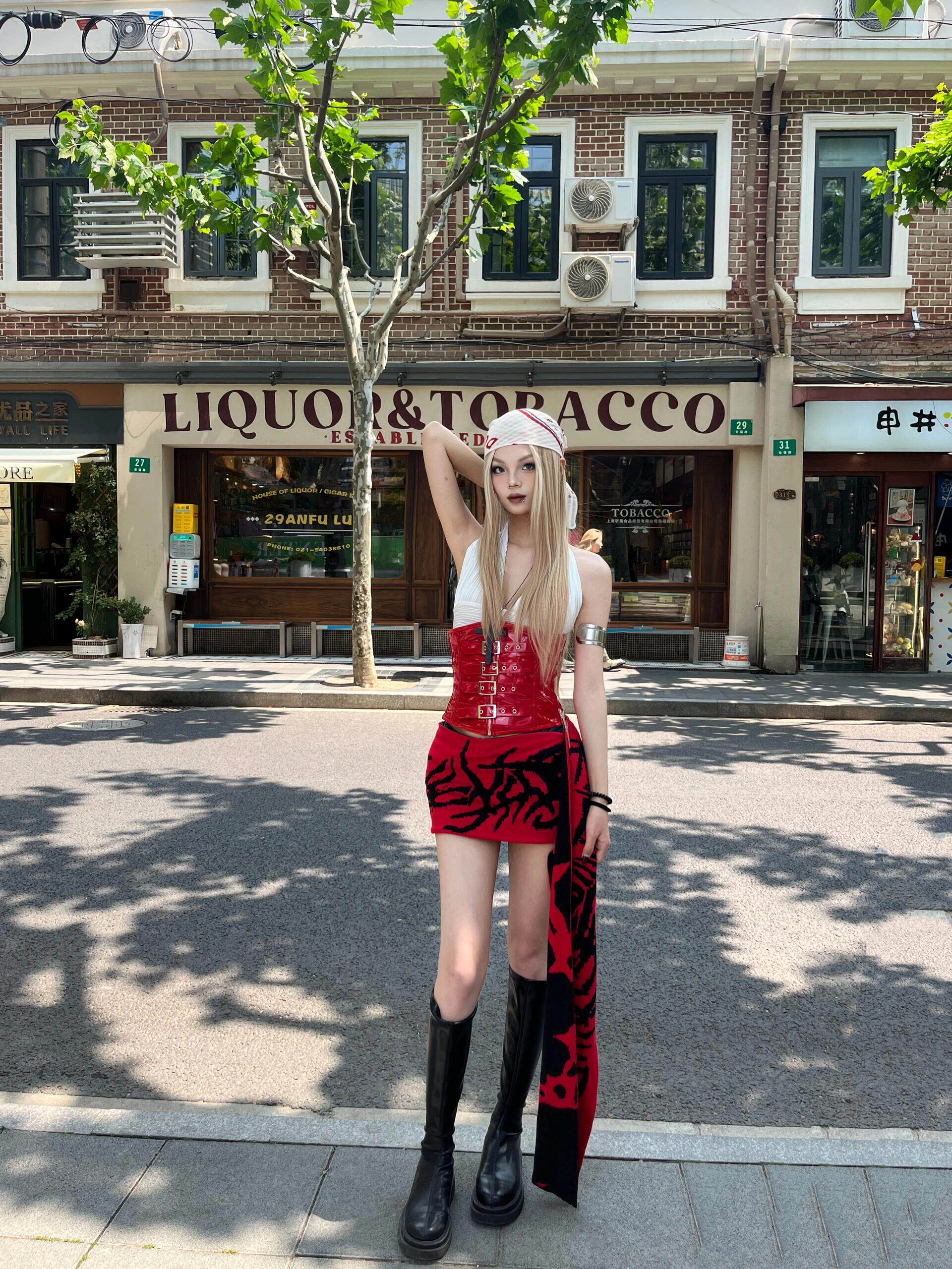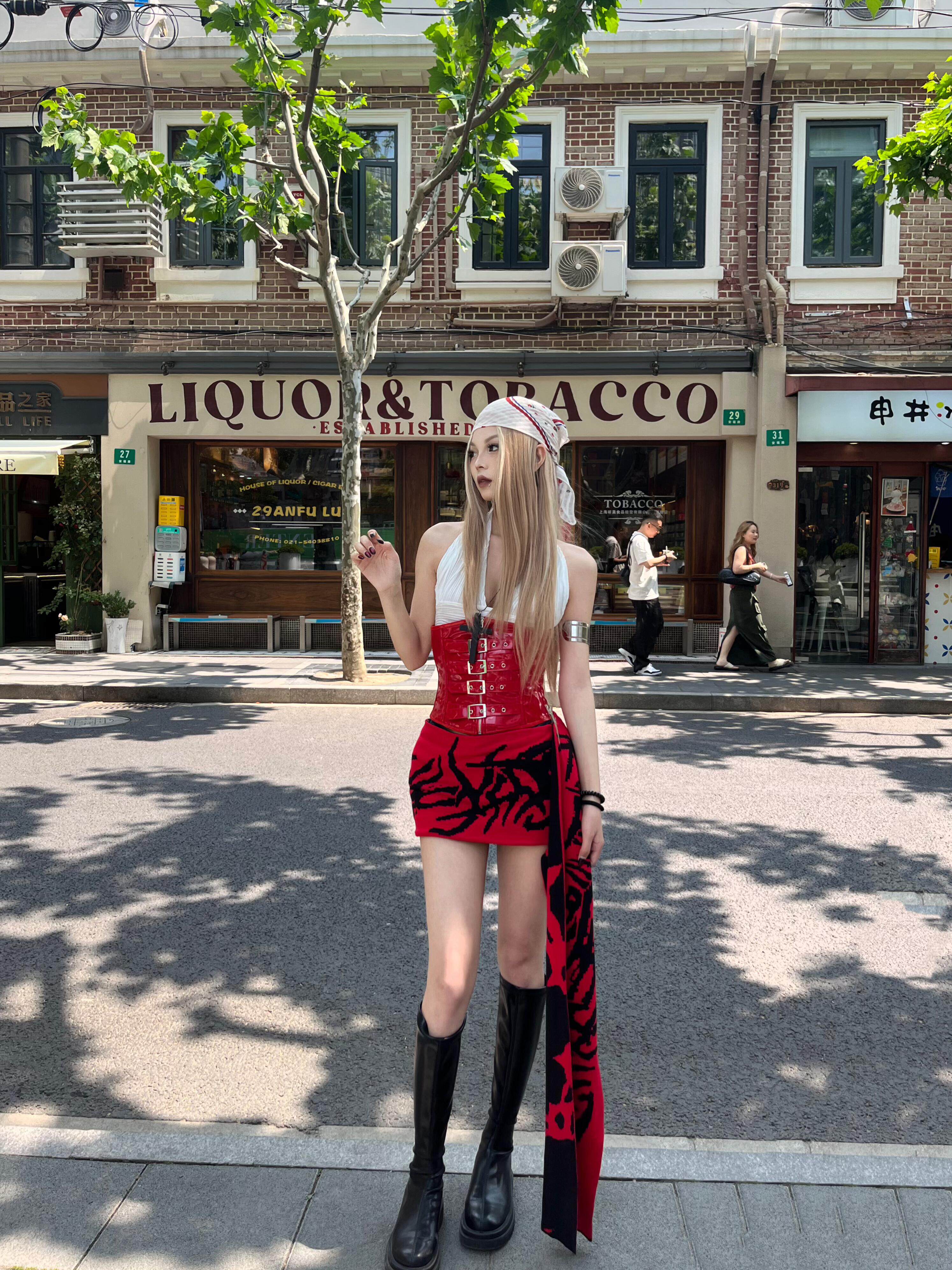OUTFlT STUDIO 美式辣妹風龐克印花飄帶半身裙2025新款性感短裙