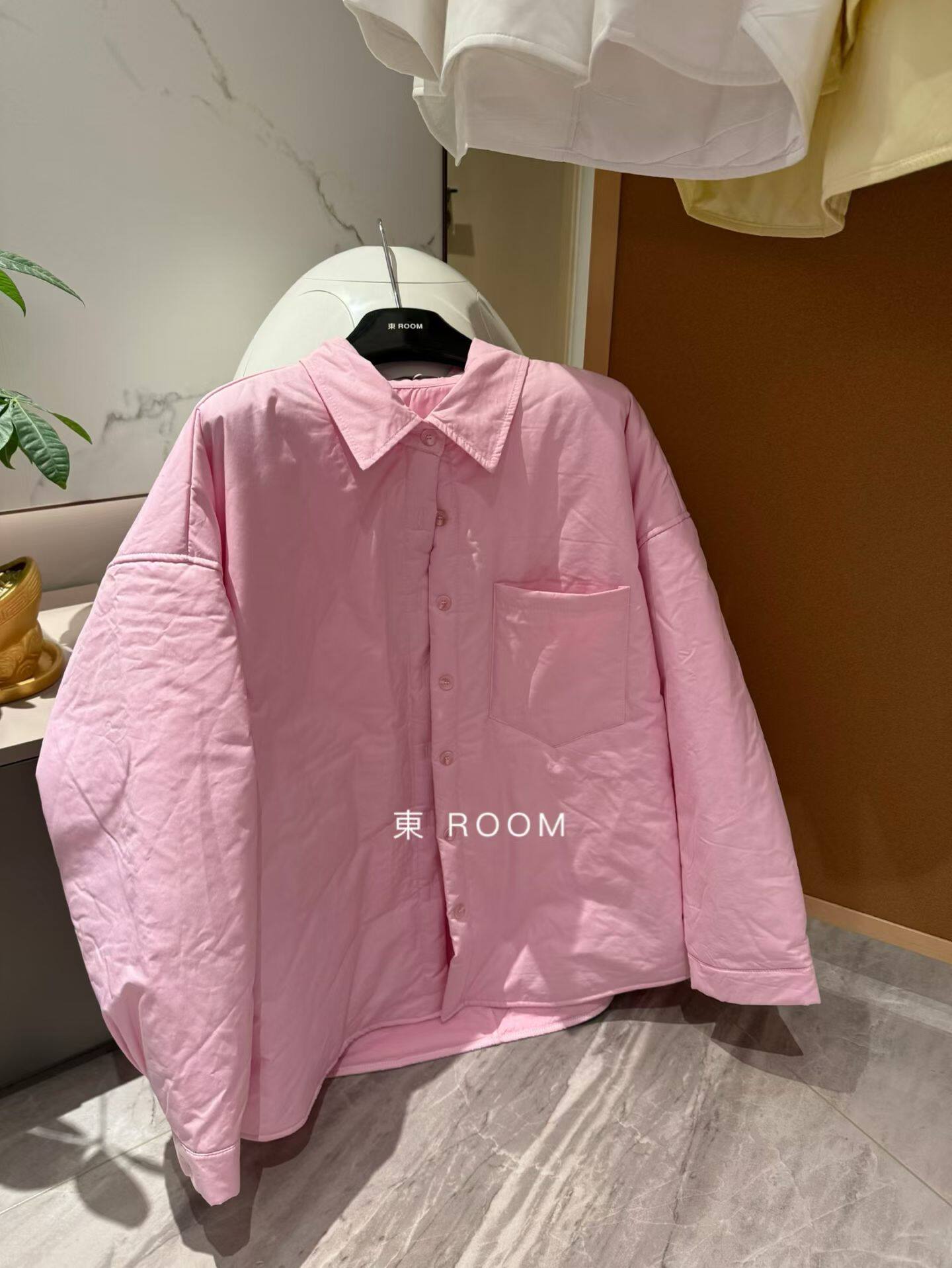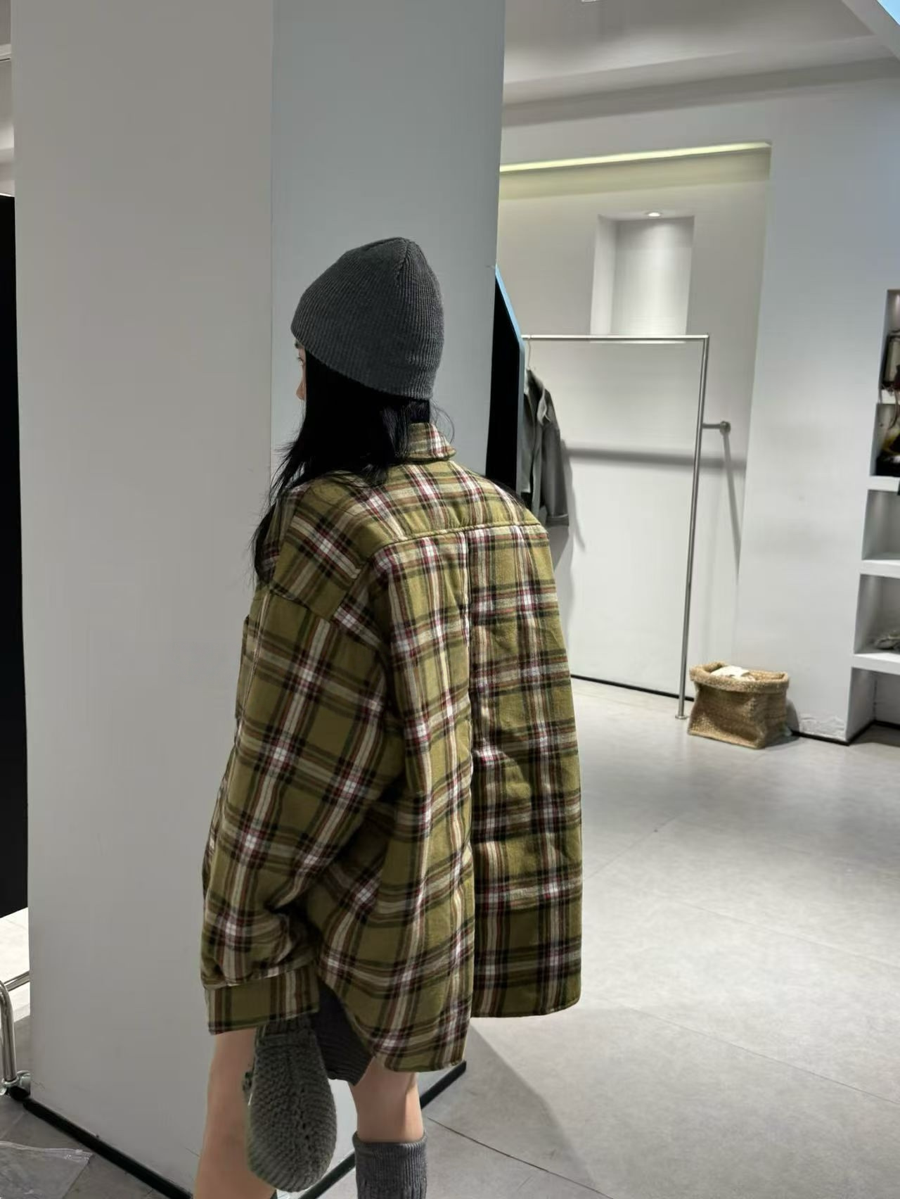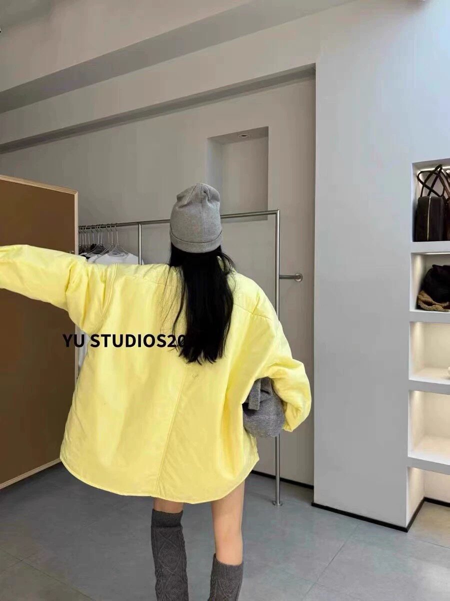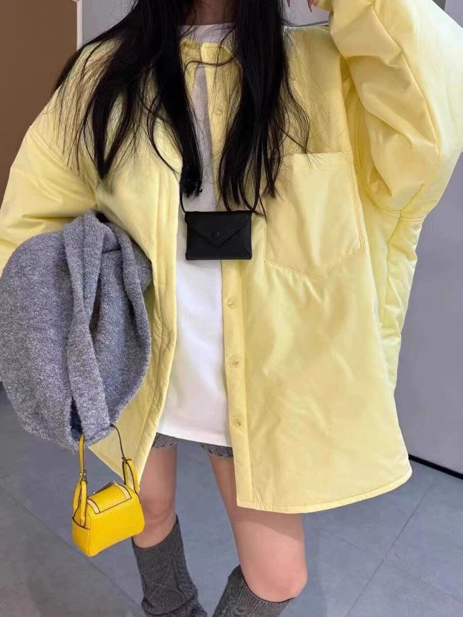 2025冬季新款純色減齡單排系釦夾棉襯衫寬鬆百搭休閒長袖外套女潮