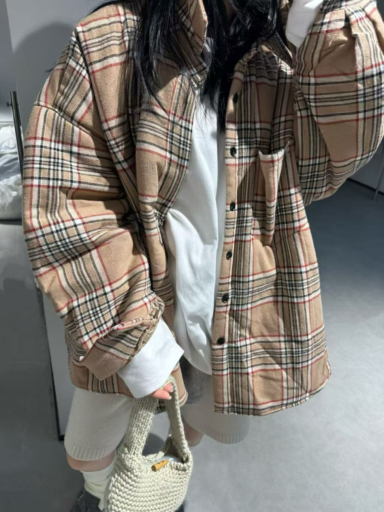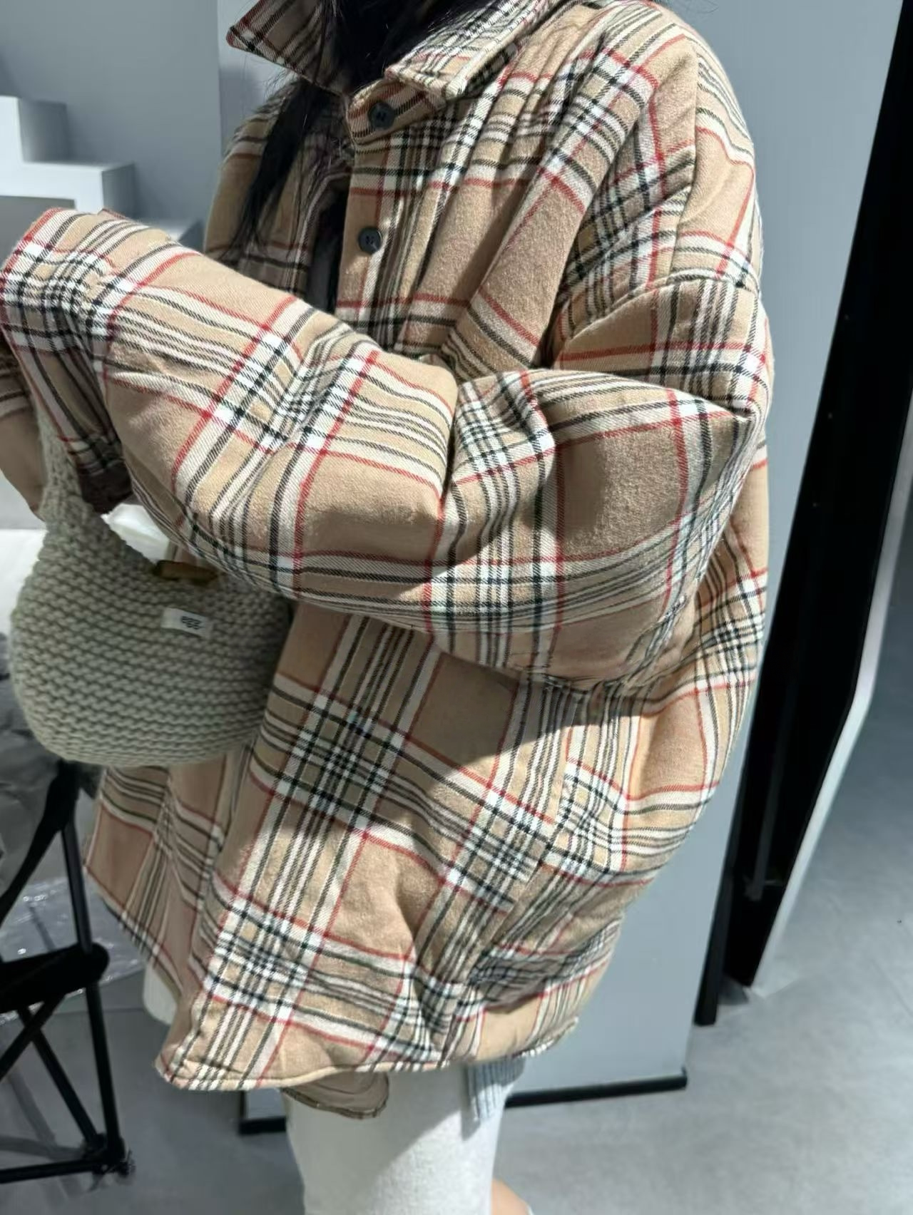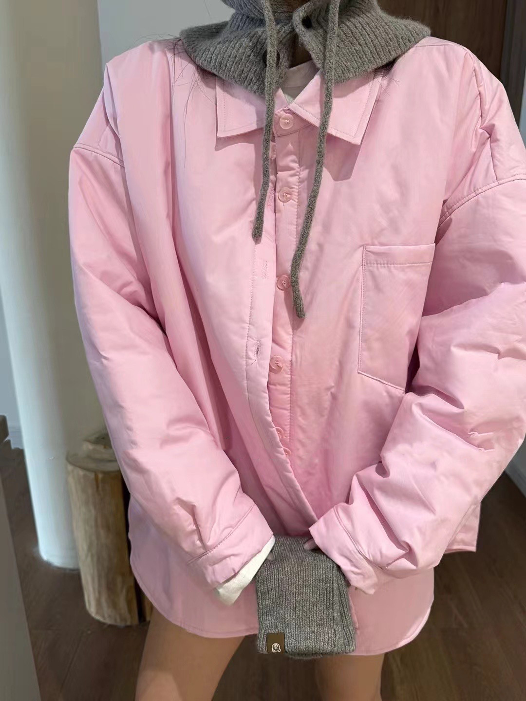 2025冬季新款純色減齡單排系釦夾棉襯衫寬鬆百搭休閒長袖外套女潮