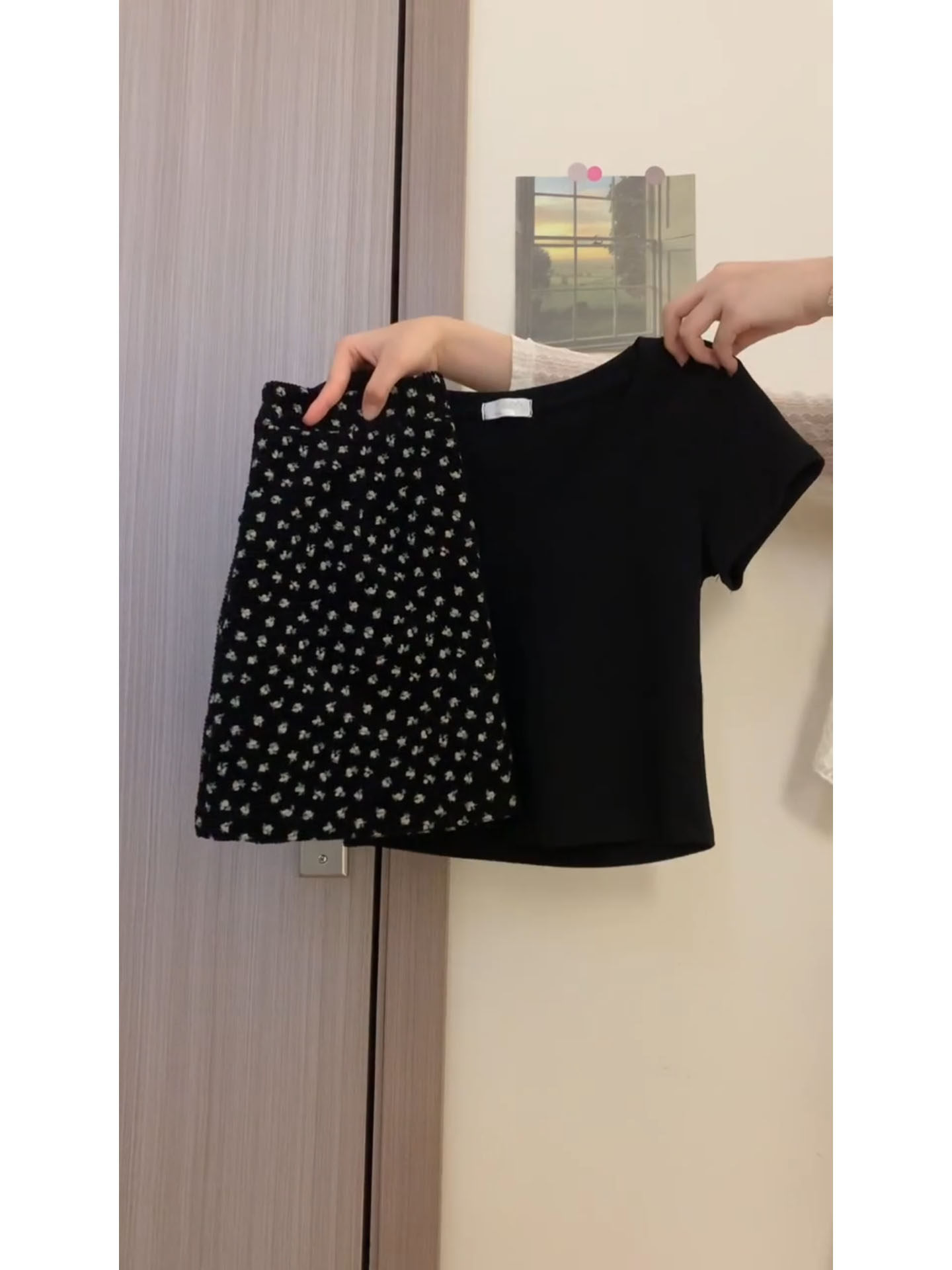 簡約復古又氣質!同色系黑T+碎花裙夏季新款韓系顯瘦百搭兩件套裝