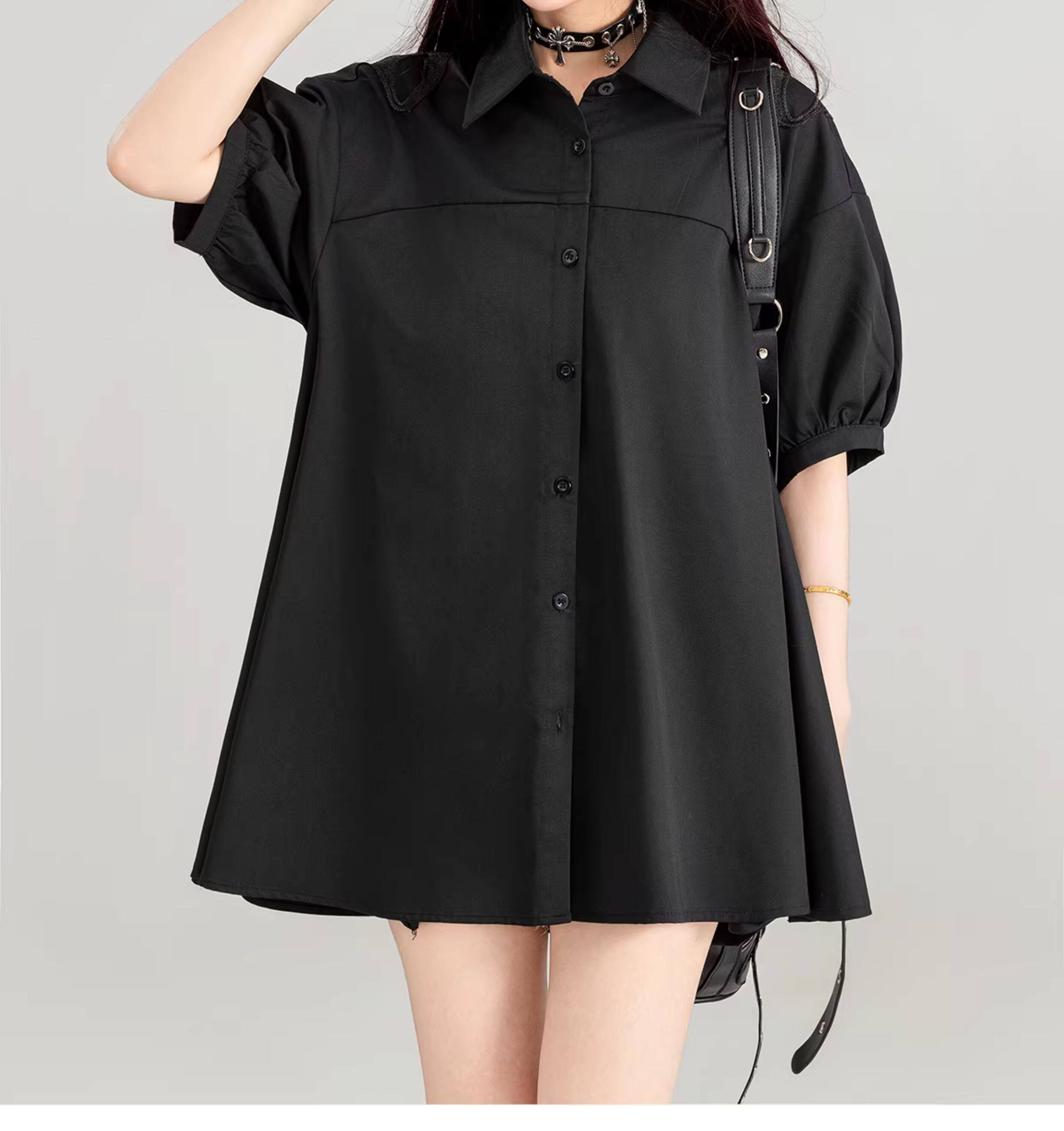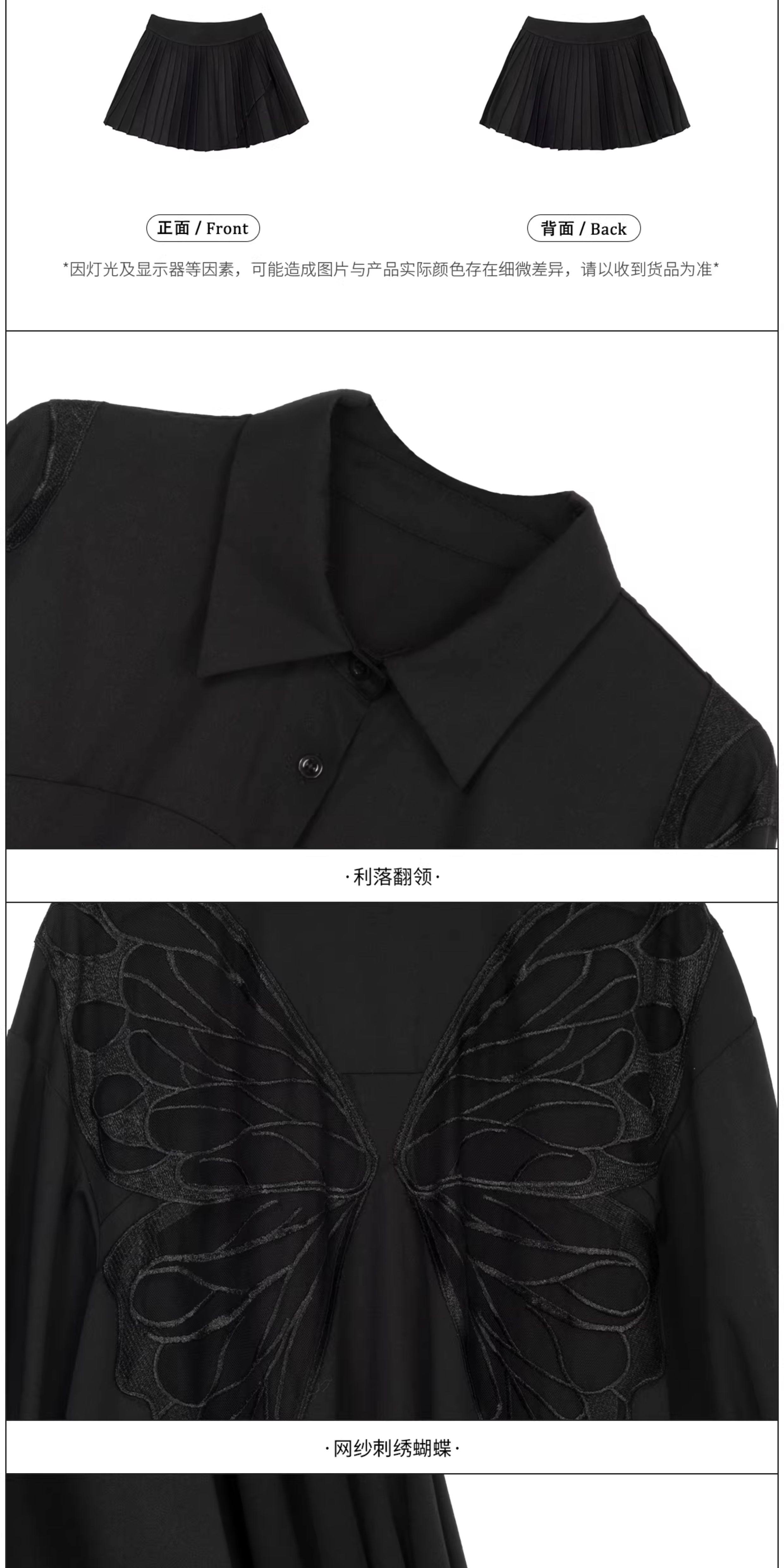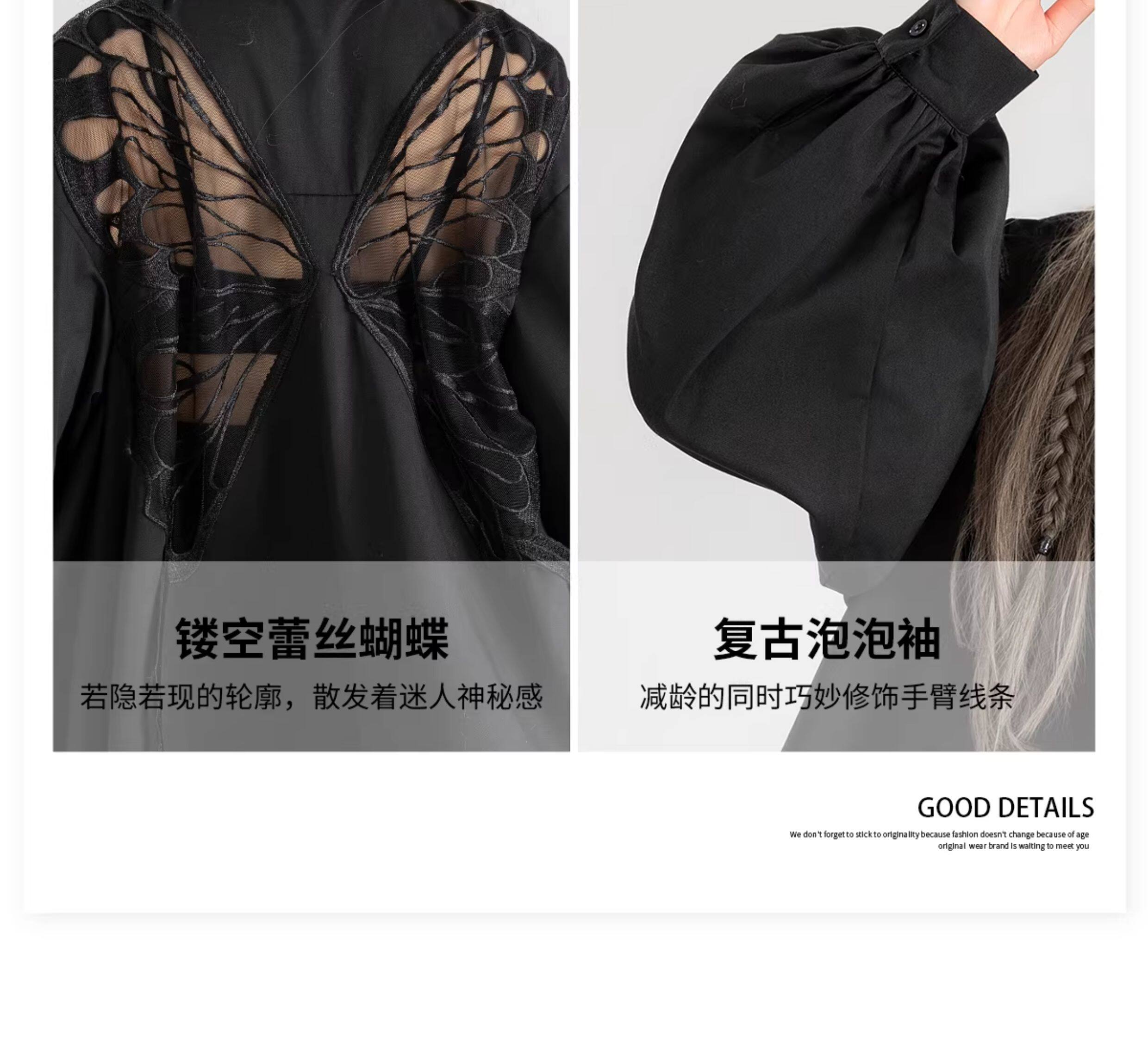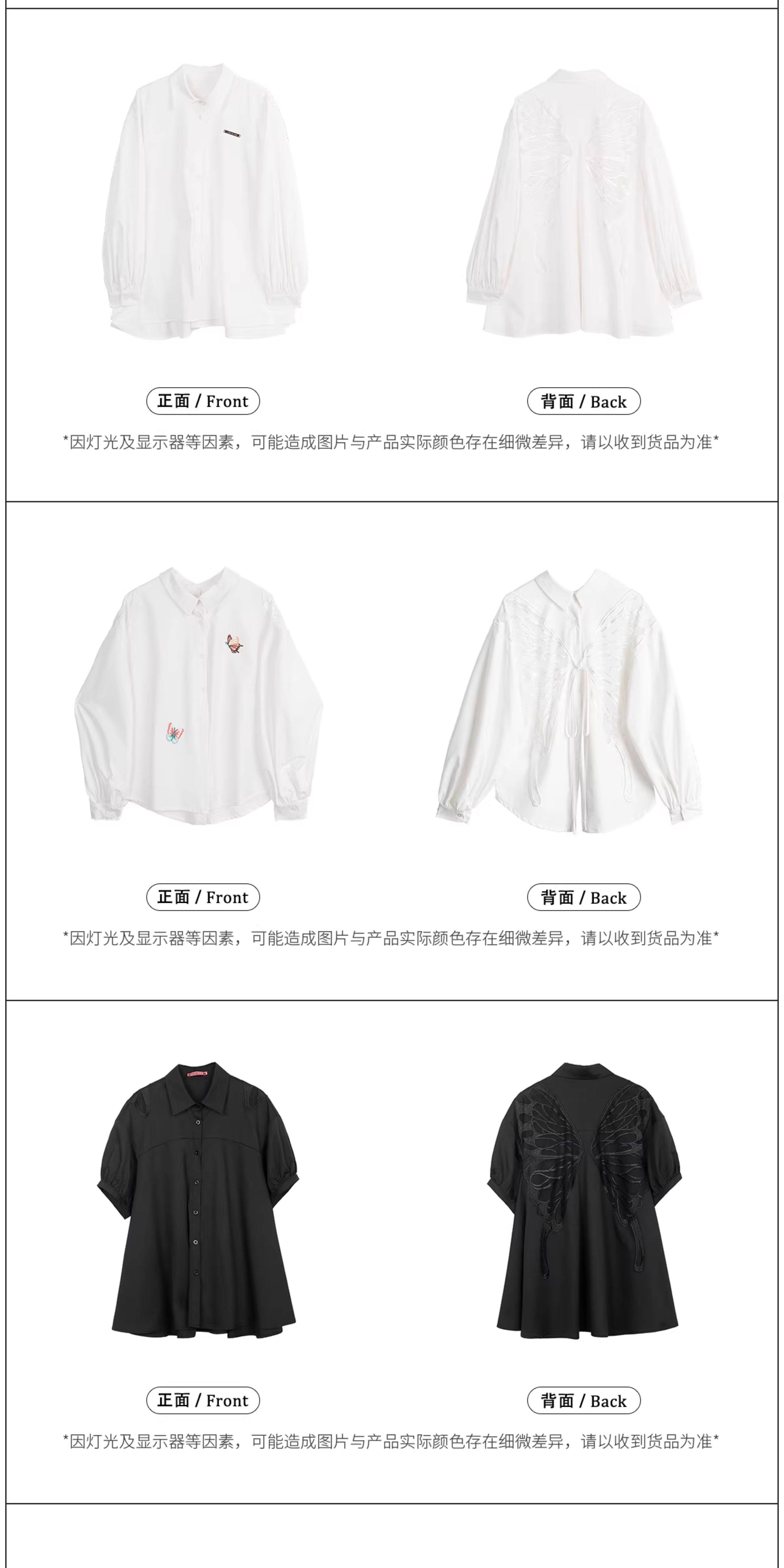 KEIKO 蝴蝶刺綉黑色短袖襯衫2026夏季高級感泡泡袖上衣寬鬆防曬衫