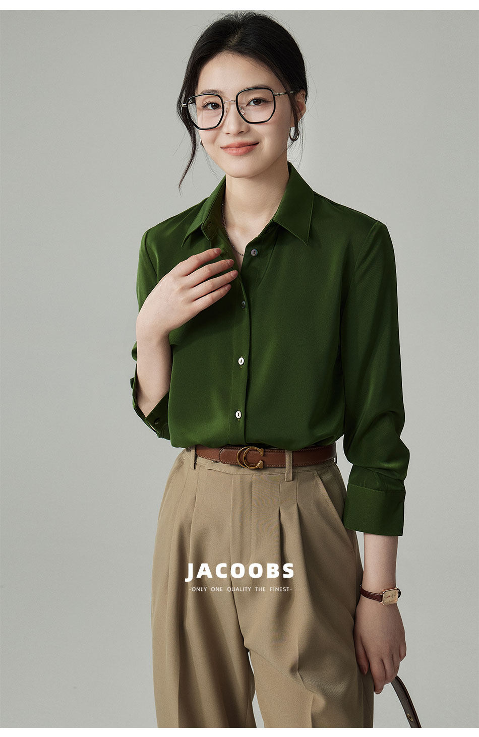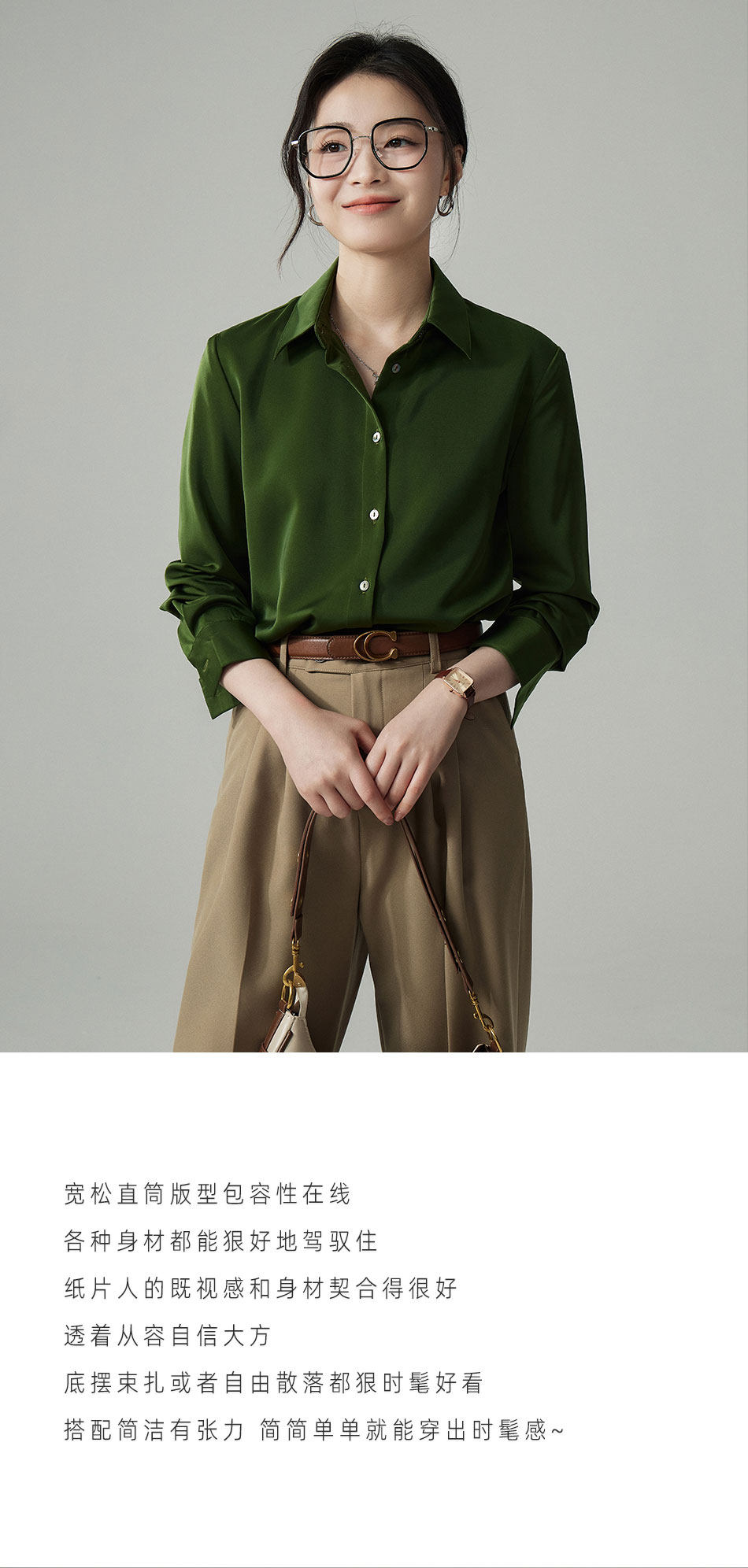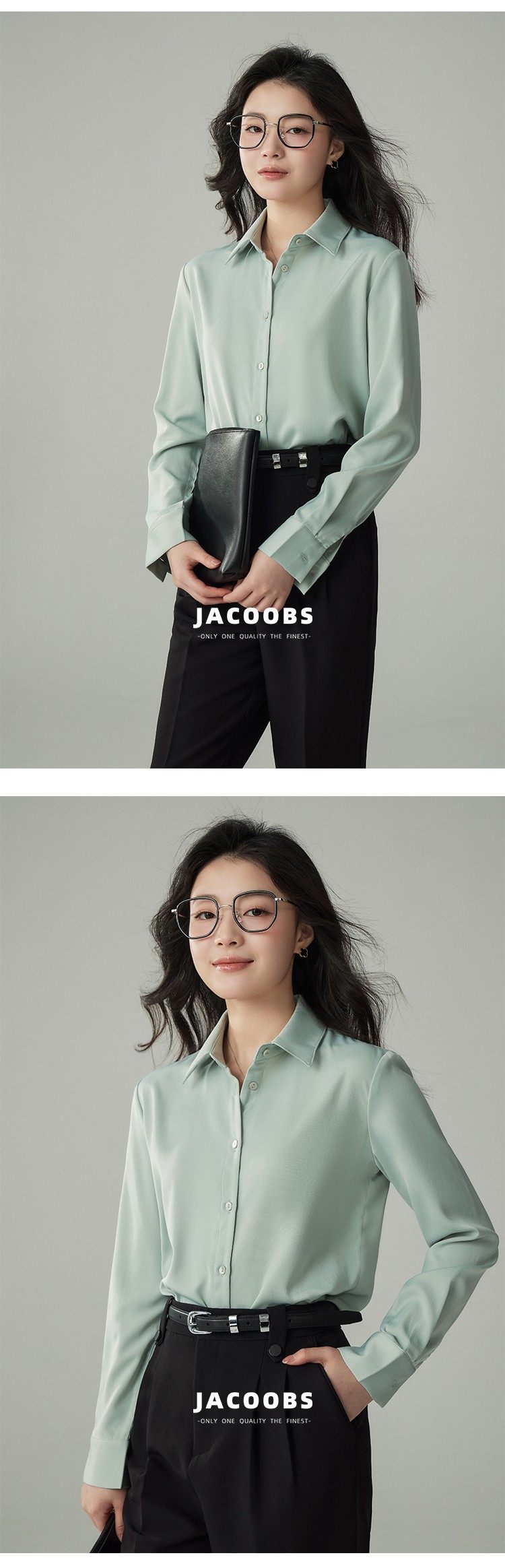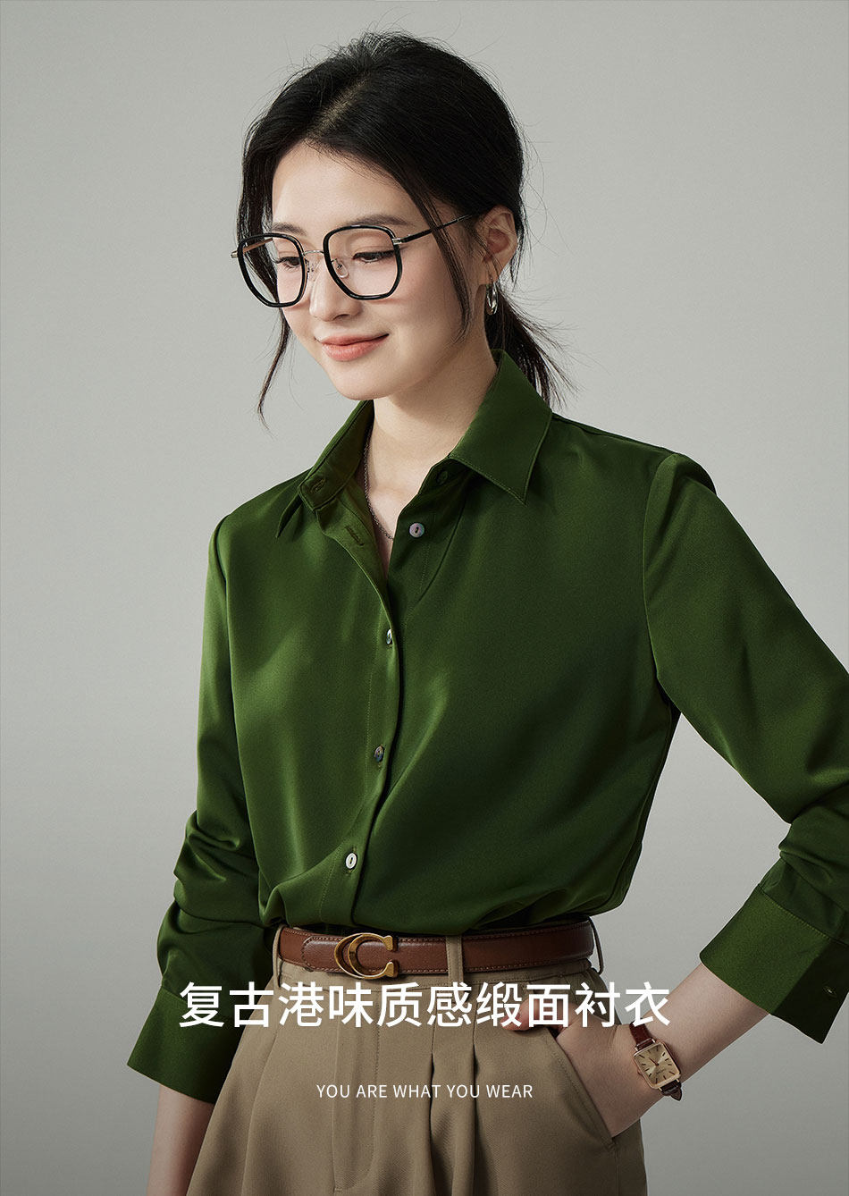 婭可家版型升級3.0 綠色緞面襯衫女春設計感小衆復古港味氣質襯衣